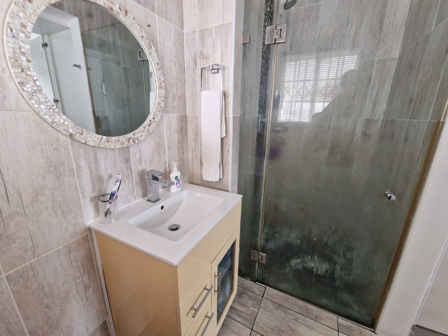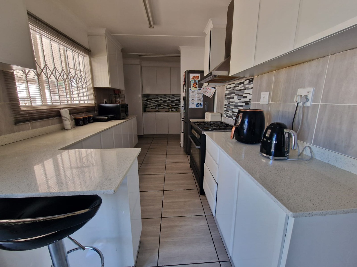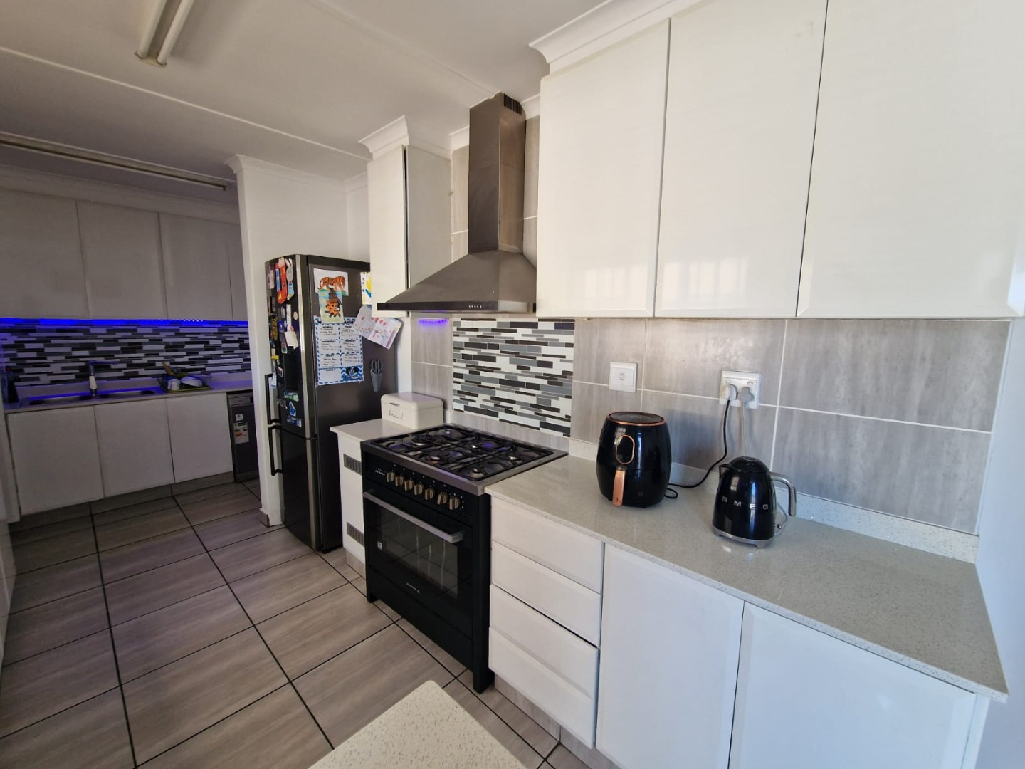 This immaculate, air-conditioned, and spacious property features three well-sized bedrooms with built-in cupboards, serviced by two modern bathrooms. The stylish kitchen is fitted with a quality gas stove, ideal for modern family living.