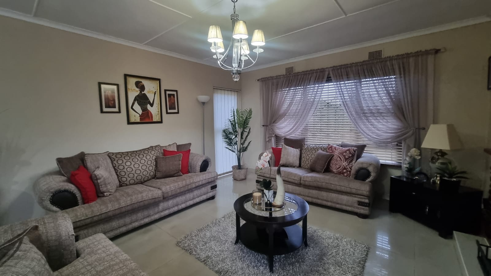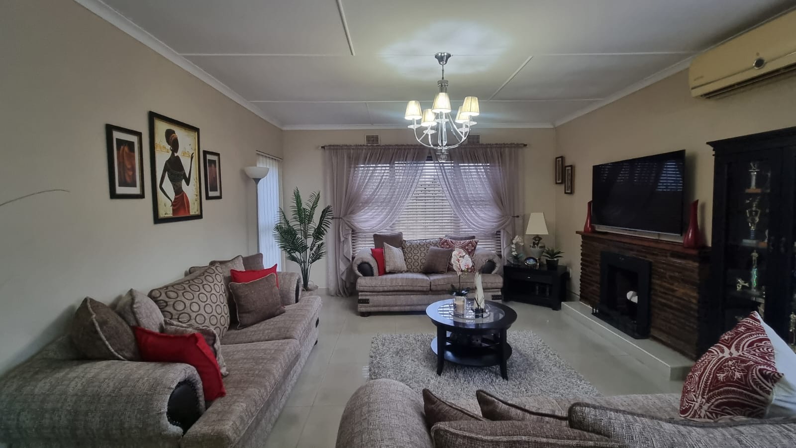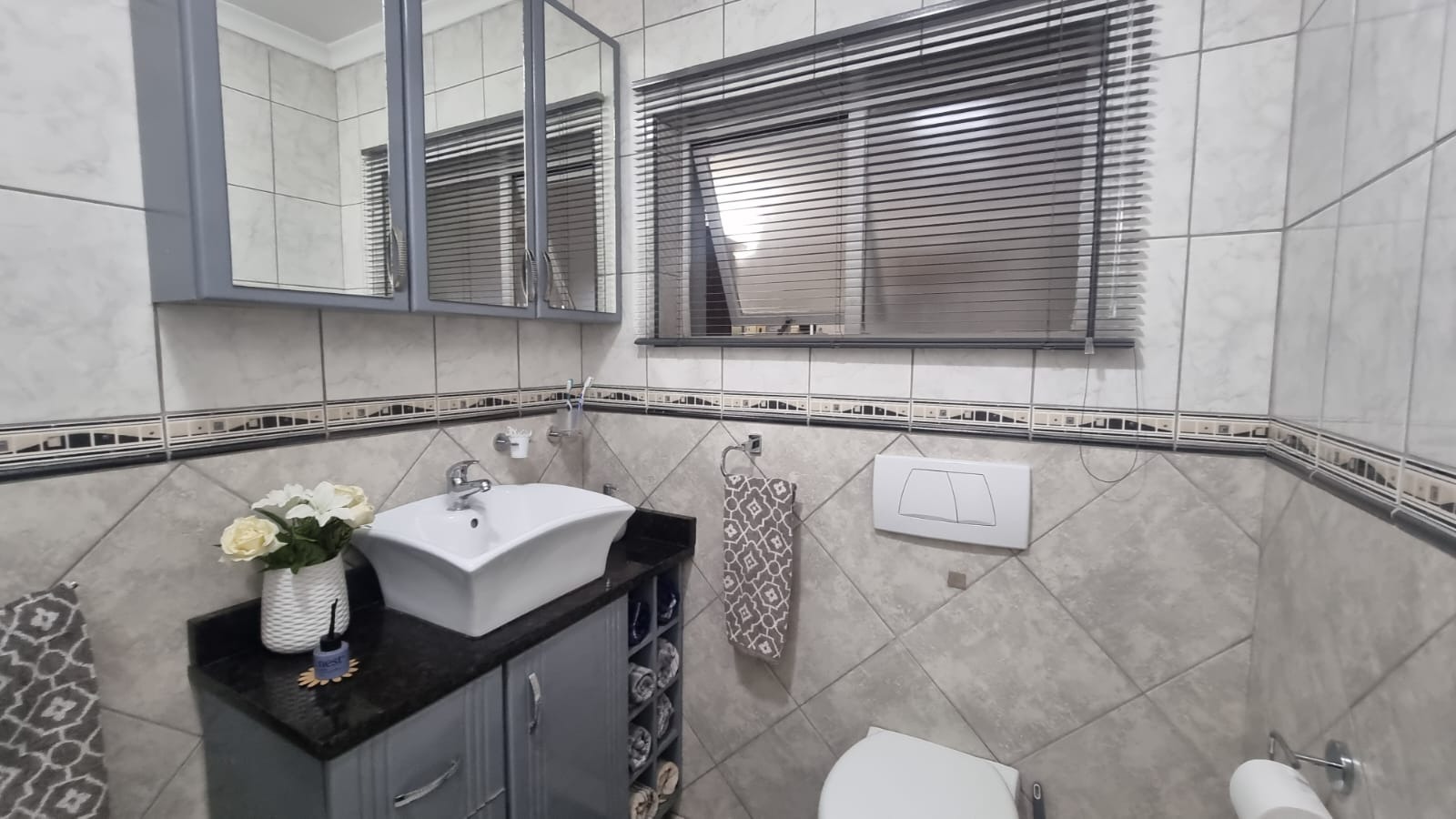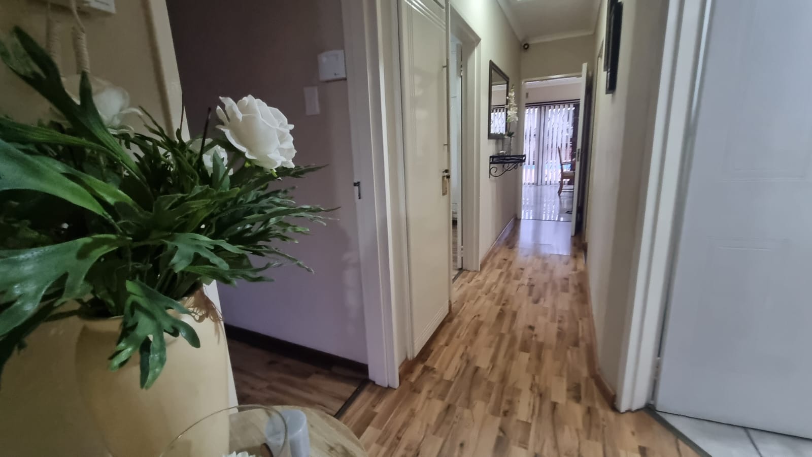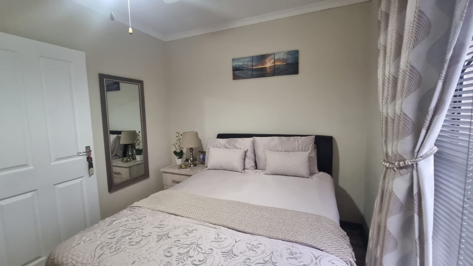 Featuring 3 bedrooms with laminate flooring, blinds, and built-in cupboards. Two bedrooms include ceiling fans, while the main bedroom is fitted with an air conditioner.