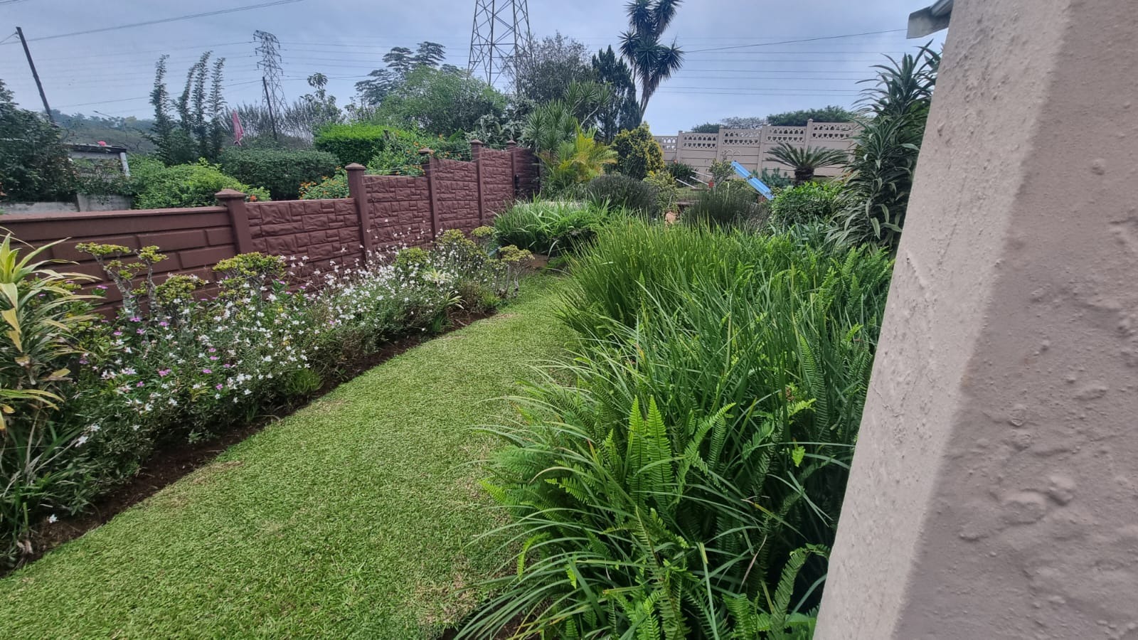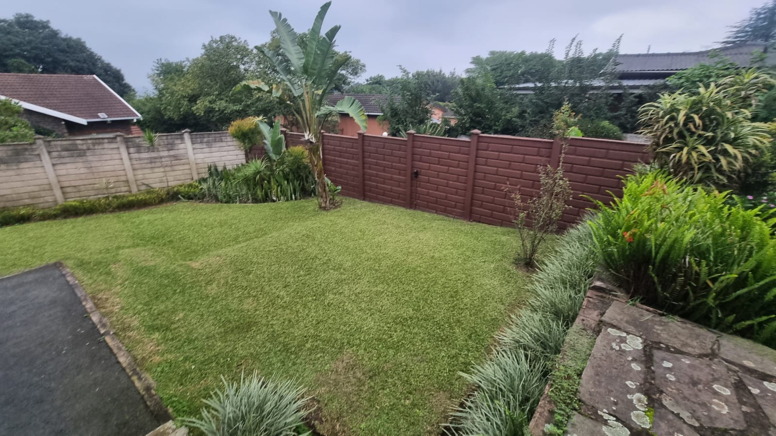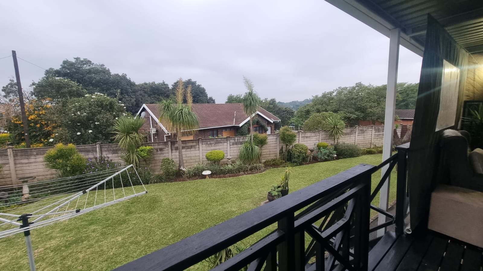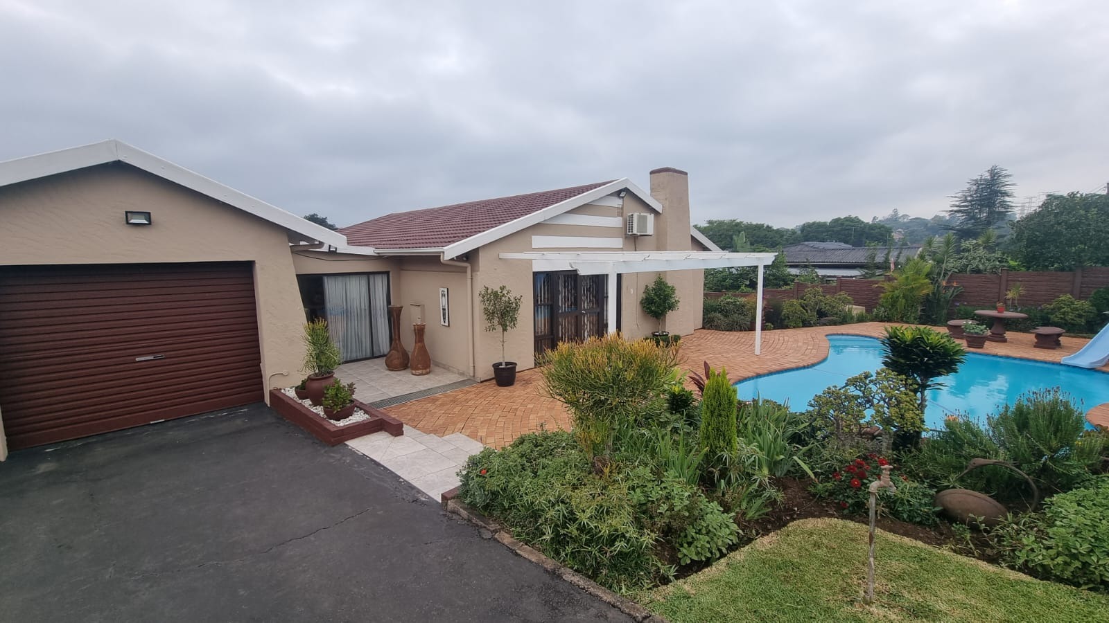 The entertainment area opens onto a wooden deck at the back of the home , while the pool has recently been redone. The garden is neat and easy to maintain.