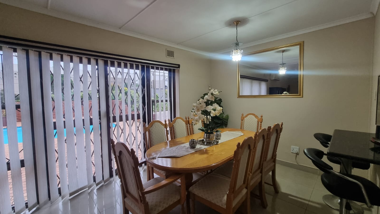 The open-plan lounge and dining area is air-conditioned and flows effortlessly onto the pool area, creating the perfect space for entertaining.