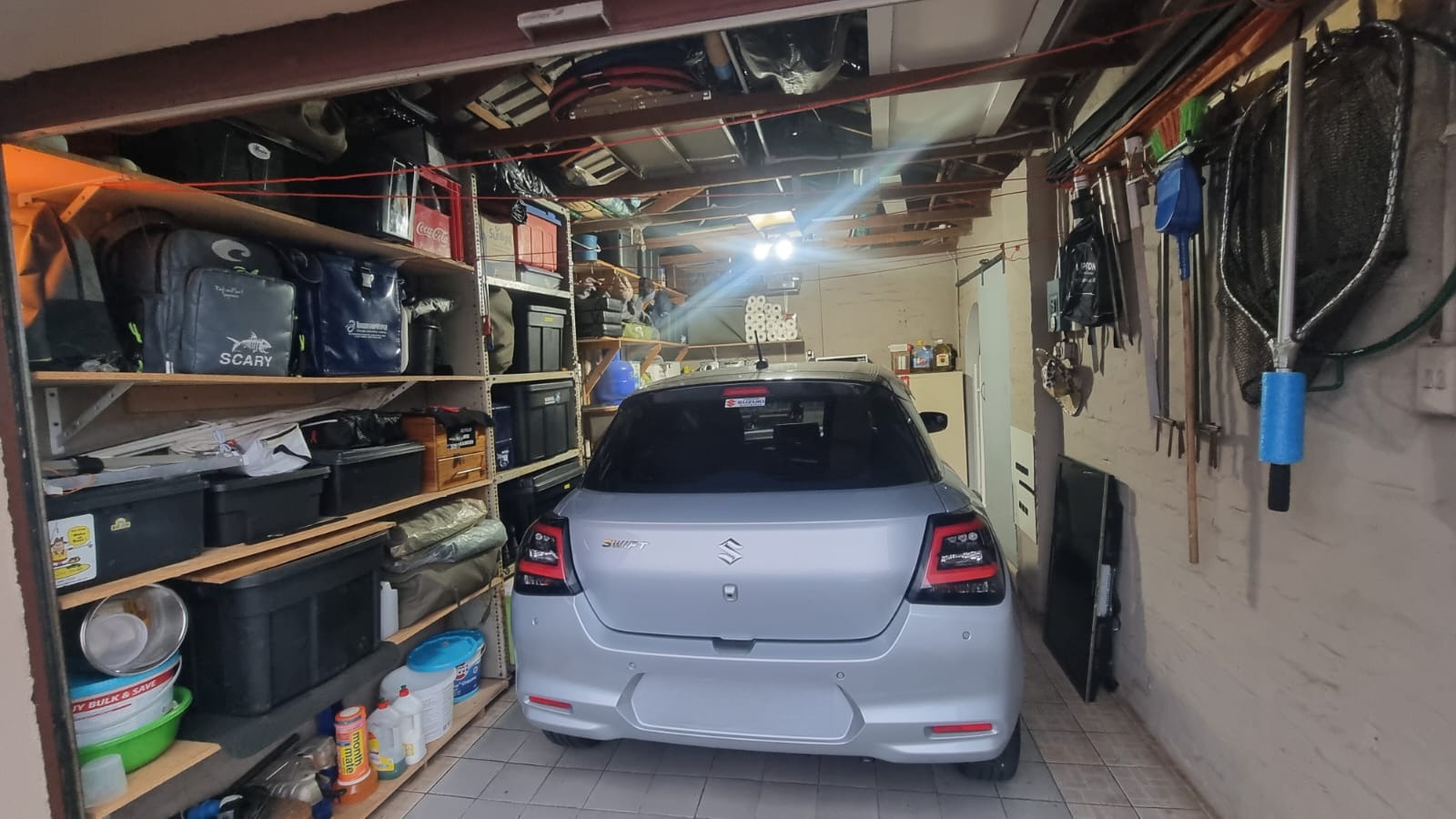 • Single automated garage with shelving