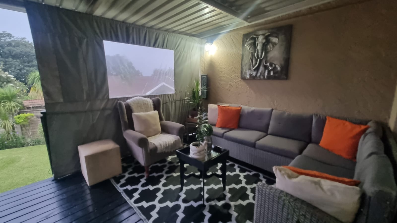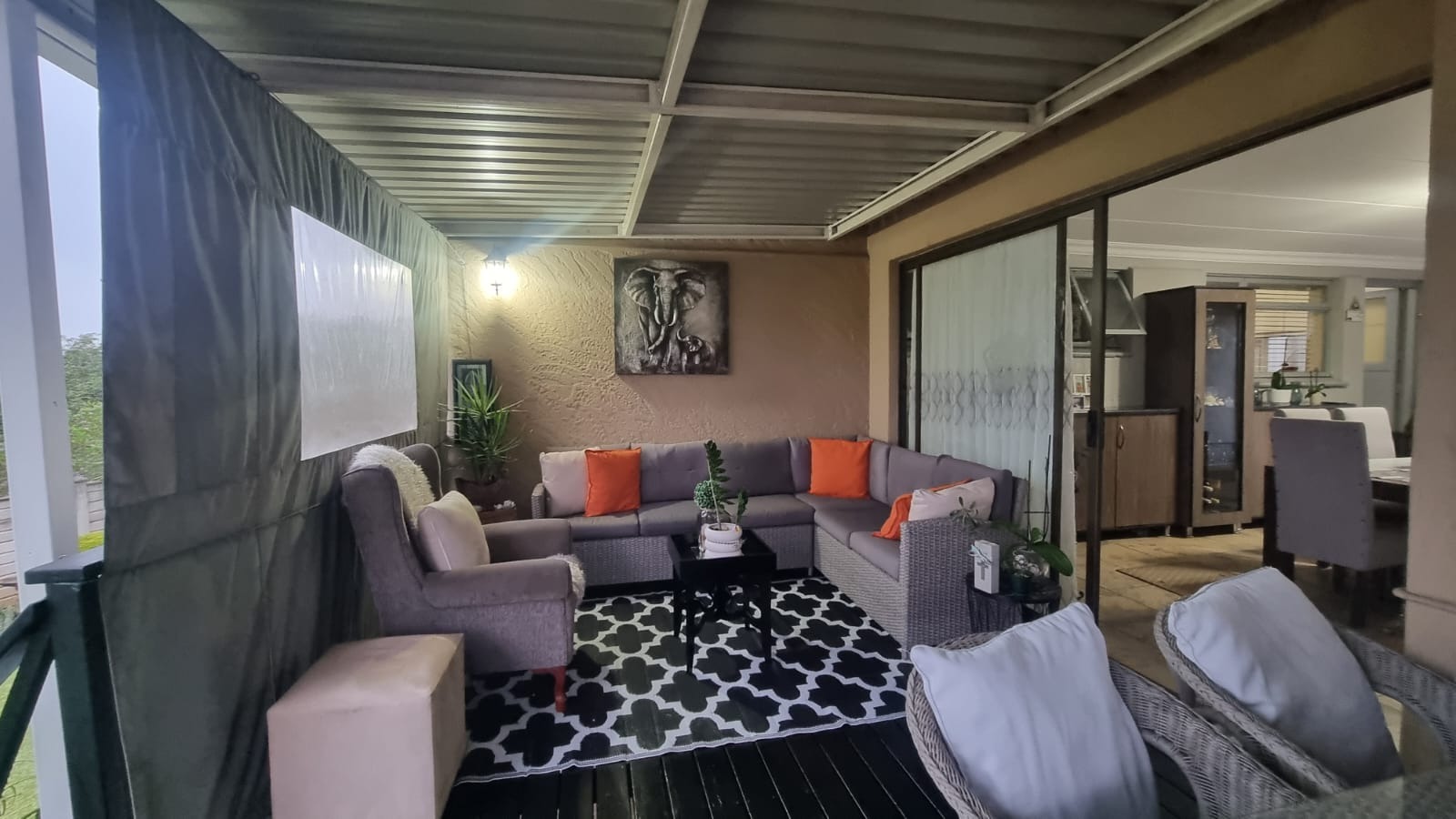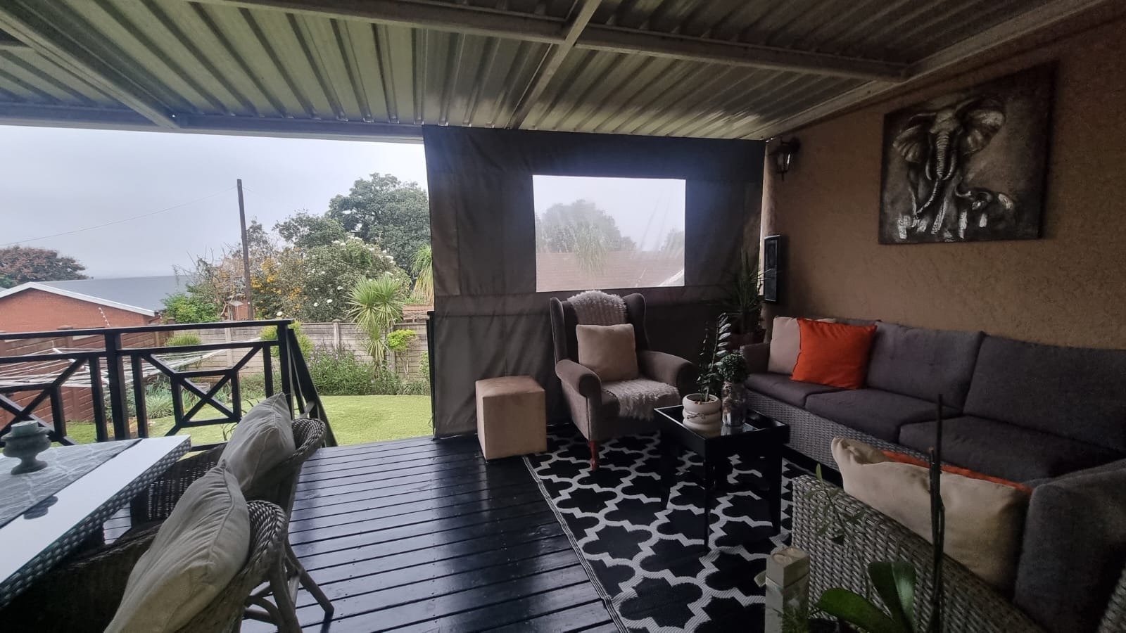 - Entertainment area with BIC, sliding door leading onto wooden deck
