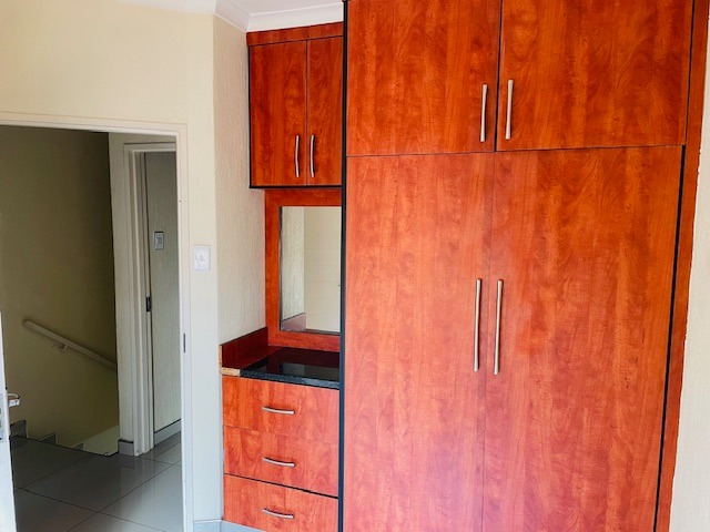 This newly listed first-floor apartment is the perfect “ready to move in” opportunity, combining modern finishes with tranquil surroundings. Built with timeless face brick, the unit boasts two spacious bedrooms with built-in cupboards, porcelain-tiled floors throughout, and a main bedroom with an air conditioner. The open-plan lounge flows seamlessly into a fully fitted modern kitchen, complete with granite countertops. The lounge extends onto a balcony overlooking a serene stream and lush greenery - the ideal spot to unwind.
