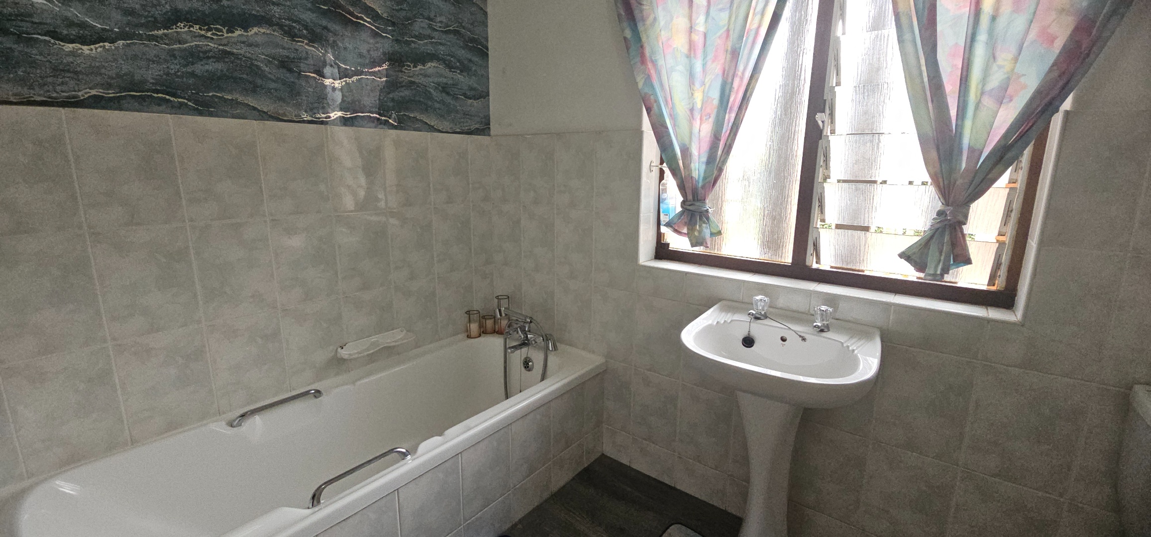 The two bedrooms are spacious and airy, with the main bedroom generously sized and featuring its own en-suite bathroom. The second bedroom is serviced by a neat family bathroom.