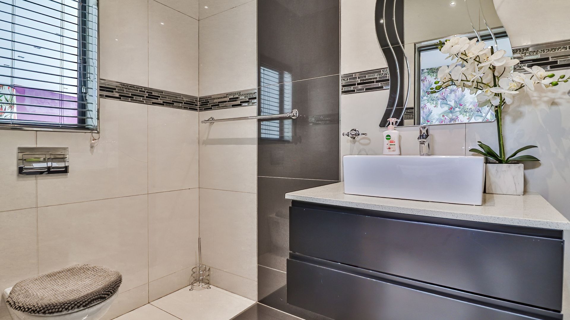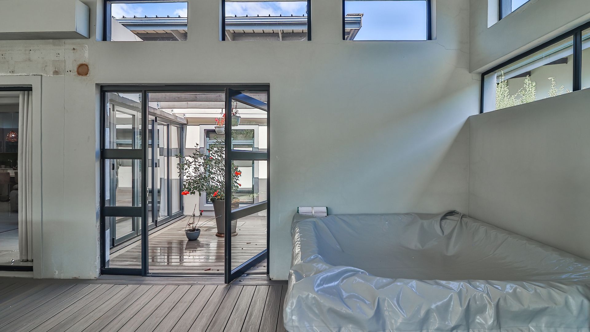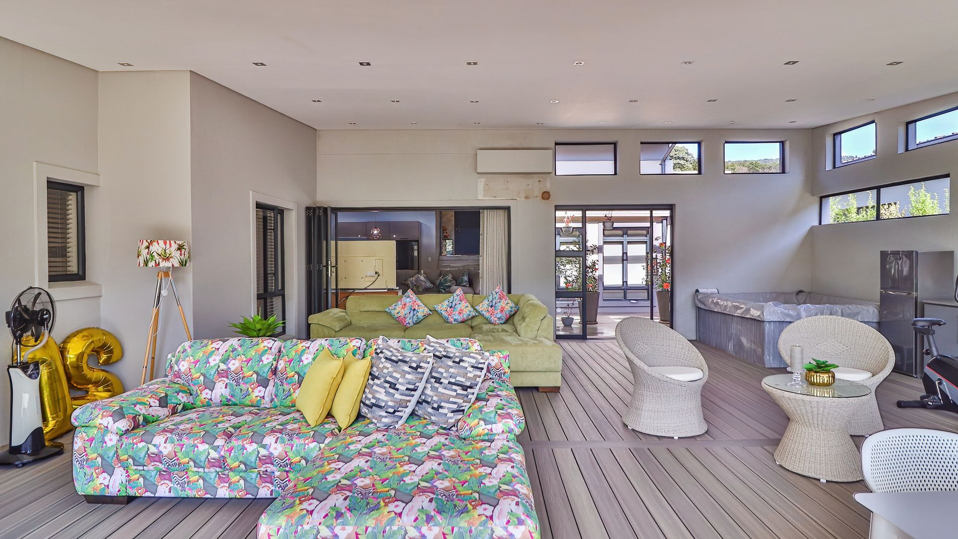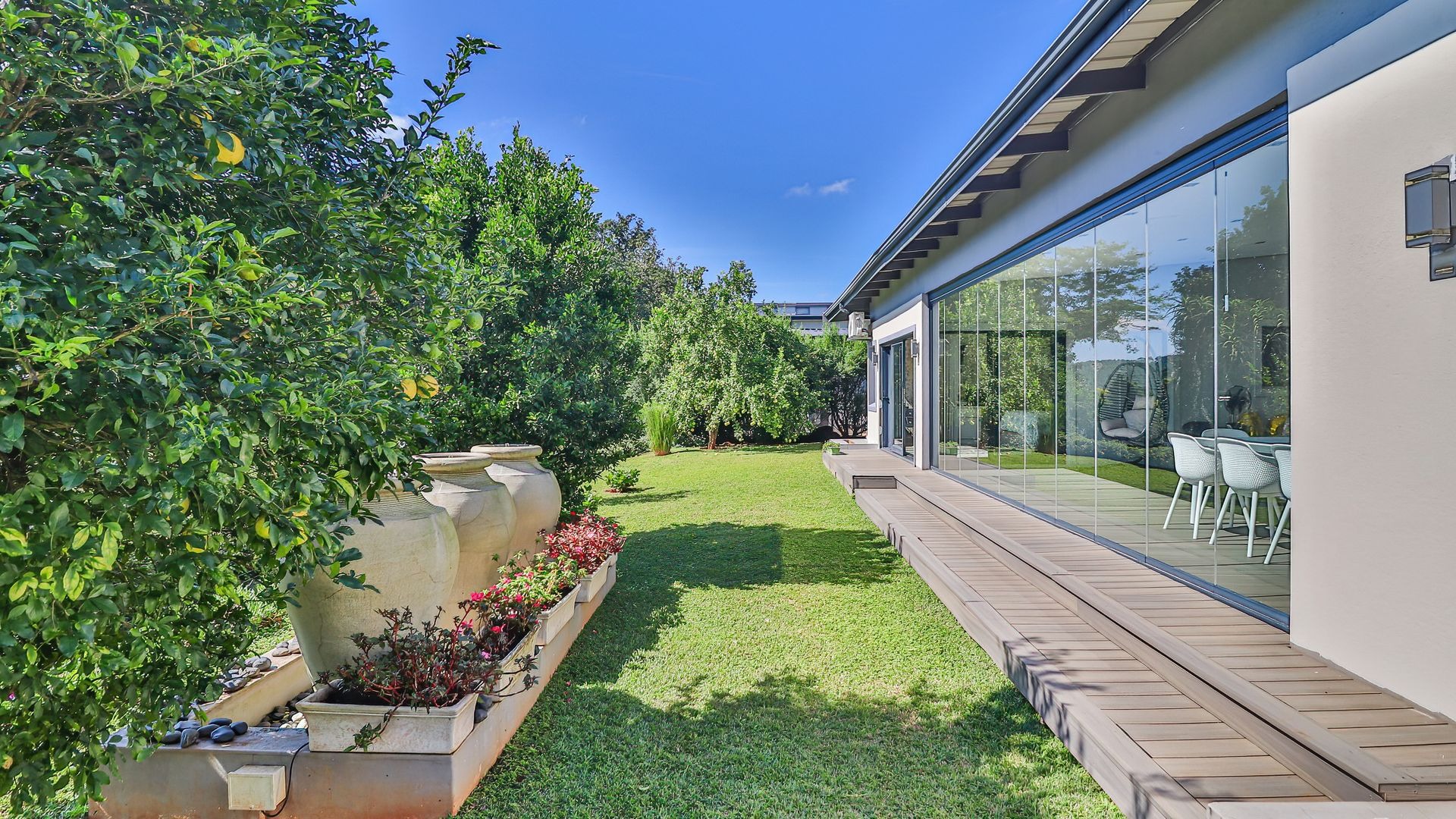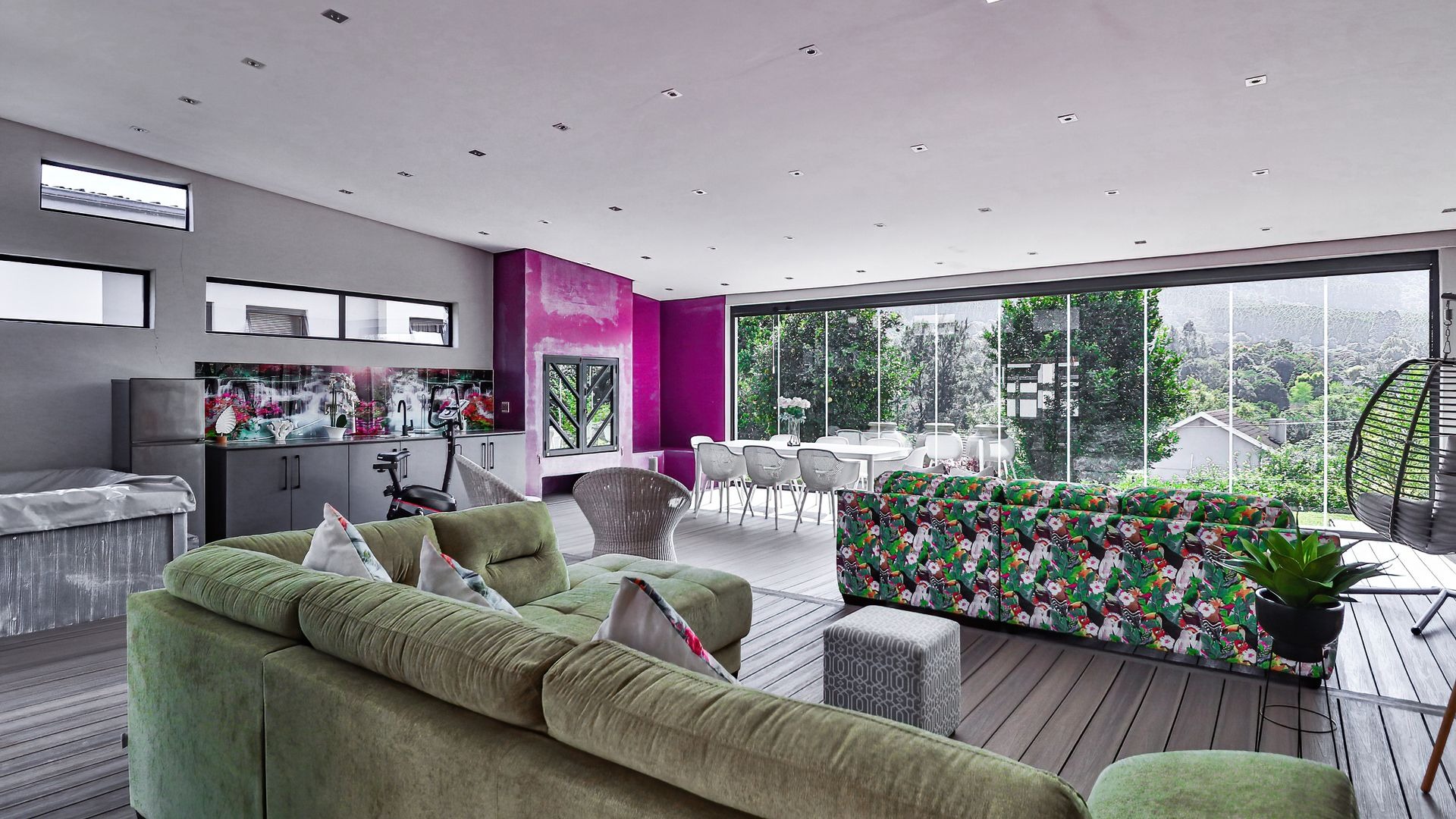 - Massive PVC decking entertainment area with frameless stackable doors.