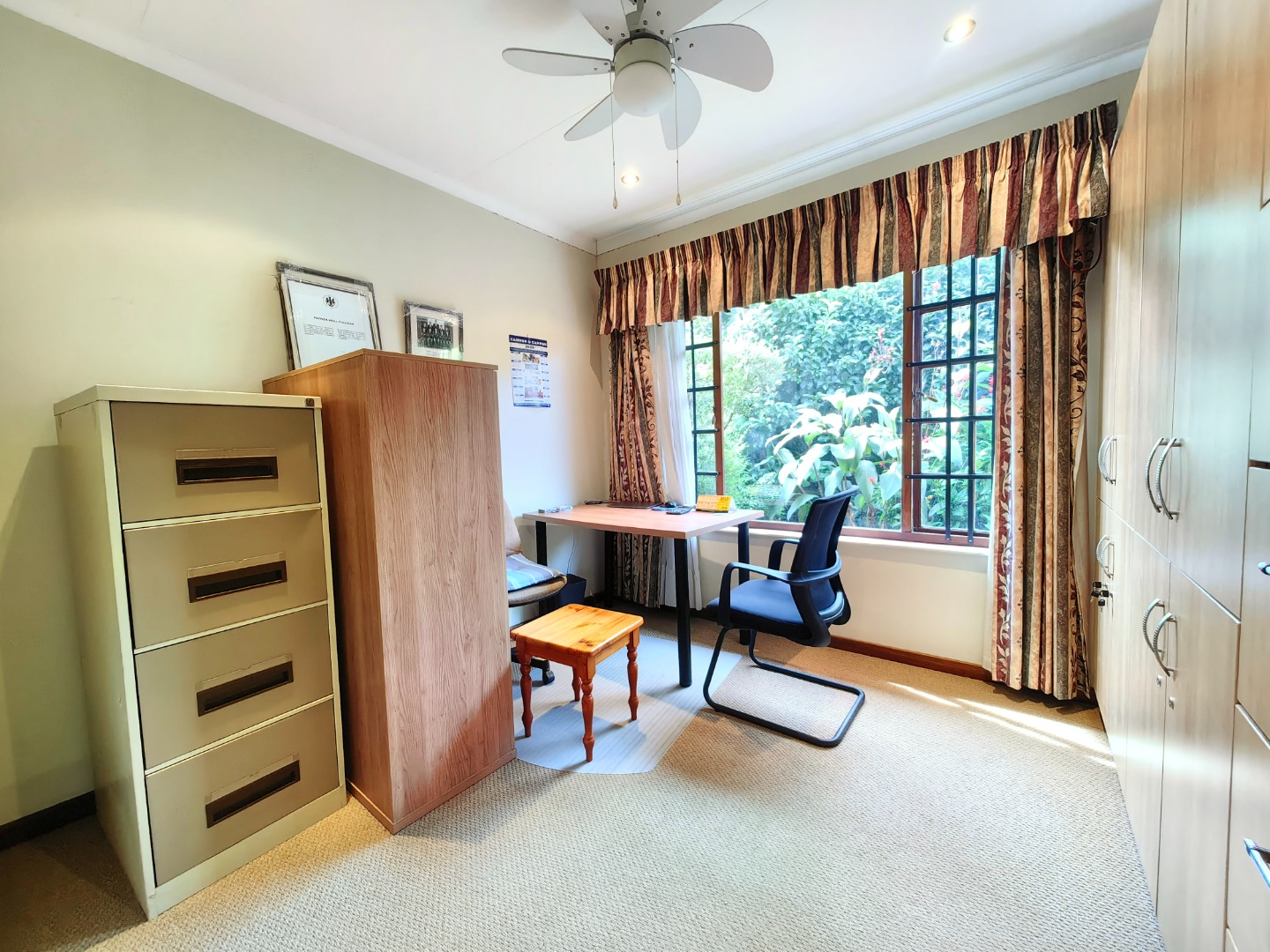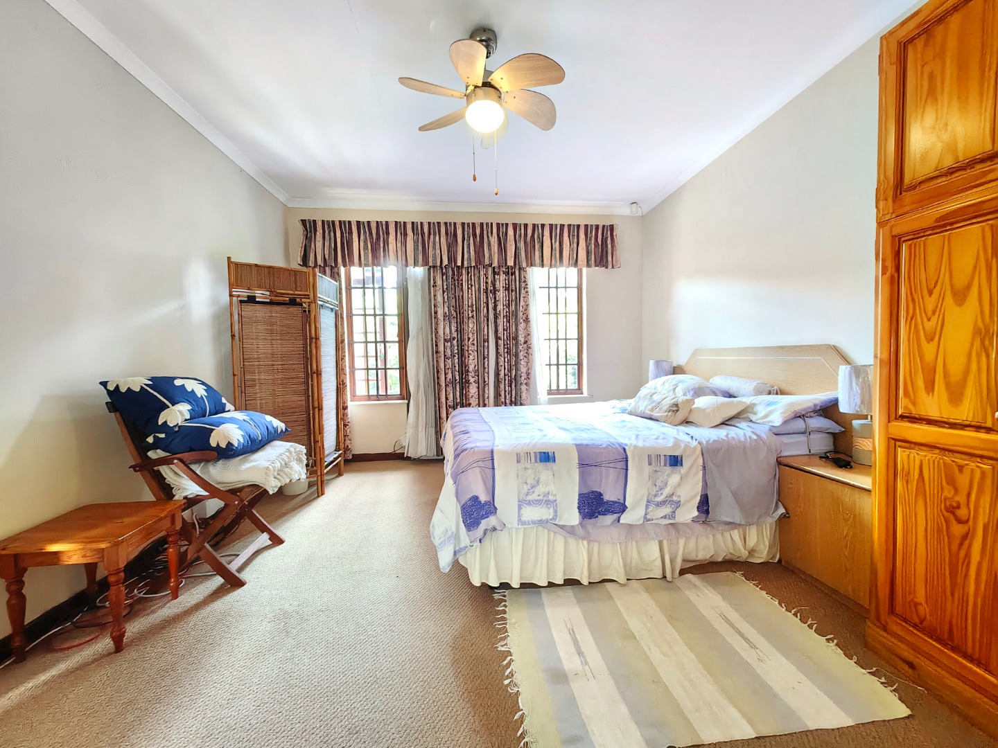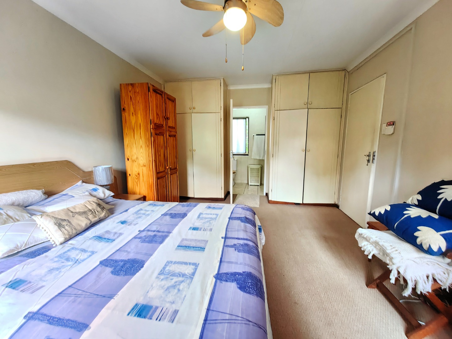 All three bedrooms are comfortable and well-appointed, with ceiling fans and built-in cupboards.