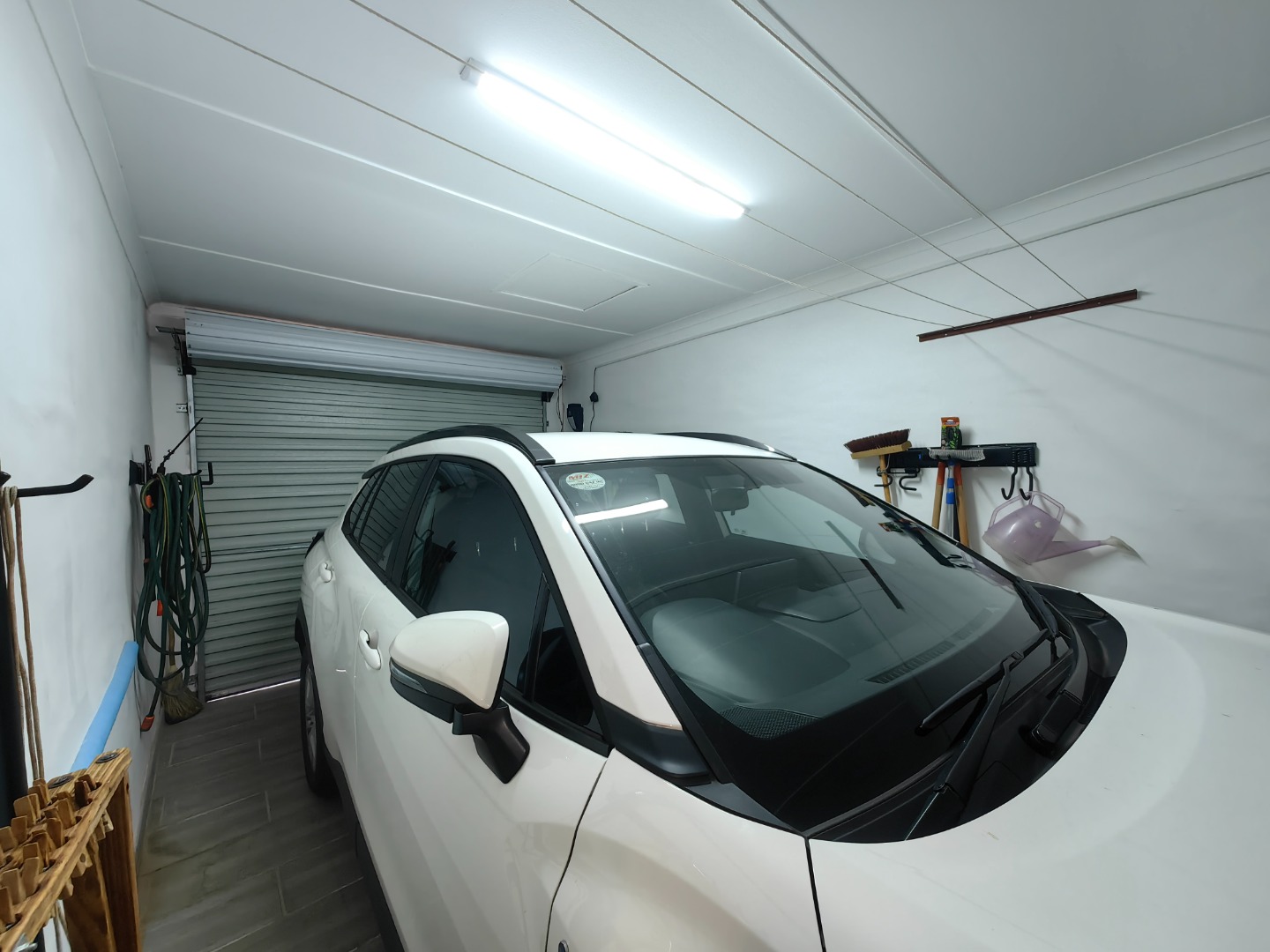 The automated garage offers direct access into the home and includes additional fittings, with extra parking available for convenience.