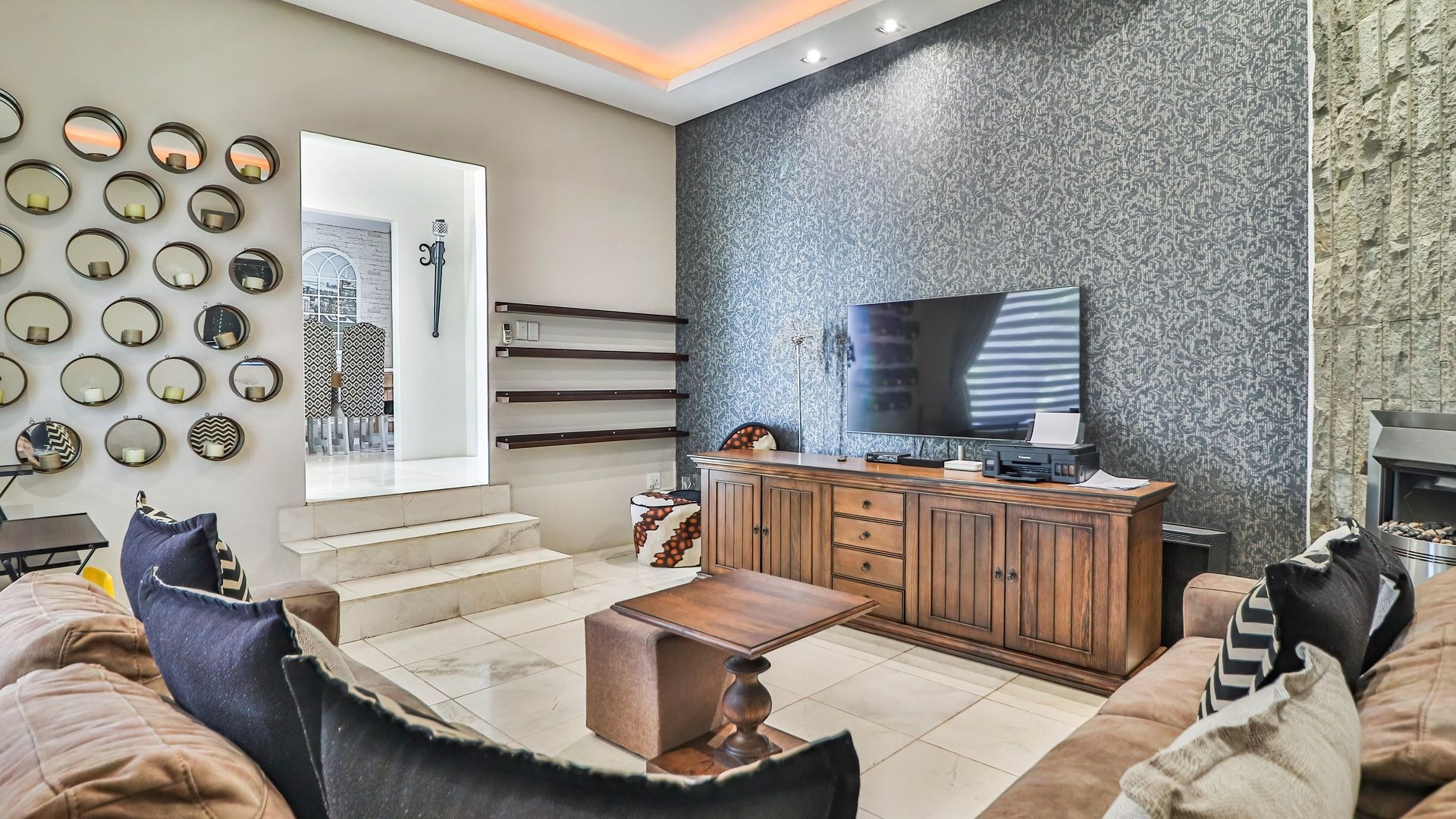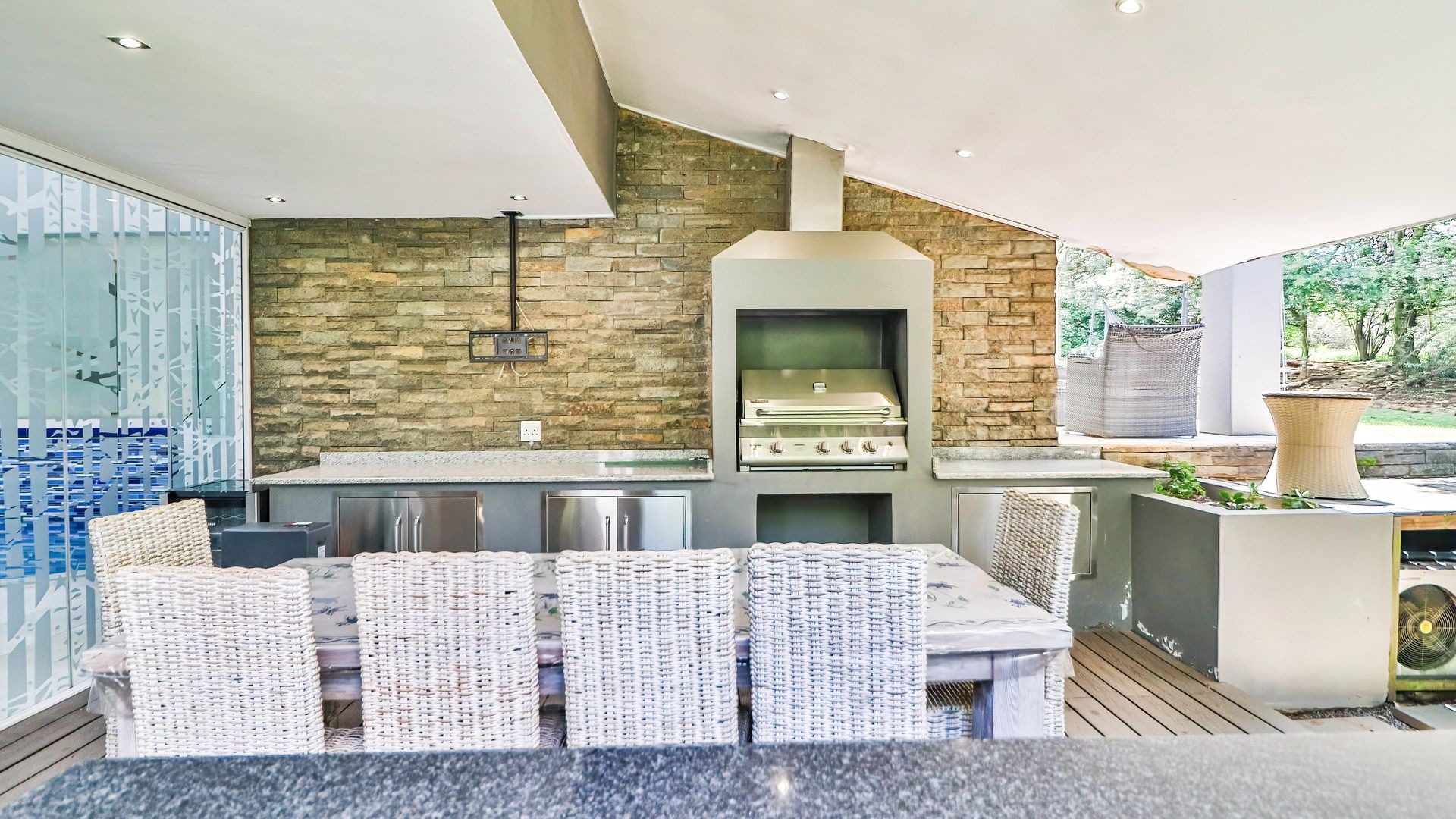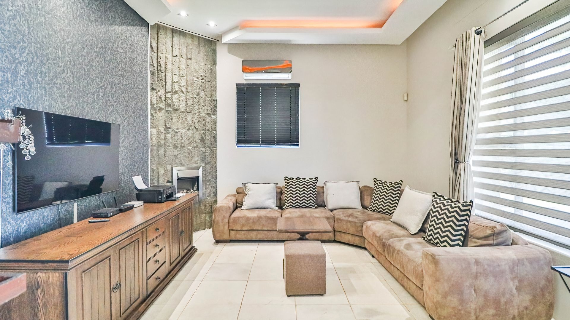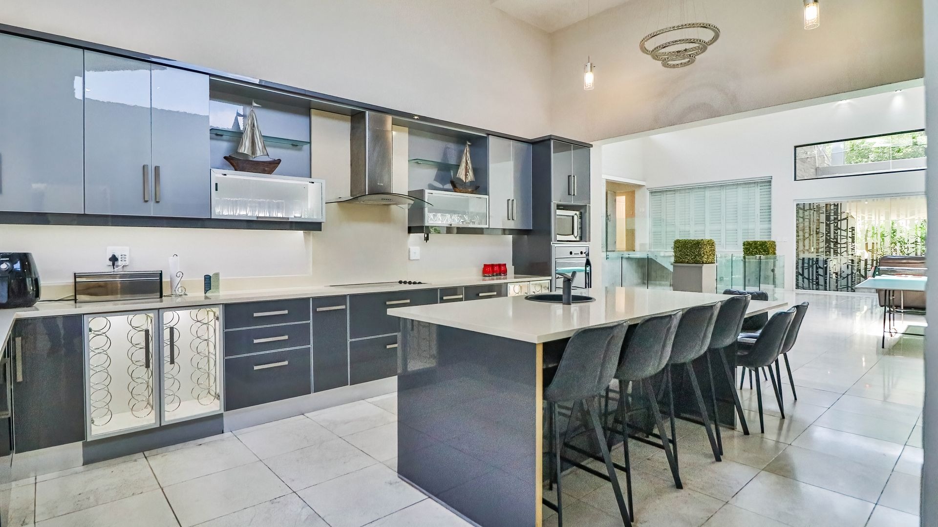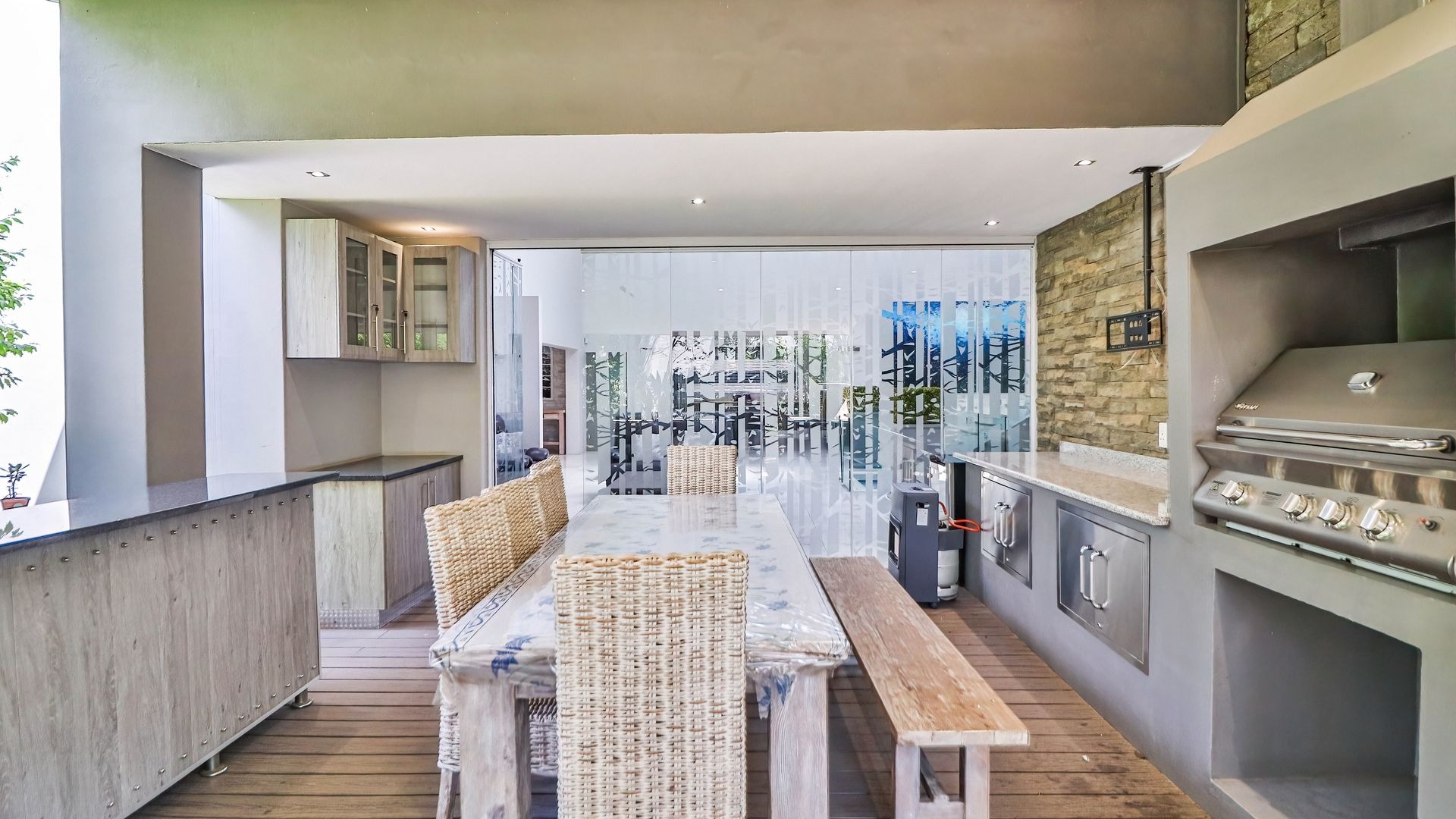 The seamless transition from indoor to outdoor spaces creates the perfect setting for entertaining, enhanced by a spacious all-weather patio. Situated on a generous double plot, this prestigious property includes premium finishes, ducted air-conditioning, staff quarters, and an array of additional amenities.