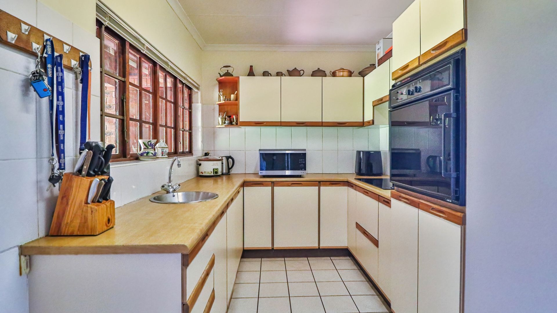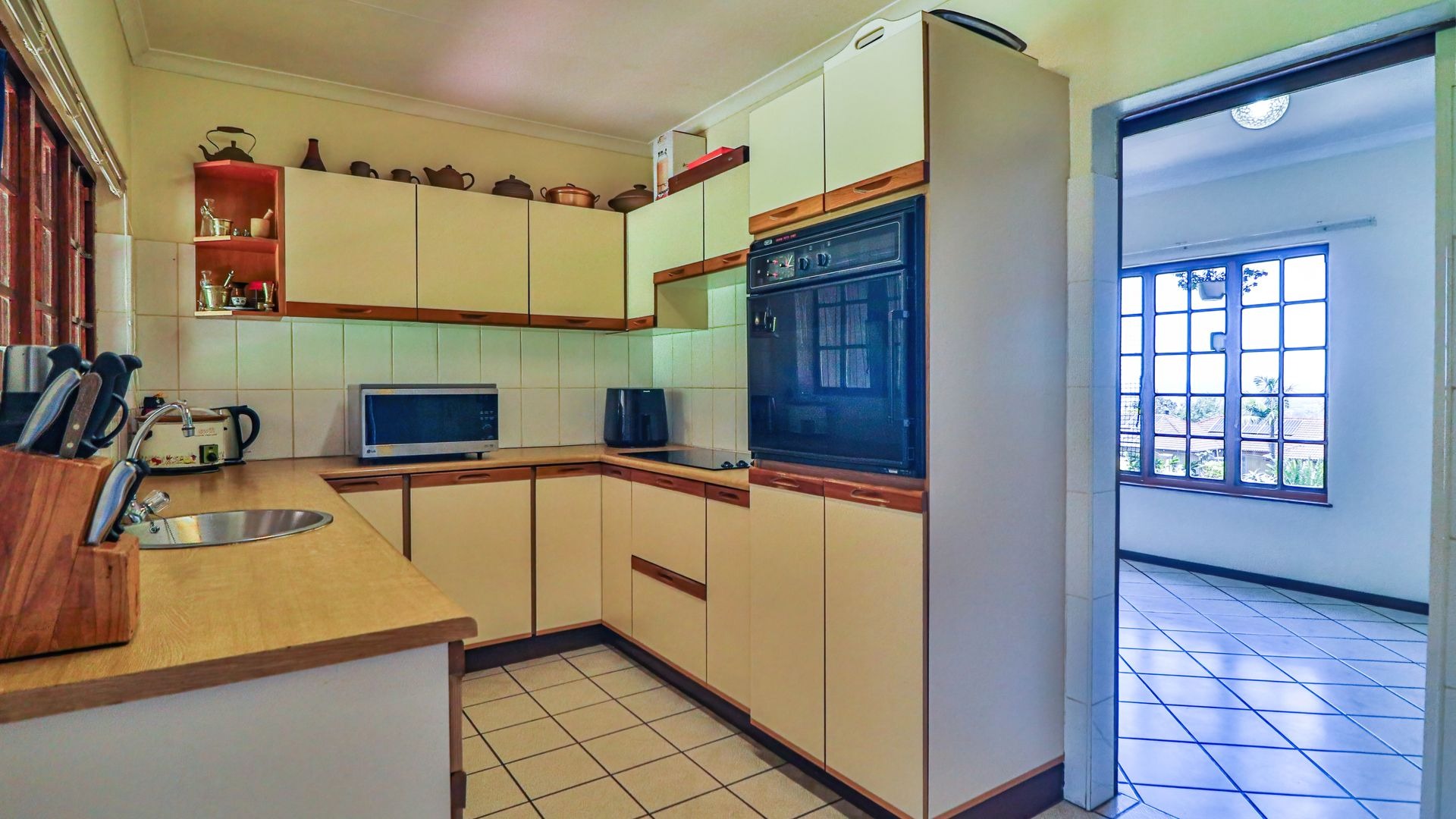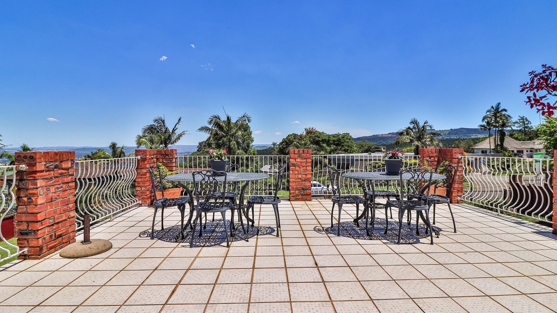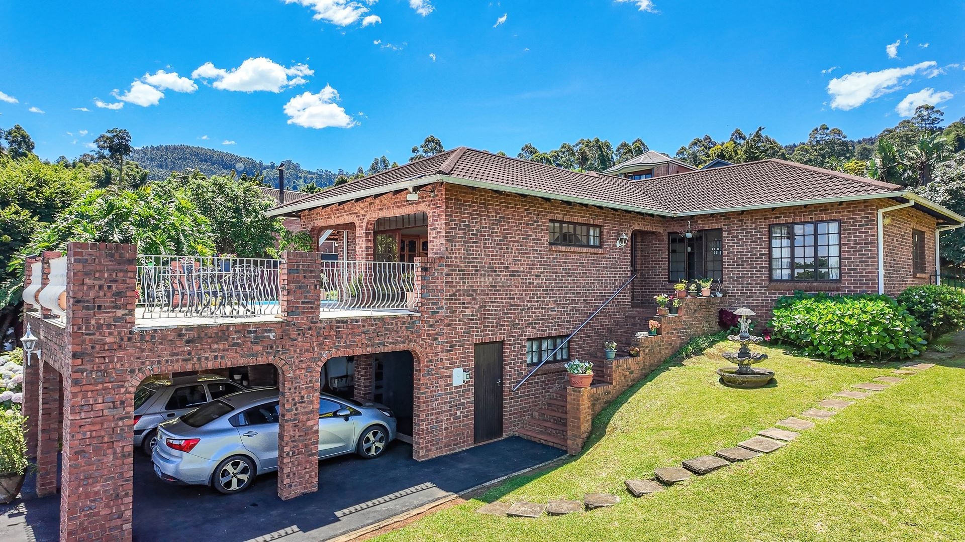 Inside, the upper level features a spacious lounge that opens onto a beautiful balcony, a TV room, a dining room, and a pin-neat kitchen. There are five bedrooms and two-and-a-half bathrooms, with the fifth room offering excellent potential to be converted into a guest suite or flatlet.