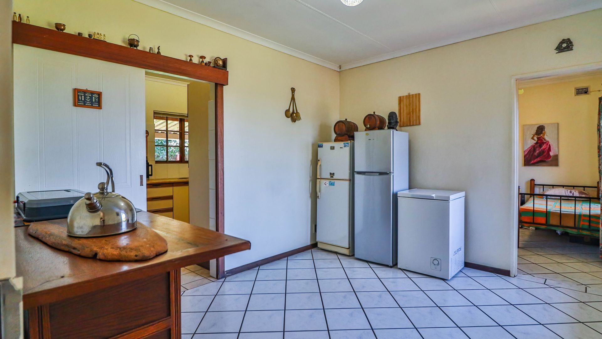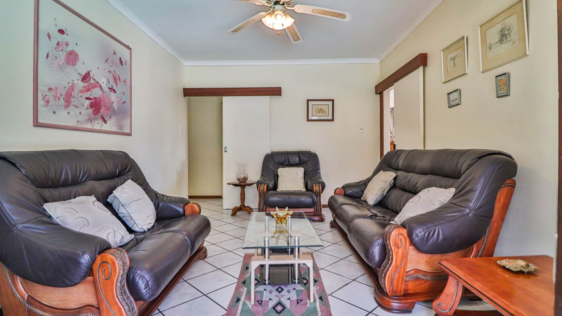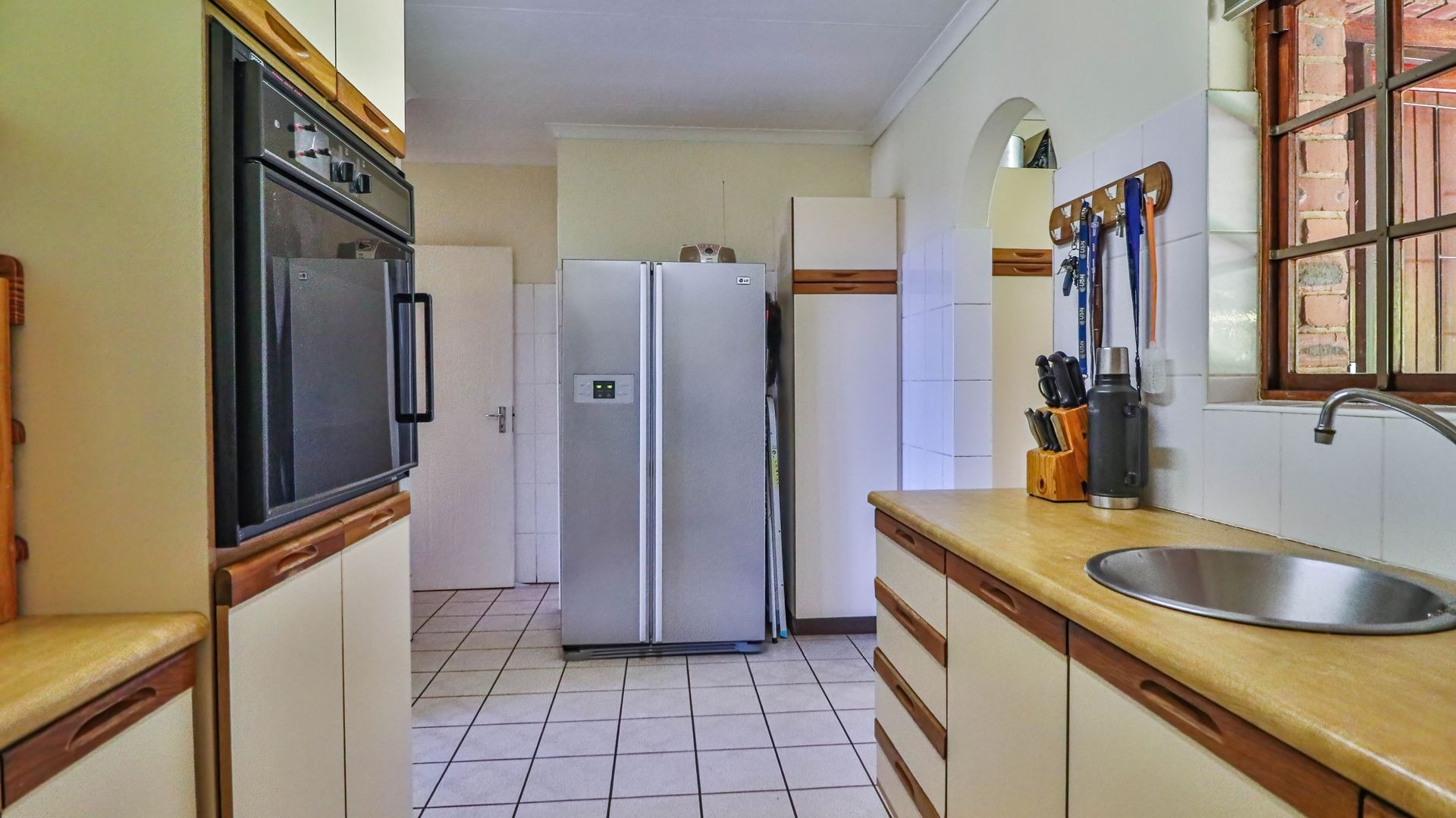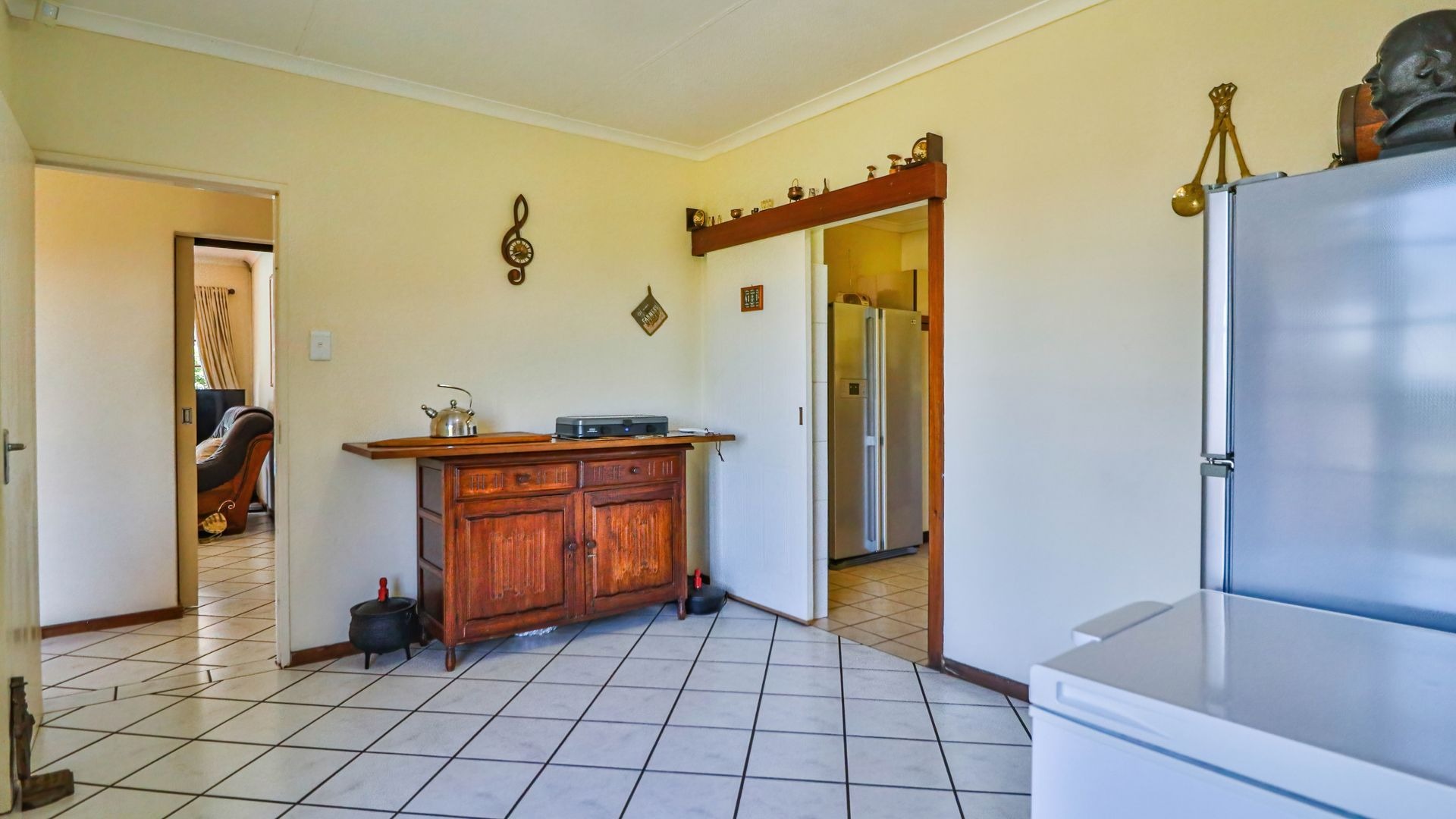 Inside, the upper level features a spacious lounge that opens onto a beautiful balcony, a TV room, a dining room, and a pin-neat kitchen. There are five bedrooms and two-and-a-half bathrooms, with the fifth room offering excellent potential to be converted into a guest suite or flatlet.
