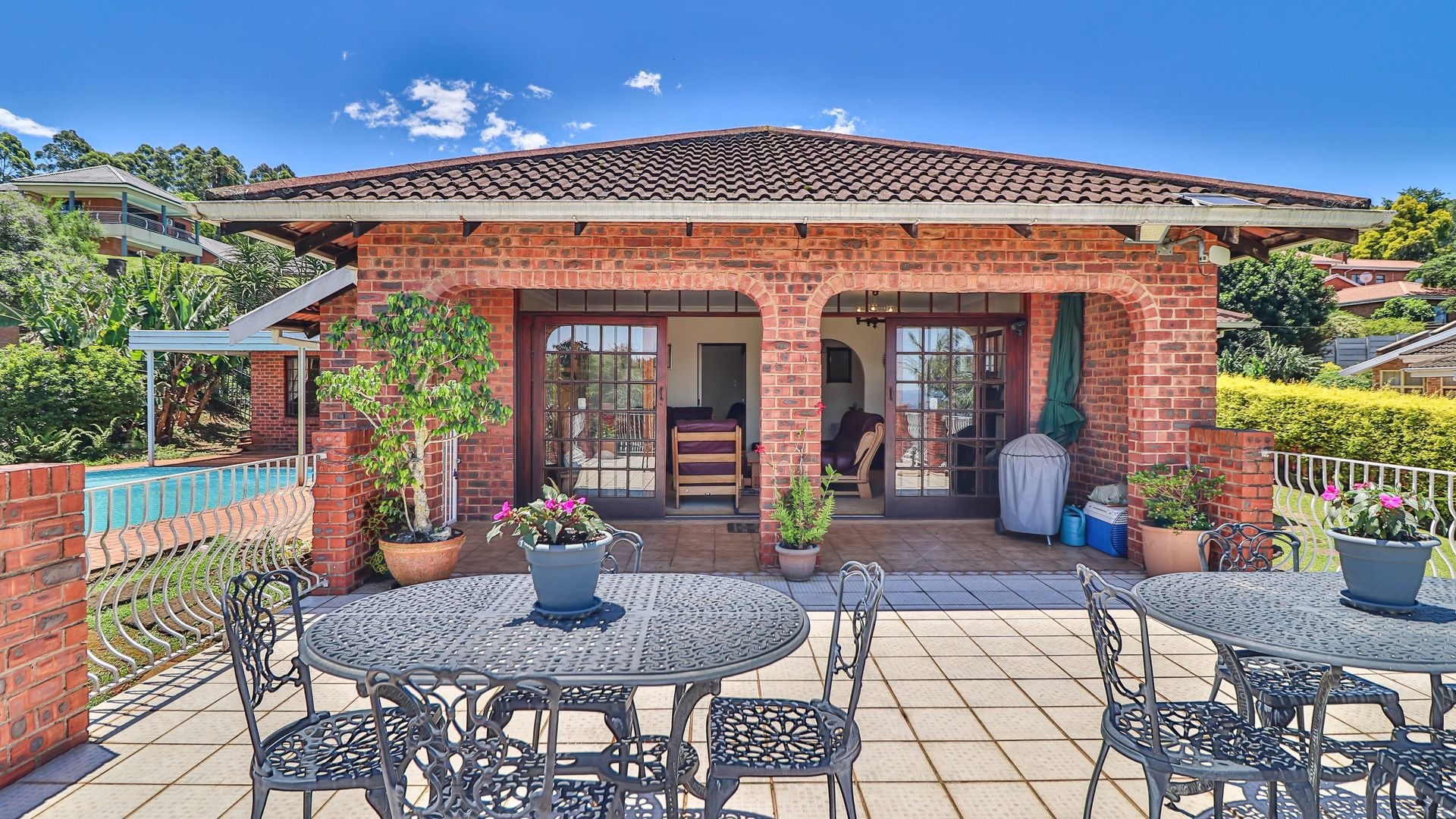Entertainment is effortless with a sparkling pool, an outdoor braai area and a patio fitted with adjustable louvres for year-round use.