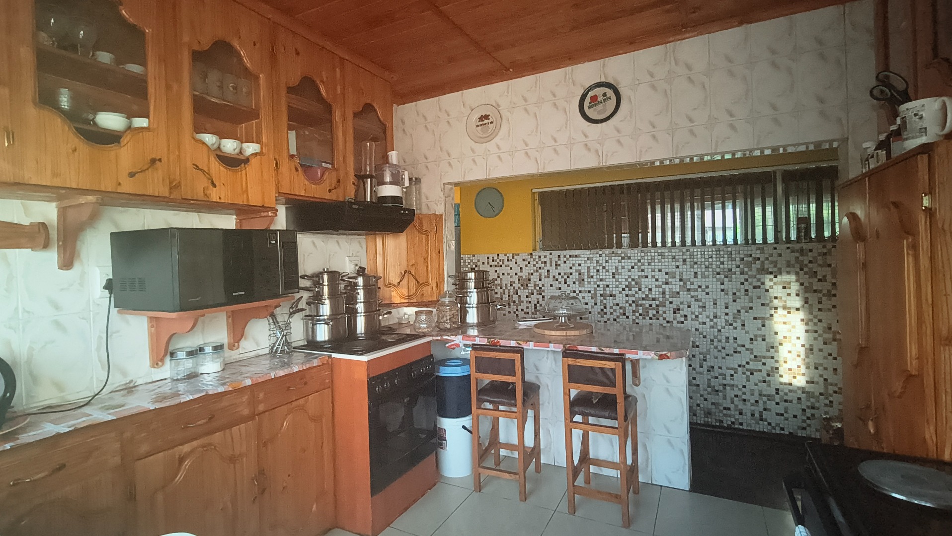 Spacious 4-bedroom home with a fully fitted kitchen, air-conditioned lounge, main bathroom, and separate loo. This property also features a convenient outbuilding with a room, kitchen, bathroom, and toilet.