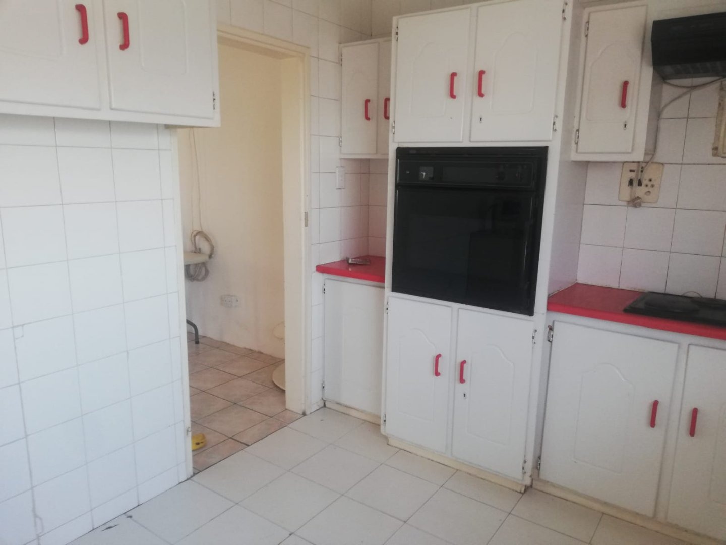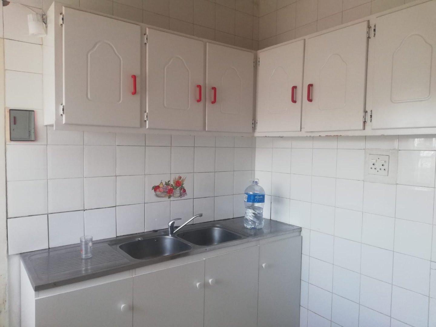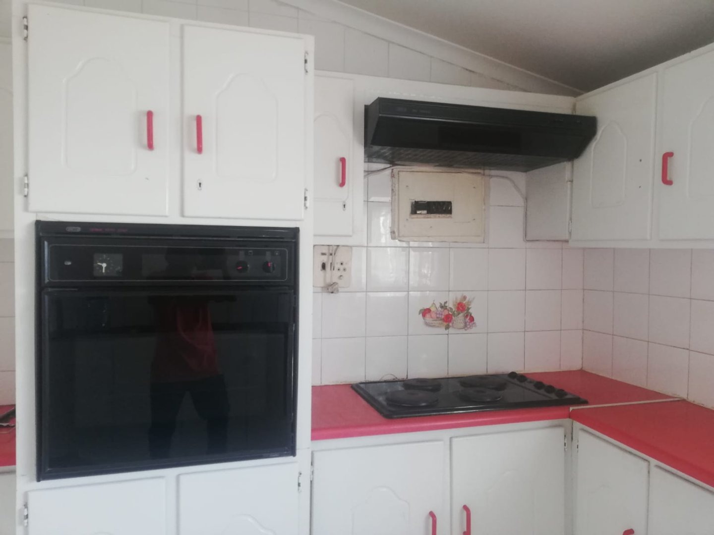 The fully tiled bathroom boasts new shower fittings, while the kitchen is also tiled and includes built-in cupboards, a stove, oven, and extractor—though some equipment may be dated. The open-plan lounge and dining area create a spacious feel, ideal for entertaining or relaxing.