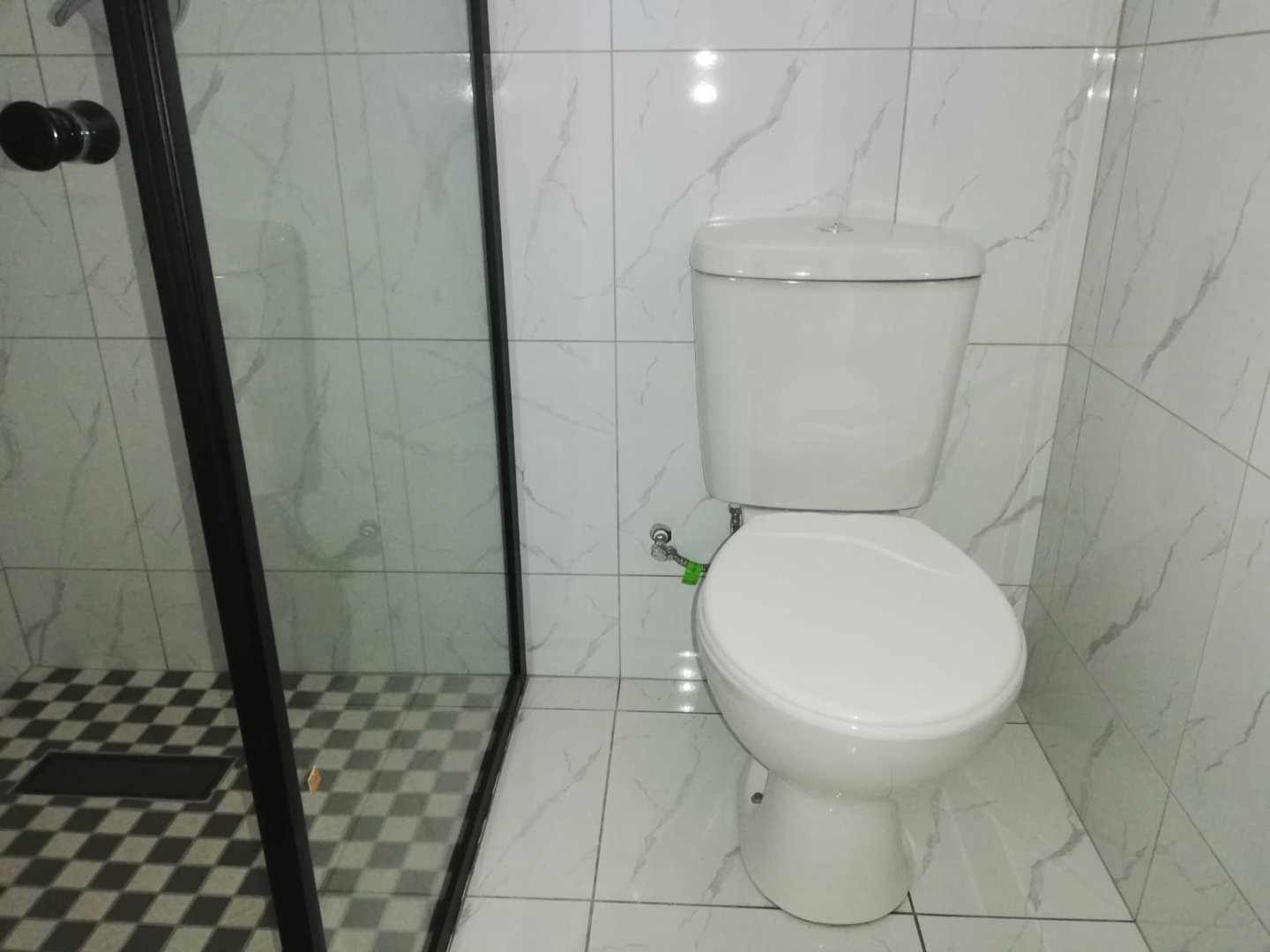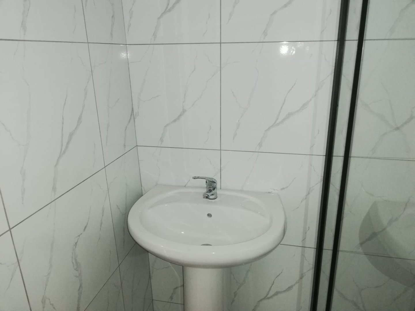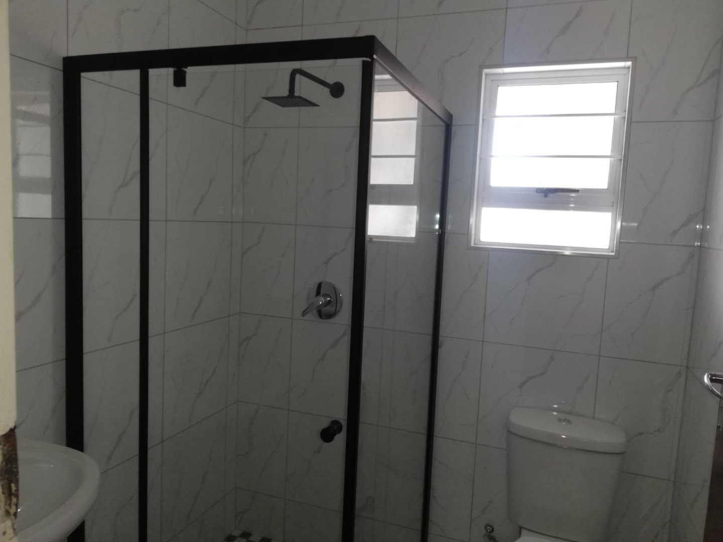 The fully tiled bathroom boasts new shower fittings, while the kitchen is also tiled and includes built-in cupboards, a stove, oven, and extractor—though some equipment may be dated. The open-plan lounge and dining area create a spacious feel, ideal for entertaining or relaxing.