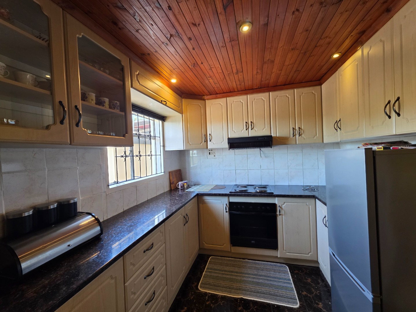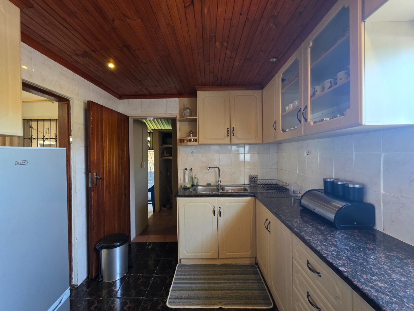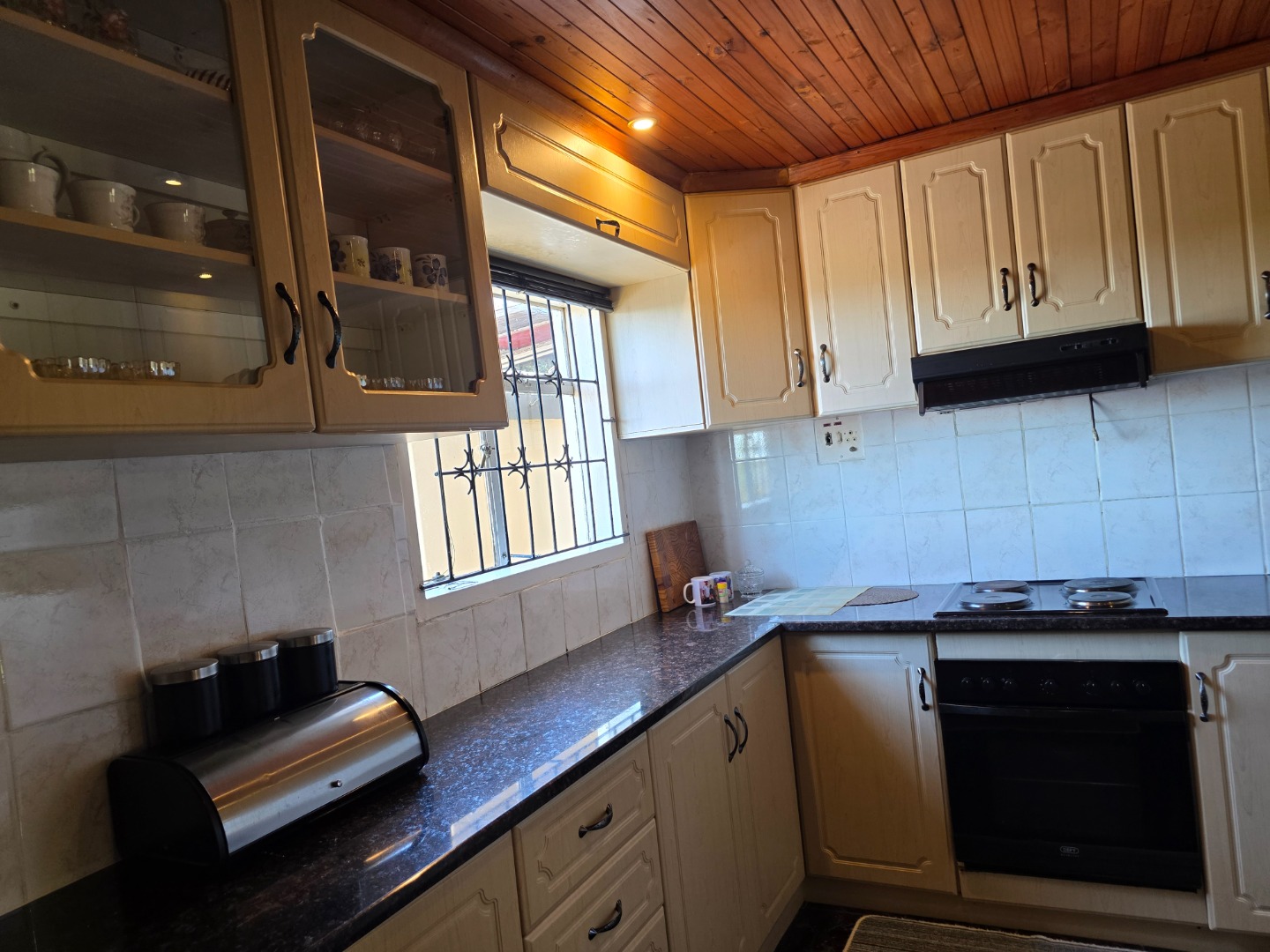 The open-plan Lounge and Dining area effortlessly flows into the fully-fitted Kitchen, complete with elegant granite countertops and space for appliances. A covered awning leads to the washline area, providing a seamless indoor-outdoor lifestyle.
