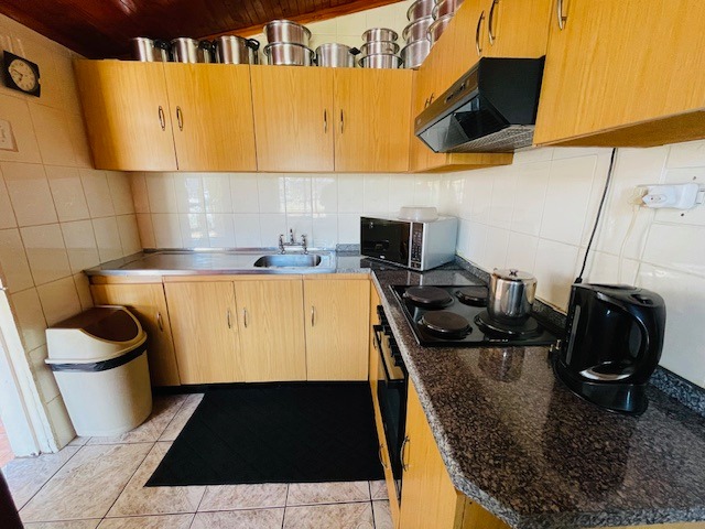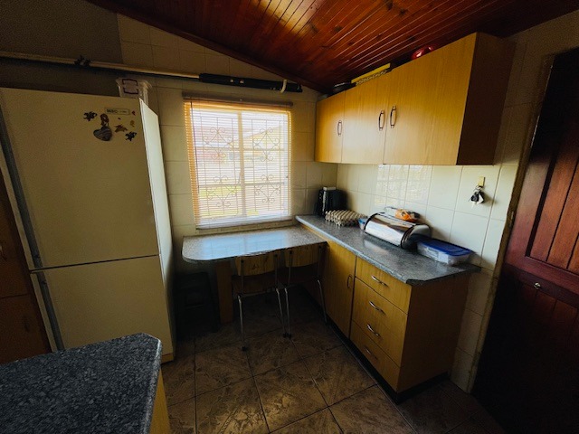 Step inside and you’ll be greeted by a warm, inviting lounge with knotty pine ceilings that set the tone for cosy evenings. The fully fitted kitchen, also adorned with knotty pine ceilings, provides ample storage and functionality for everyday living. Each of the three bedrooms is neatly fitted with built-in cupboards, ensuring plenty of space for your belongings. Adding to the cottage charm are ornate ceilings in the passage leading to the bedrooms, a delightful touch that enhances the home's character. The bathroom is neat and practical, complete with a bathtub, basin, and toilet.