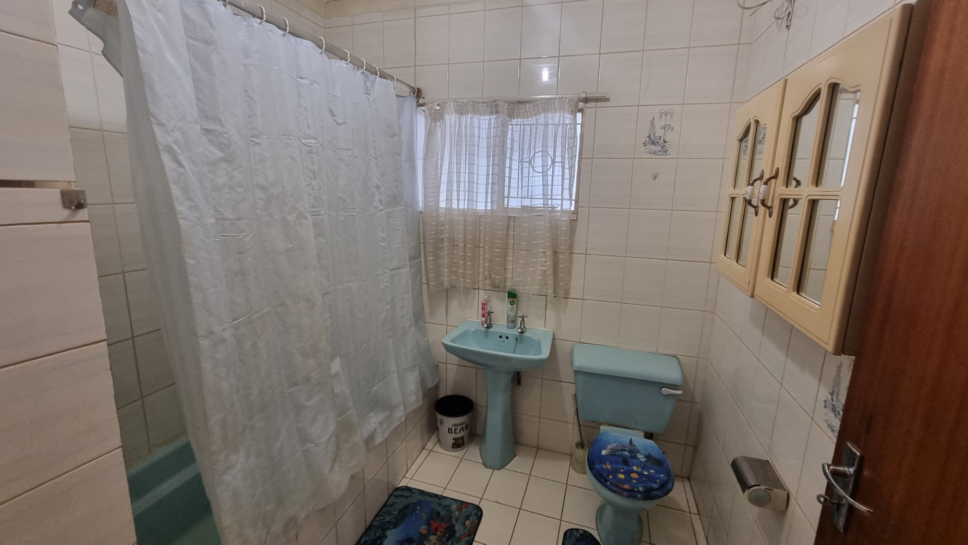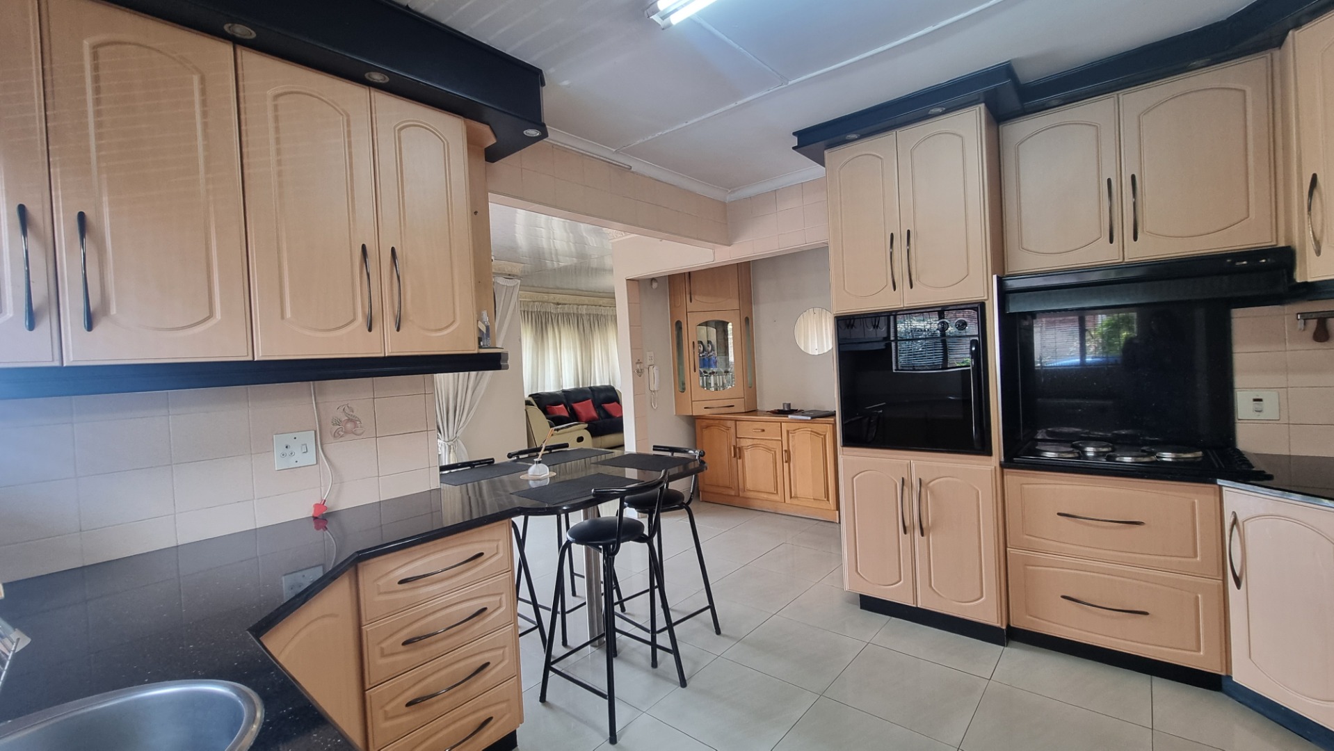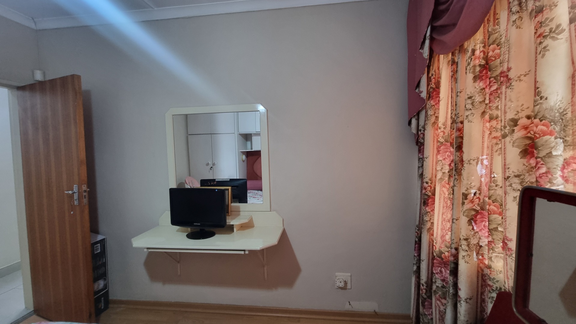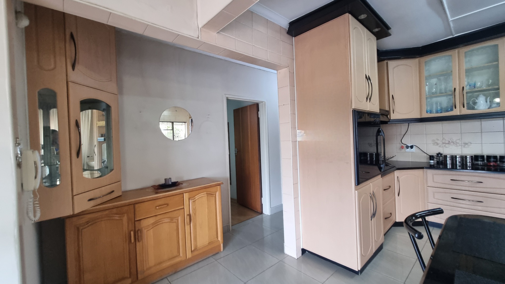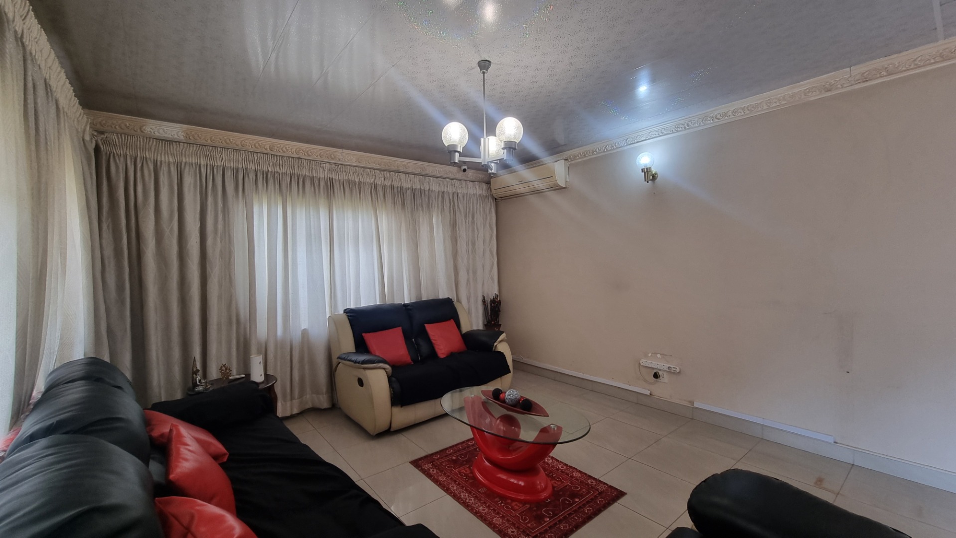 This well-maintained family home offers a fully fitted kitchen with built-in cupboards, oven, hob, extractor, and a separate scullery. It features three bedrooms with built-in cupboards, including a main en-suite. The main bedroom is air-conditioned for added comfort, and there is also a modern family bathroom.