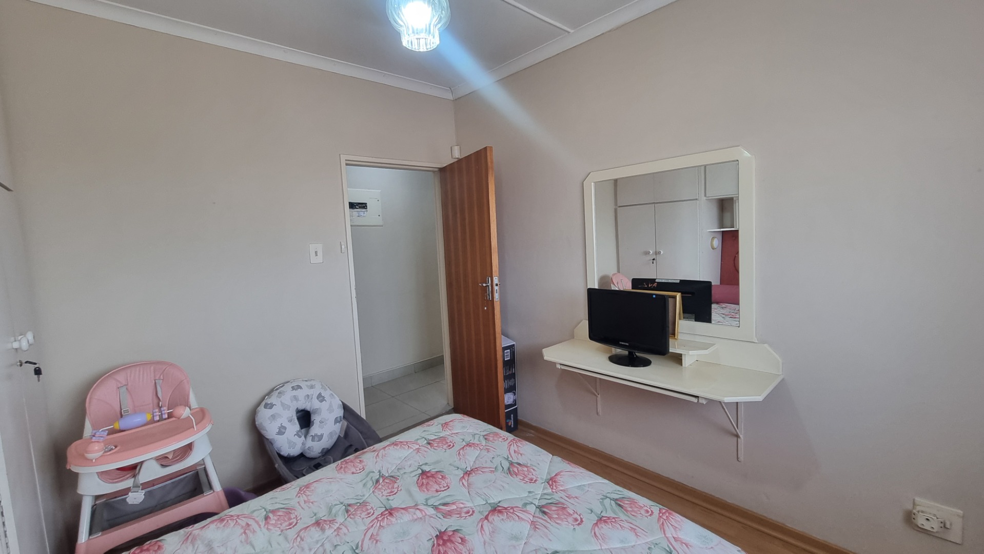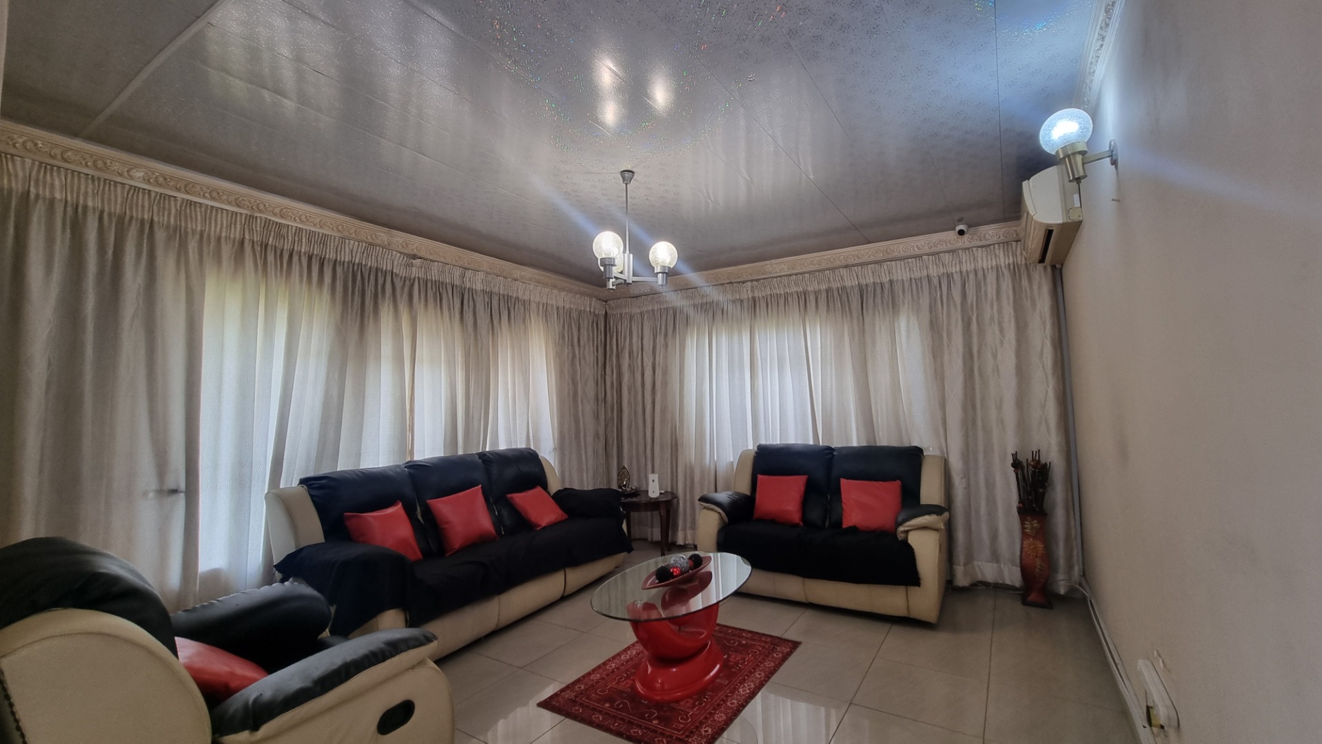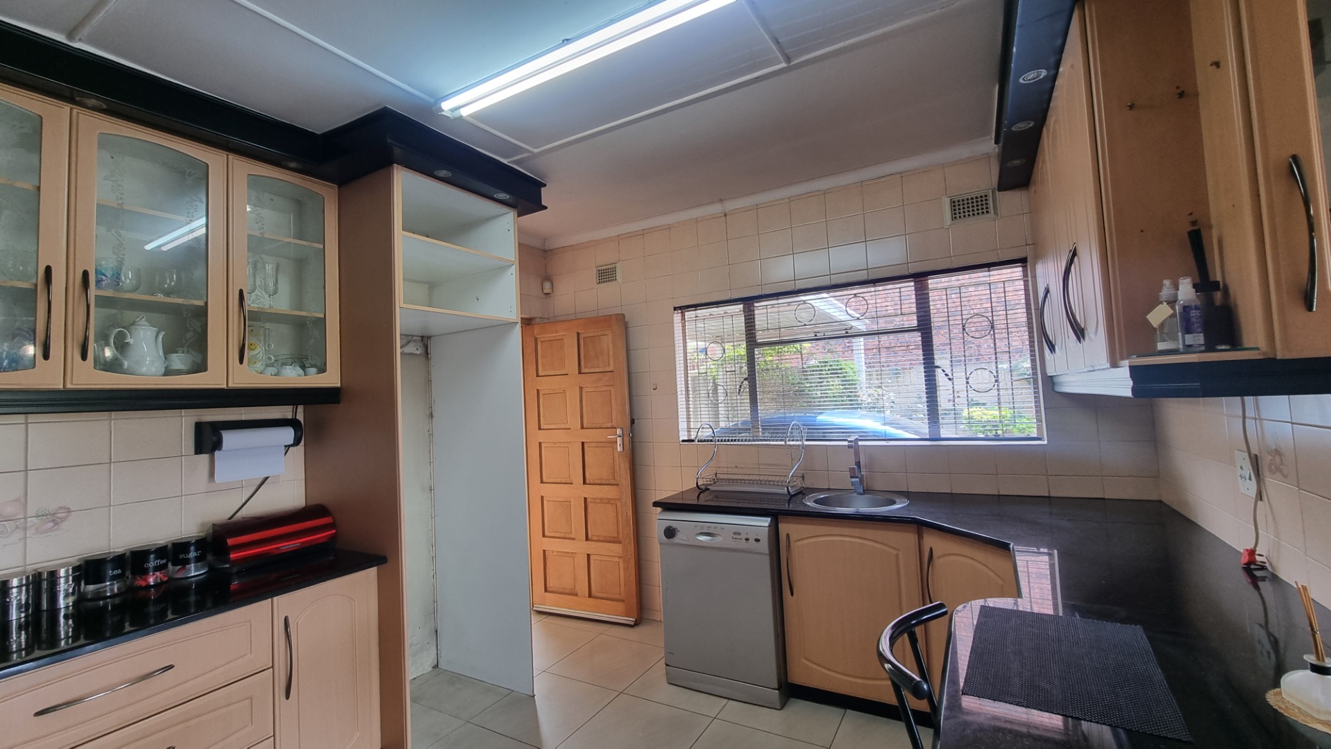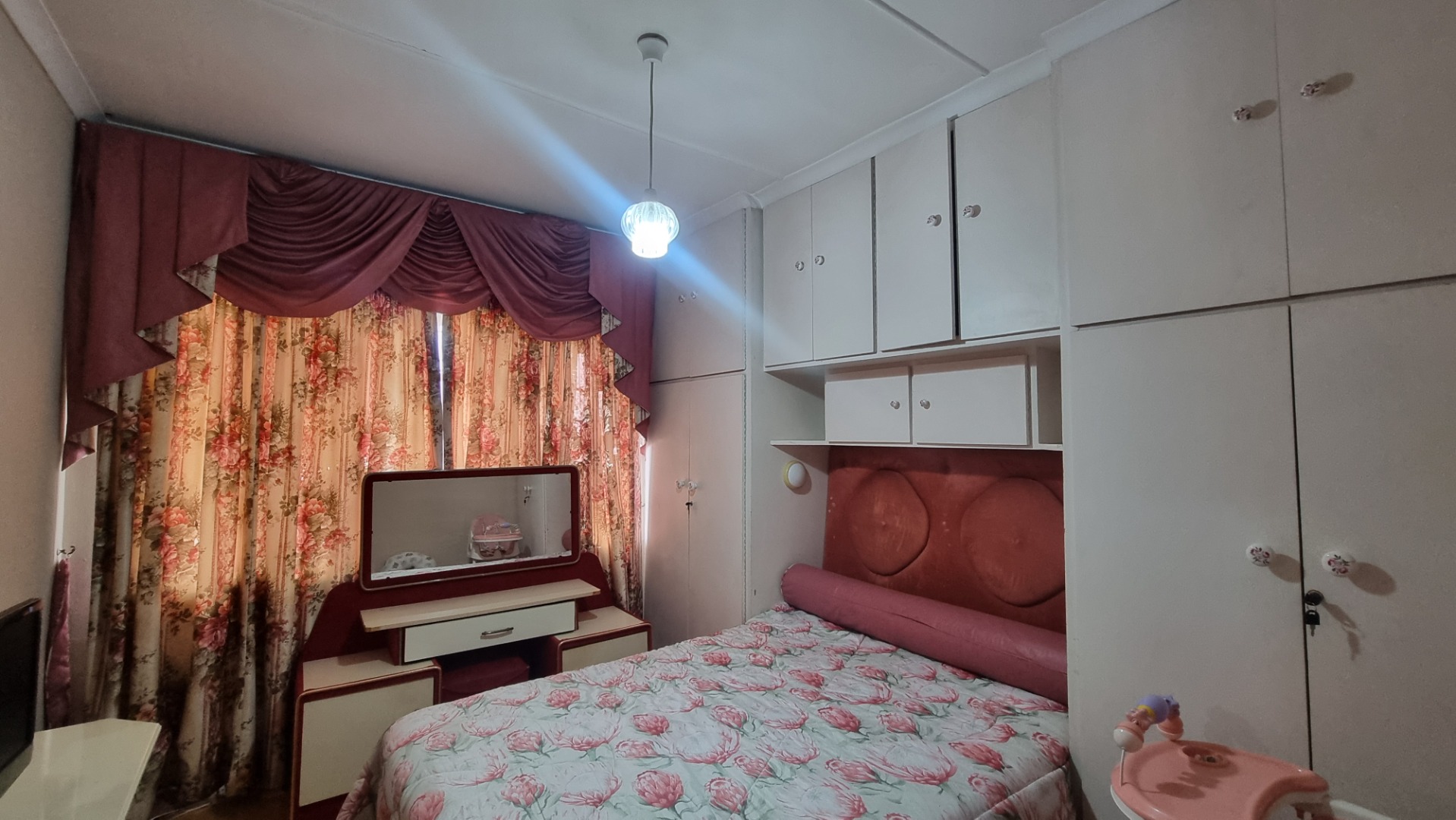 This well-maintained family home offers a fully fitted kitchen with built-in cupboards, oven, hob, extractor, and a separate scullery. It features three bedrooms with built-in cupboards, including a main en-suite. The main bedroom is air-conditioned for added comfort, and there is also a modern family bathroom.