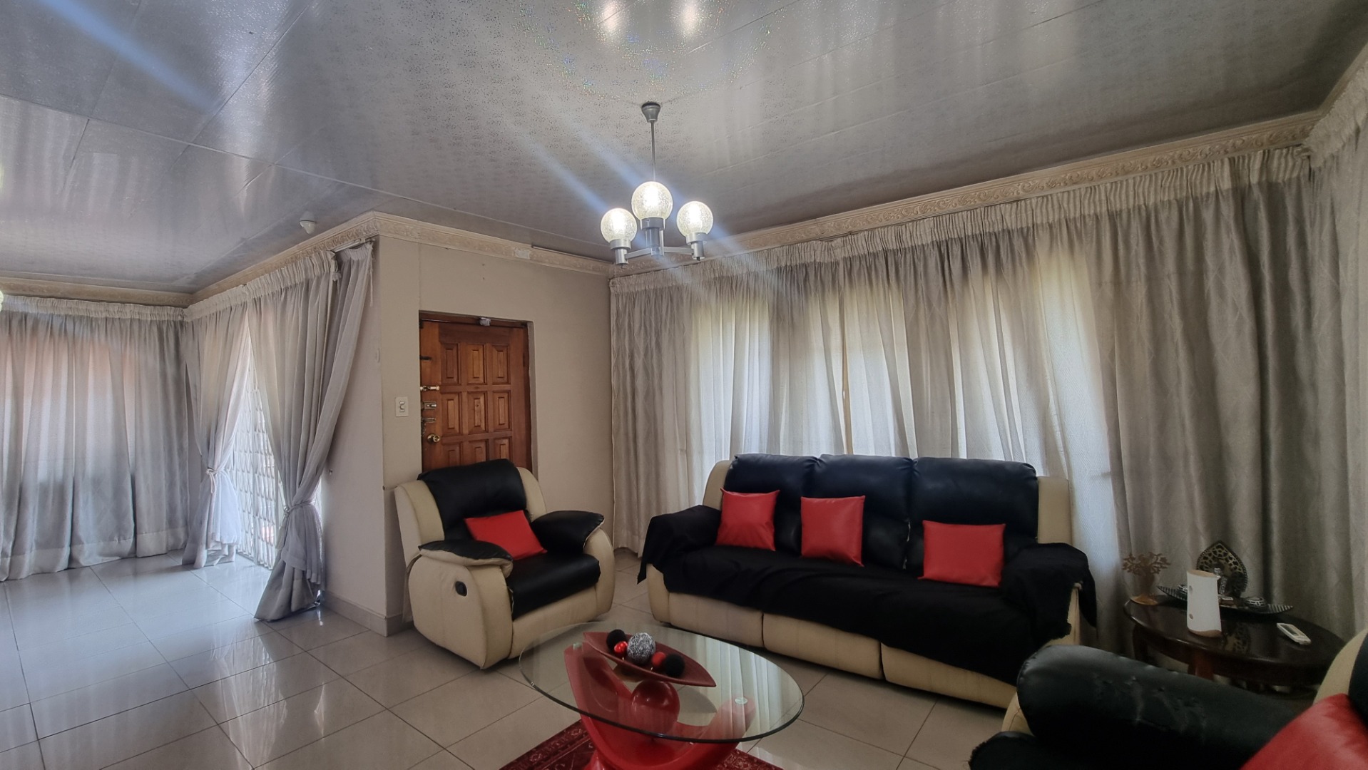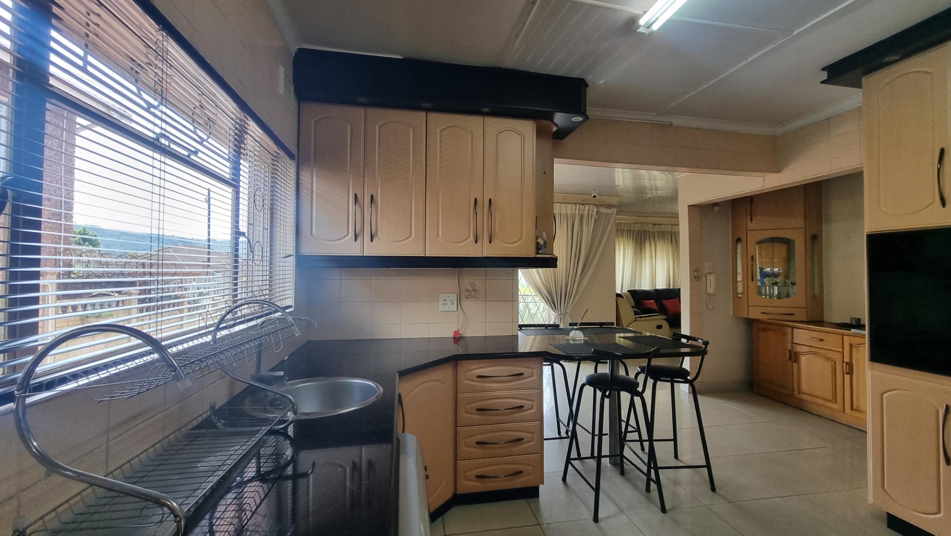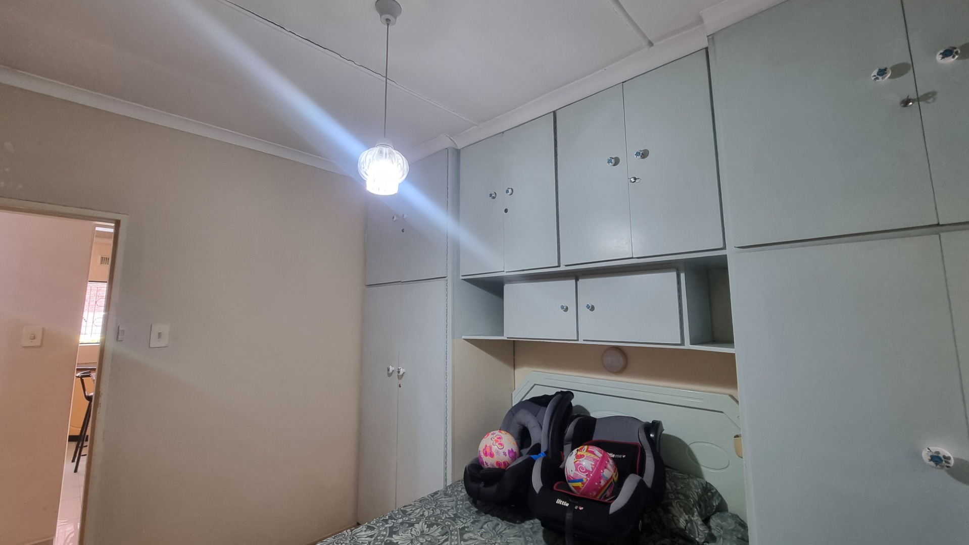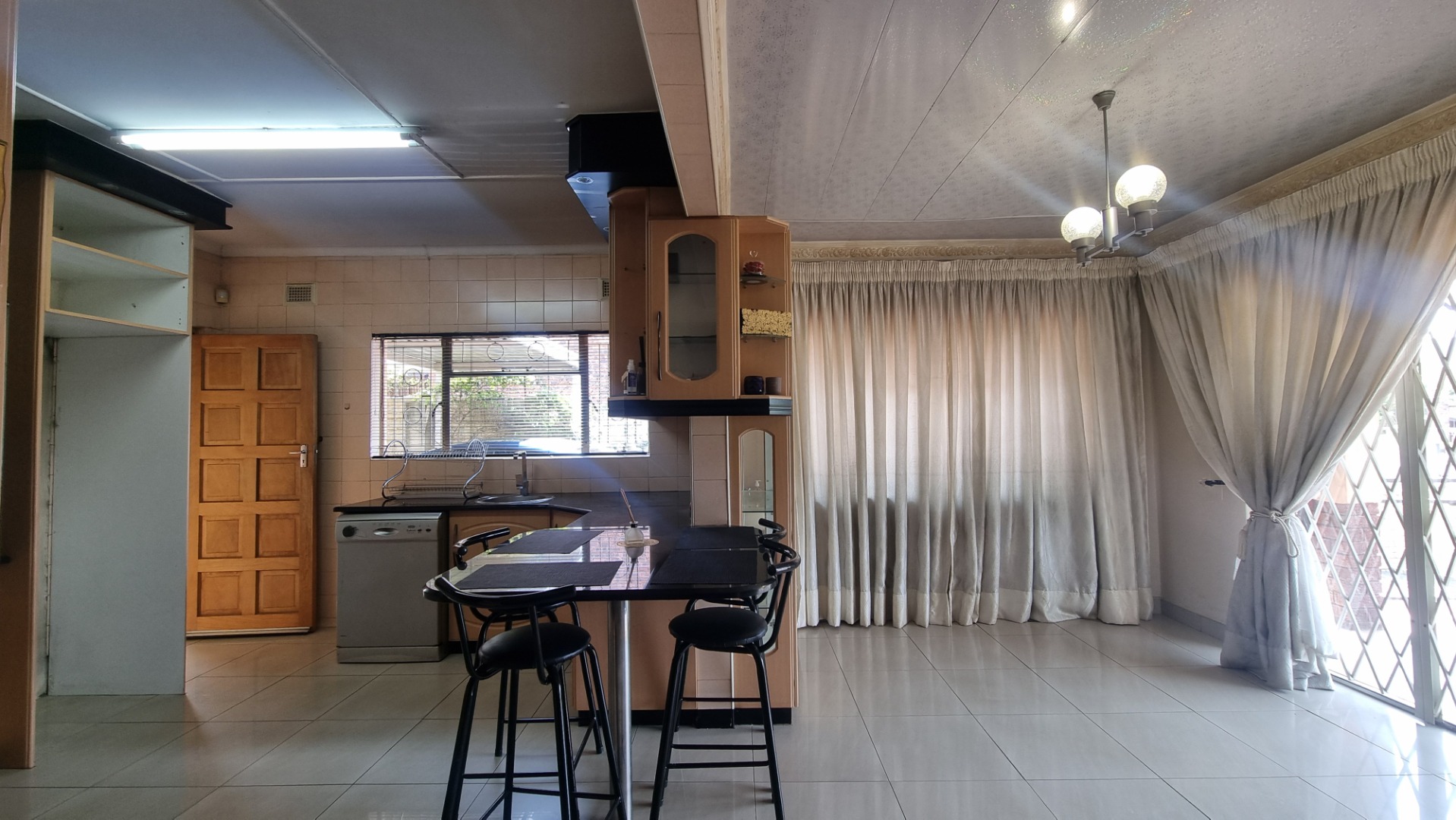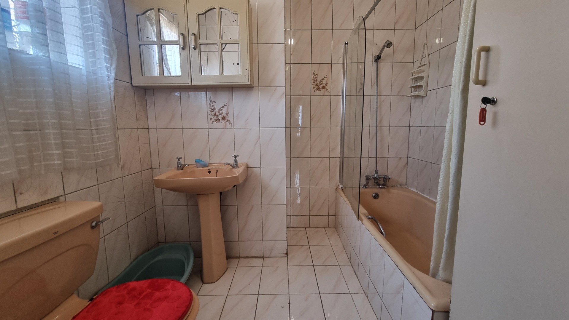 This well-maintained family home offers a fully fitted kitchen with built-in cupboards, oven, hob, extractor, and a separate scullery. It features three bedrooms with built-in cupboards, including a main en-suite. The main bedroom is air-conditioned for added comfort, and there is also a modern family bathroom.