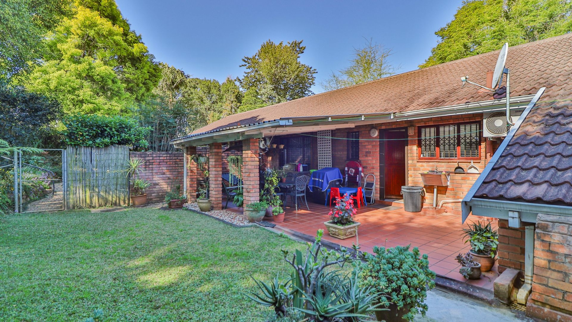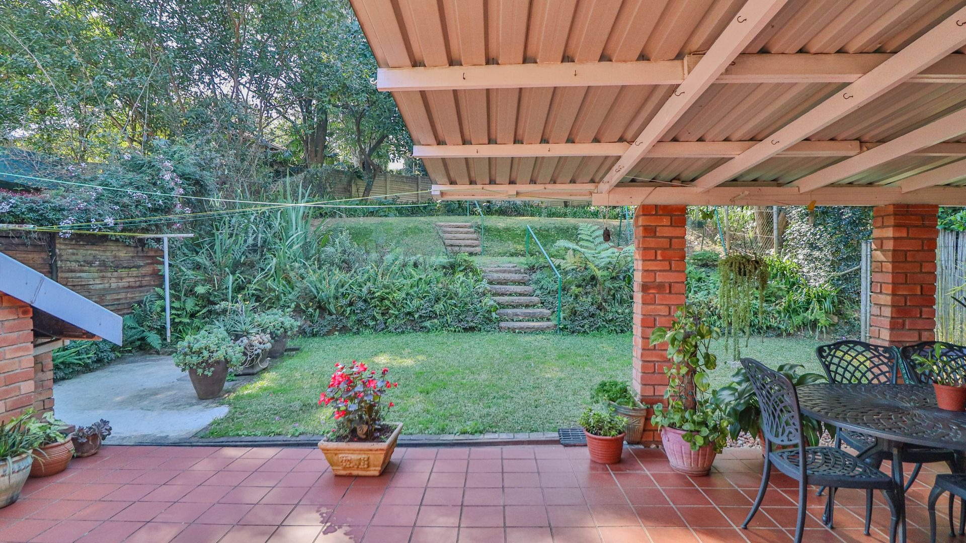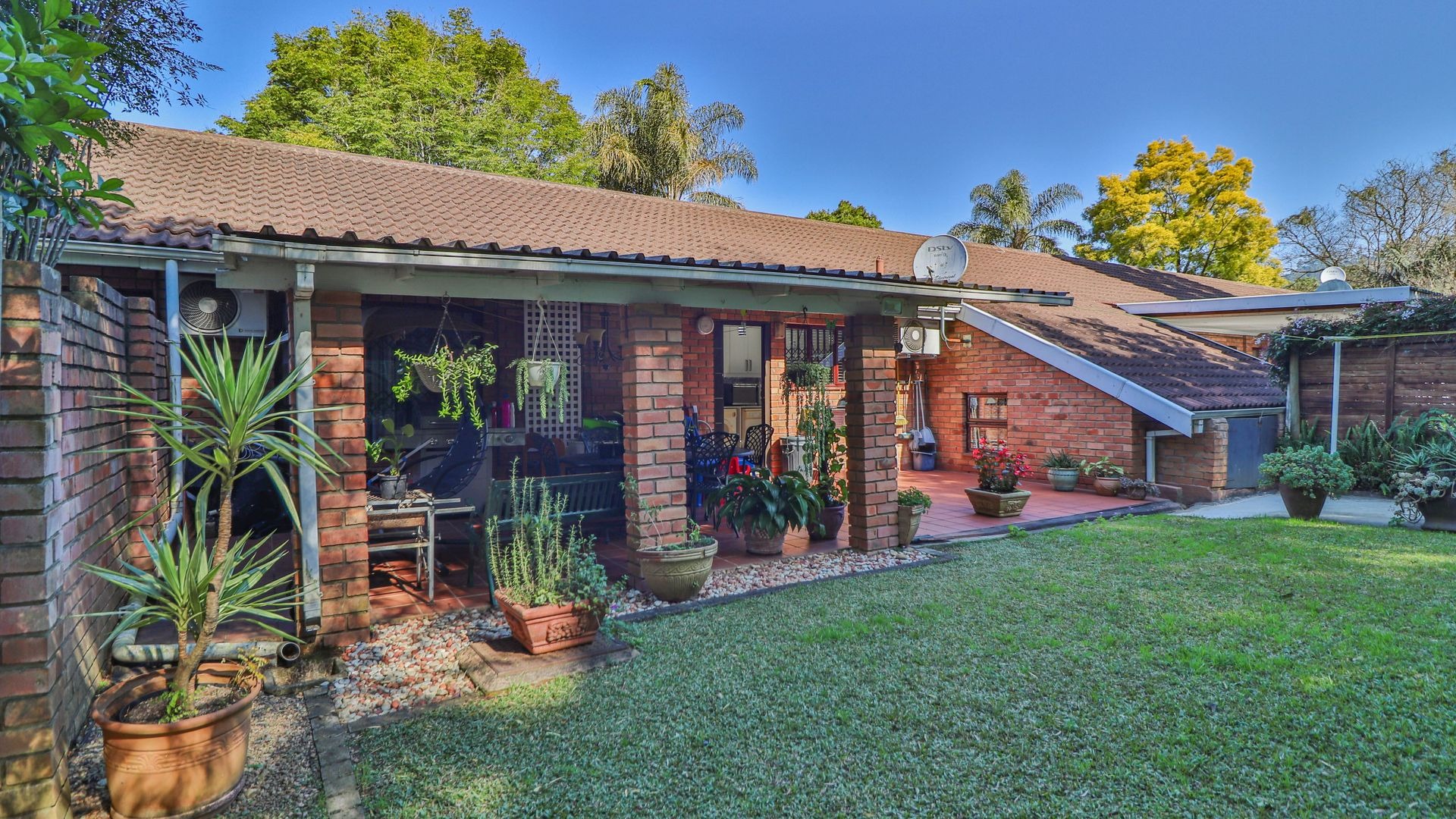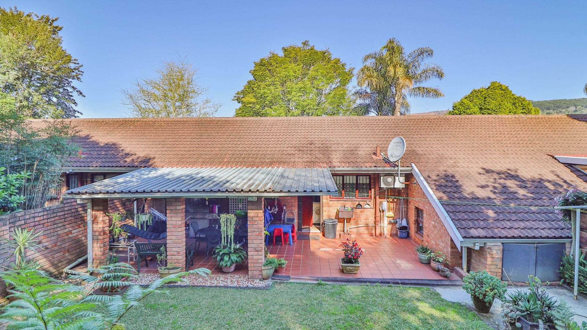 Step outside to your private oasis! The property features a generous tiled patio, partially covered, which is just perfect for outdoor entertaining or simply enjoying a quiet cup of coffee. This leads to a lovely grassy garden, offering a peaceful retreat. Parking is a breeze with two garages and an additional parking space. Plus, for your peace of mind, the home comes with burglar bars.