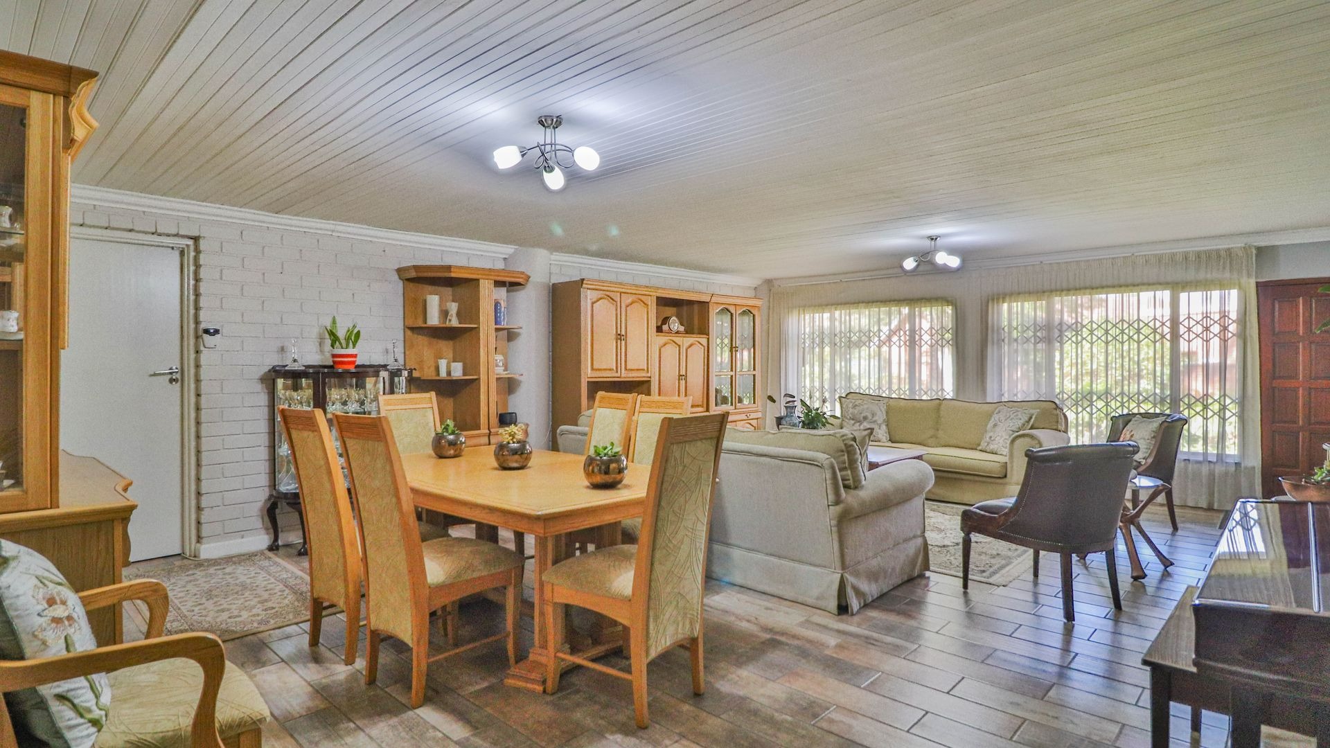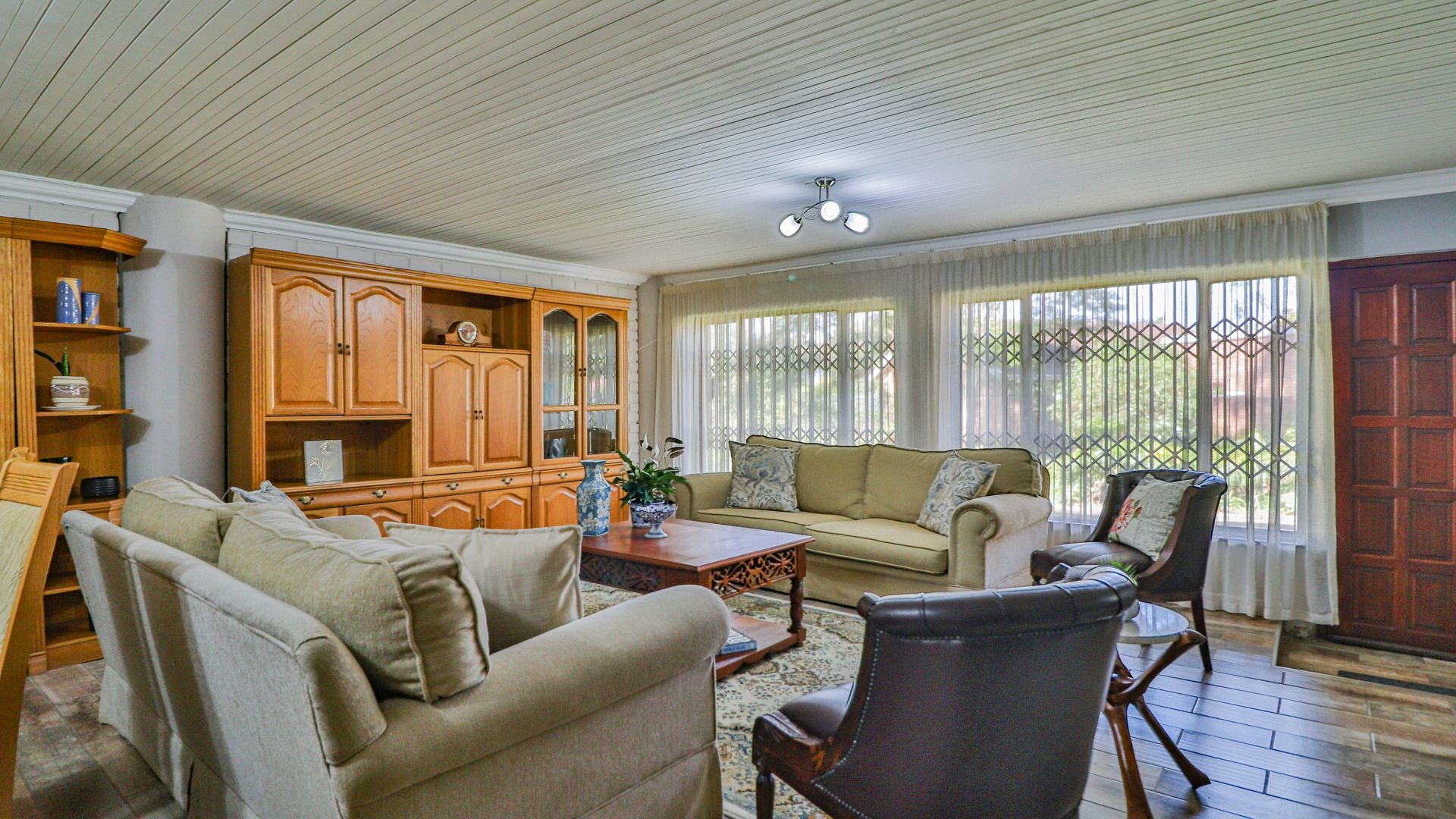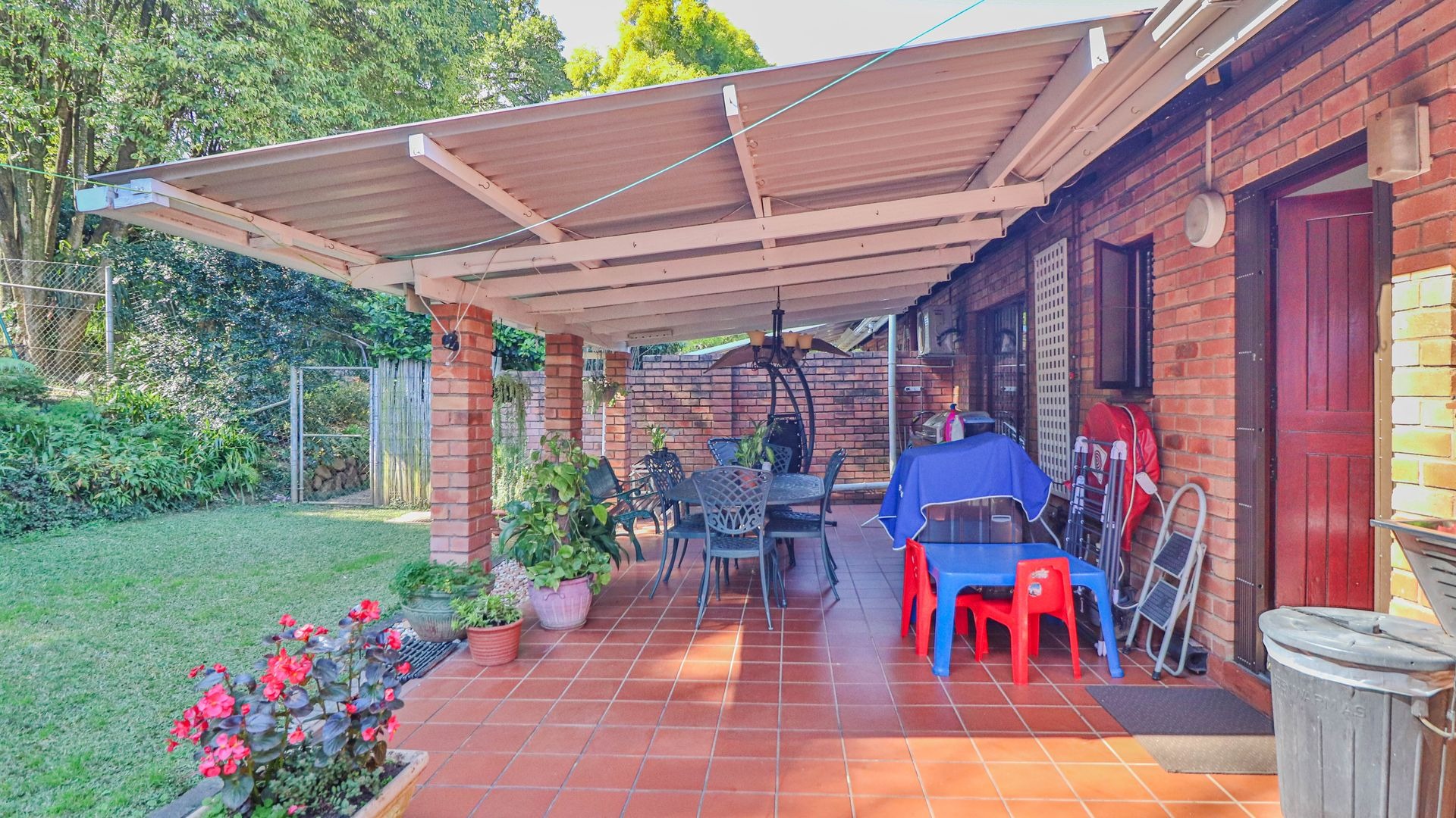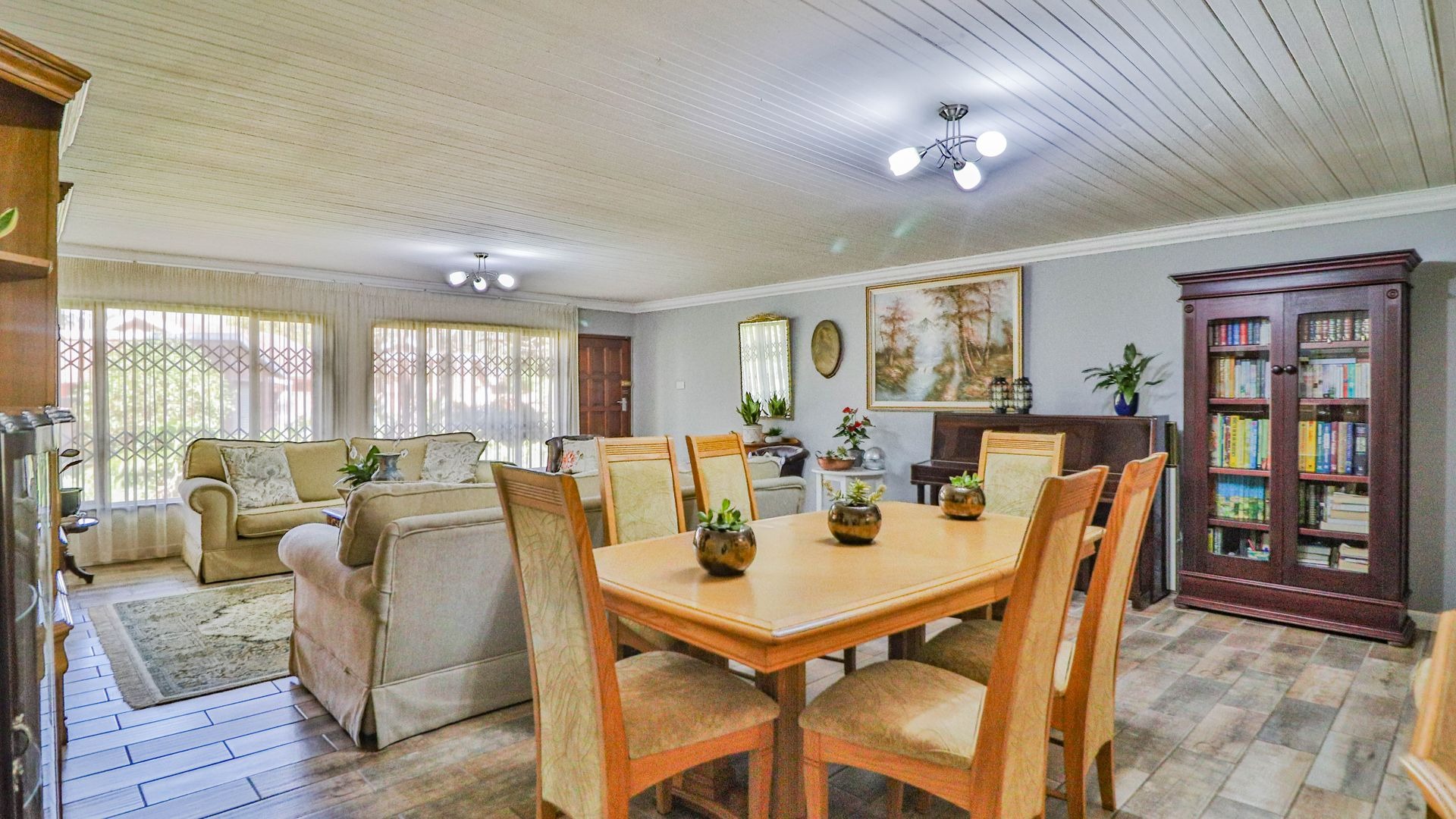 Step outside to your private oasis! The property features a generous tiled patio, partially covered, which is just perfect for outdoor entertaining or simply enjoying a quiet cup of coffee. This leads to a lovely grassy garden, offering a peaceful retreat. Parking is a breeze with two garages and an additional parking space. Plus, for your peace of mind, the home comes with burglar bars.