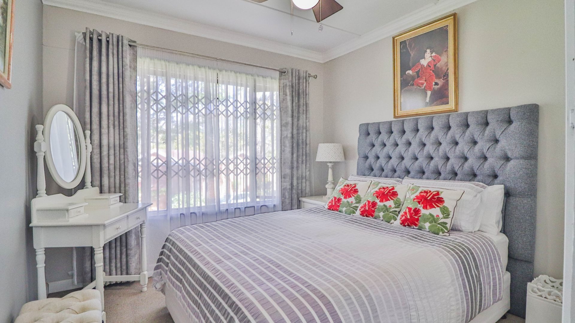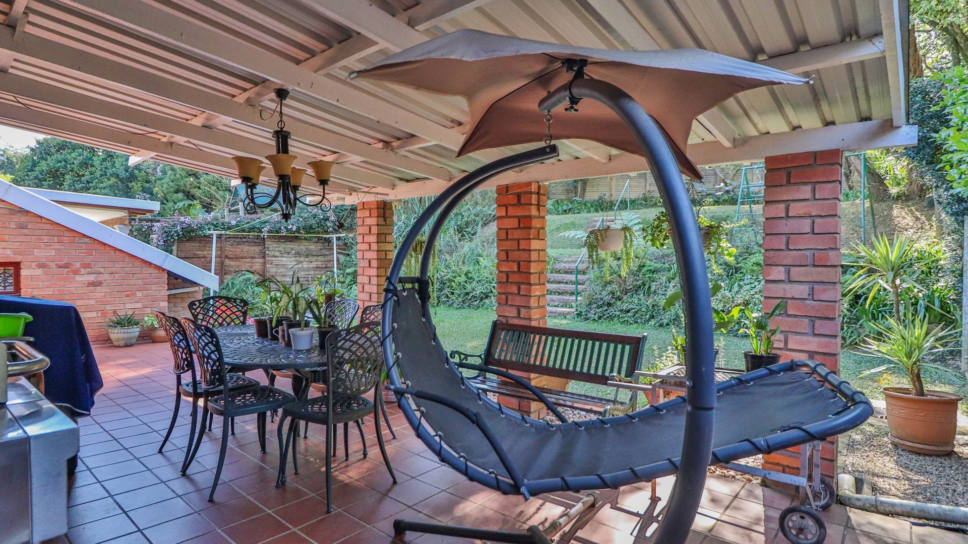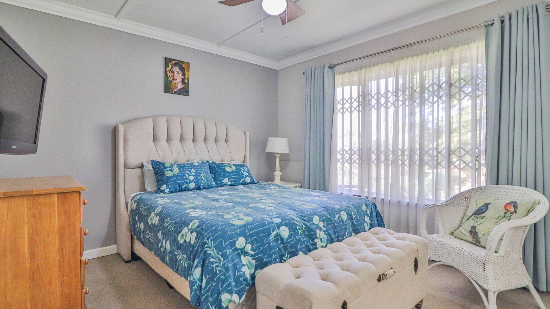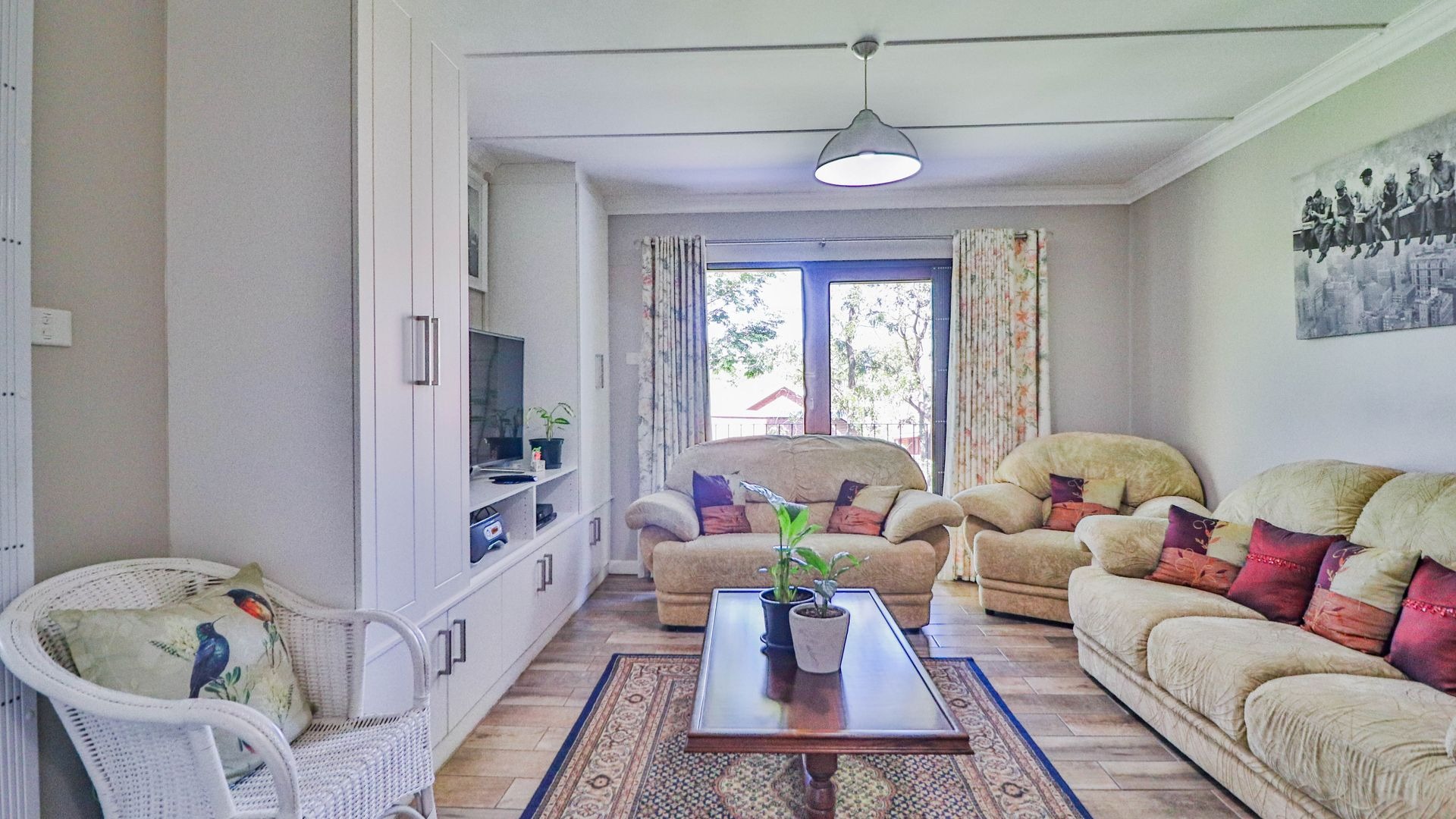 Step outside to your private oasis! The property features a generous tiled patio, partially covered, which is just perfect for outdoor entertaining or simply enjoying a quiet cup of coffee. This leads to a lovely grassy garden, offering a peaceful retreat. Parking is a breeze with two garages and an additional parking space. Plus, for your peace of mind, the home comes with burglar bars.