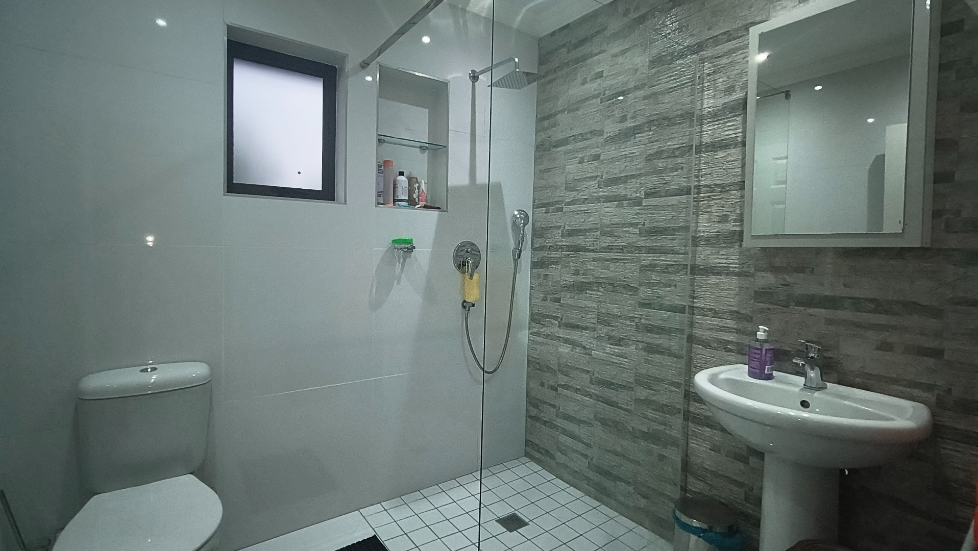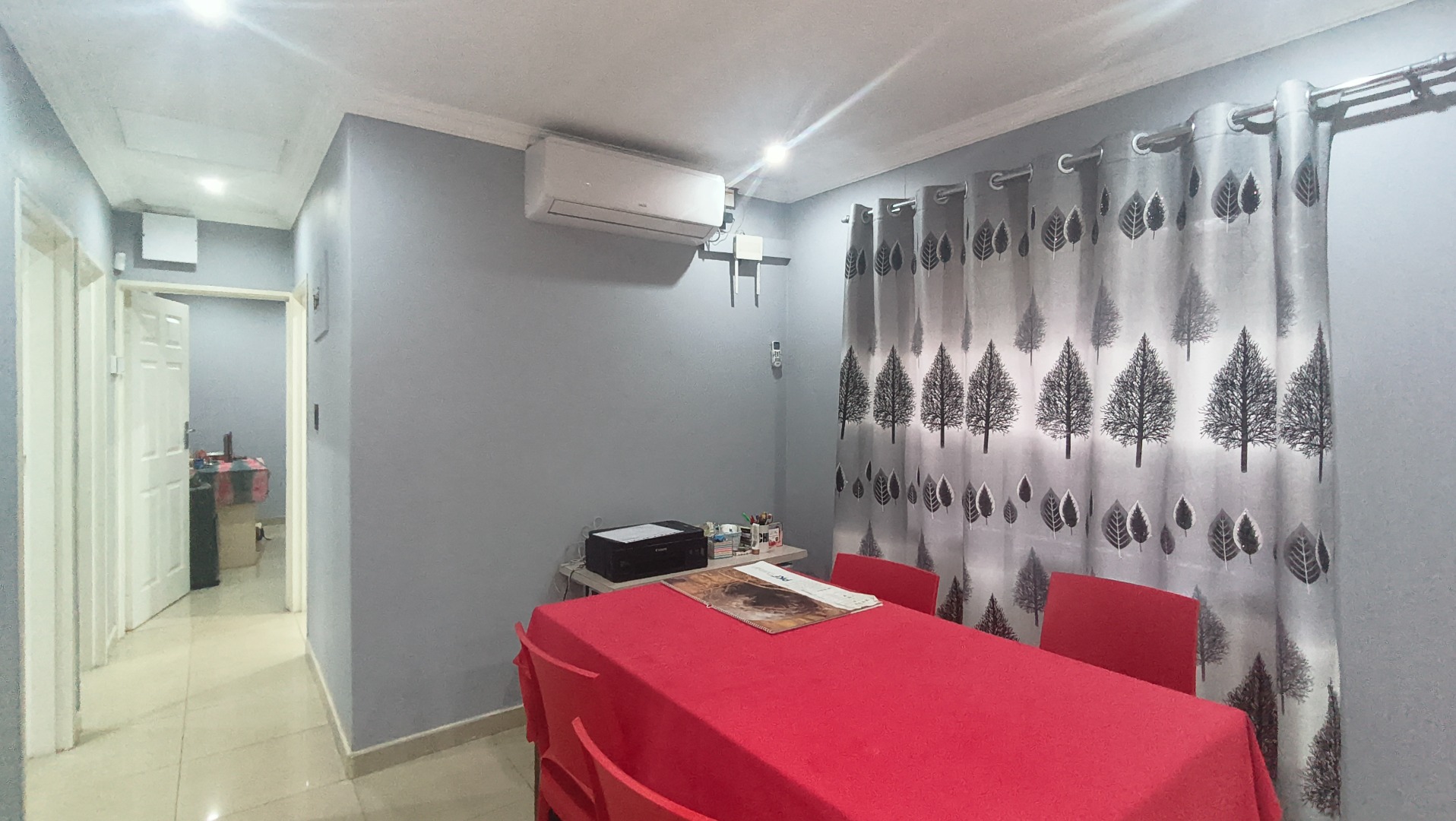The spacious lounge and dining room offer versatile living areas, followed by three bedrooms and two bathrooms ,perfect for both relaxation and entertaining. Recessed lighting and tiled flooring throughout contribute to a contemporary and easy-to-maintain environment.