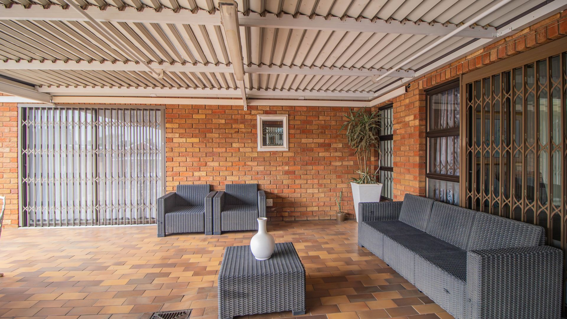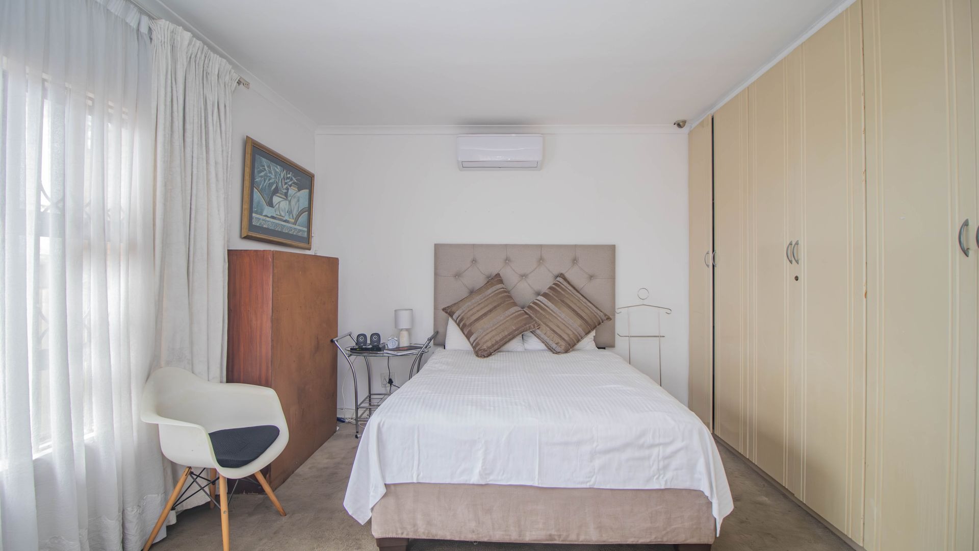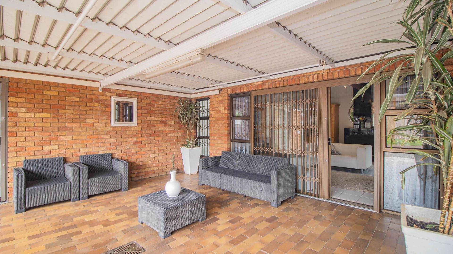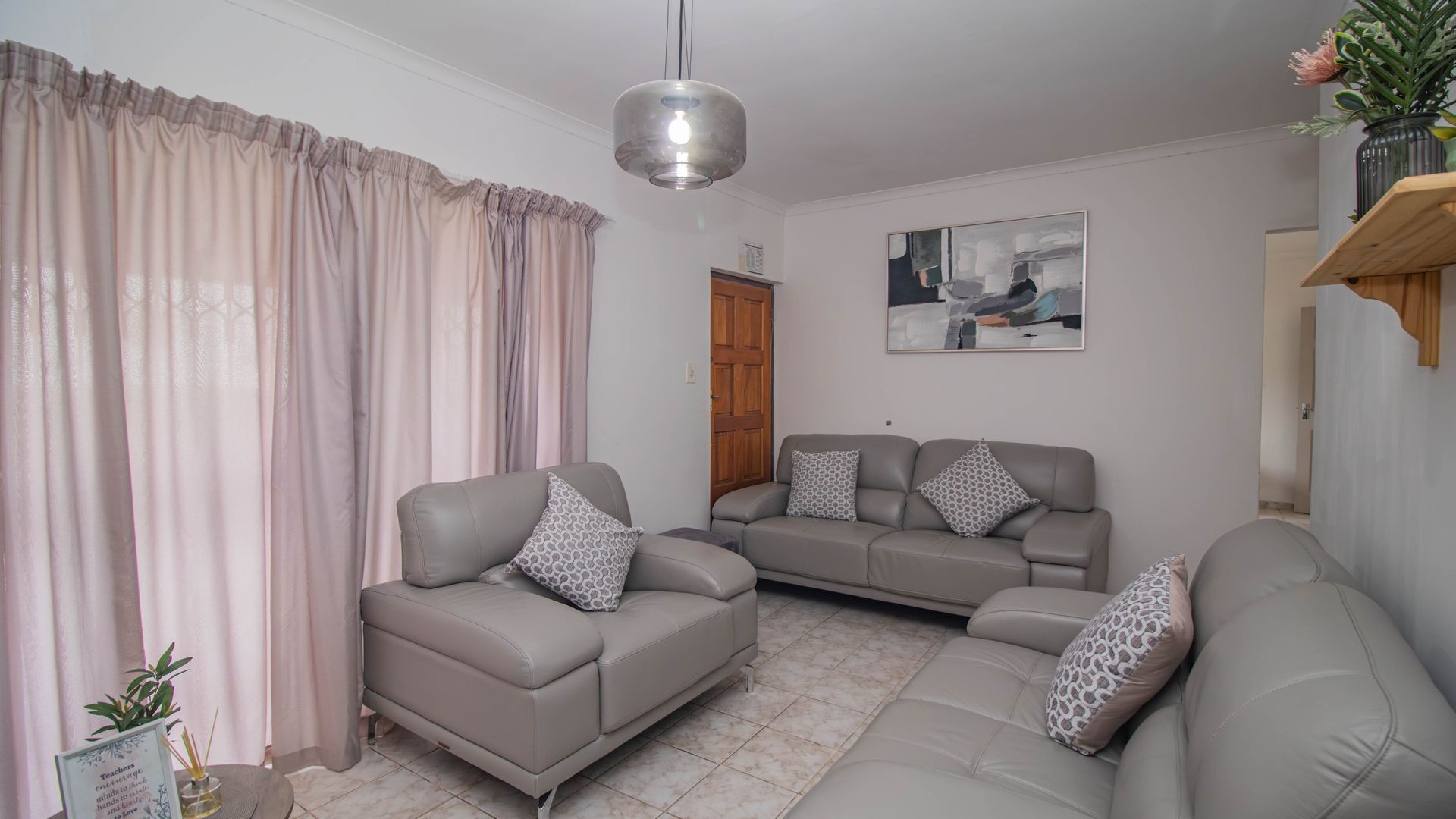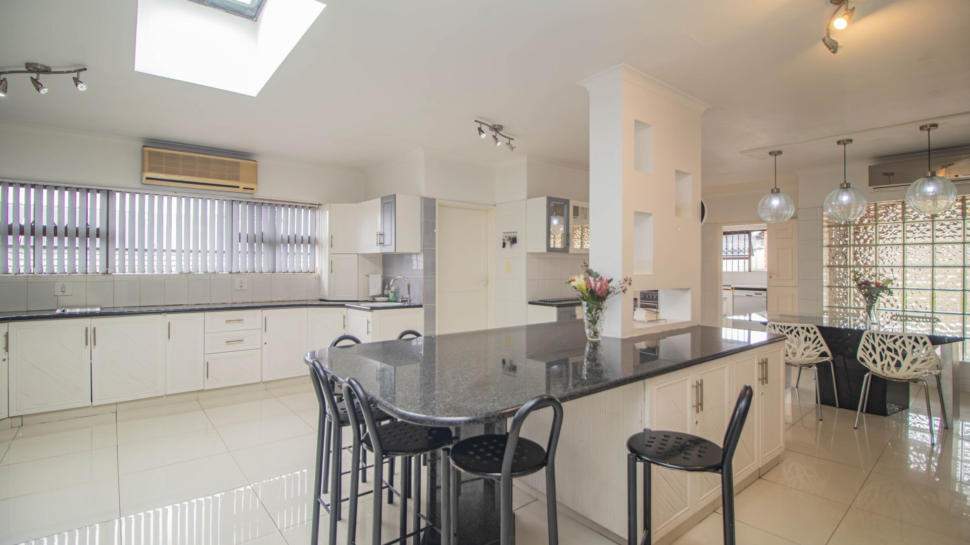 The double-storey facebrick Main Front House features a wrap-around Balcony, Double Garage, Double Carport, and space for 20 vehicles. Inside, there's a large basement room with an en-suite, luxurious living spaces, Indoor Zen Garden, TV Lounge with fireplace, and a gourmet Kitchen with granite tops. The Main House boasts 5 bedrooms (3 en-suite) and a guest loo.