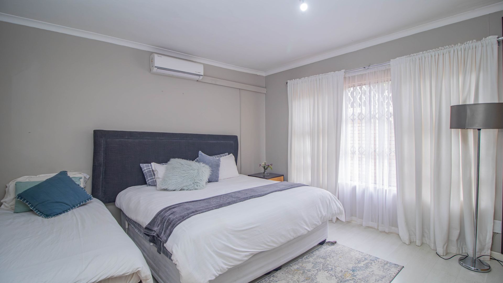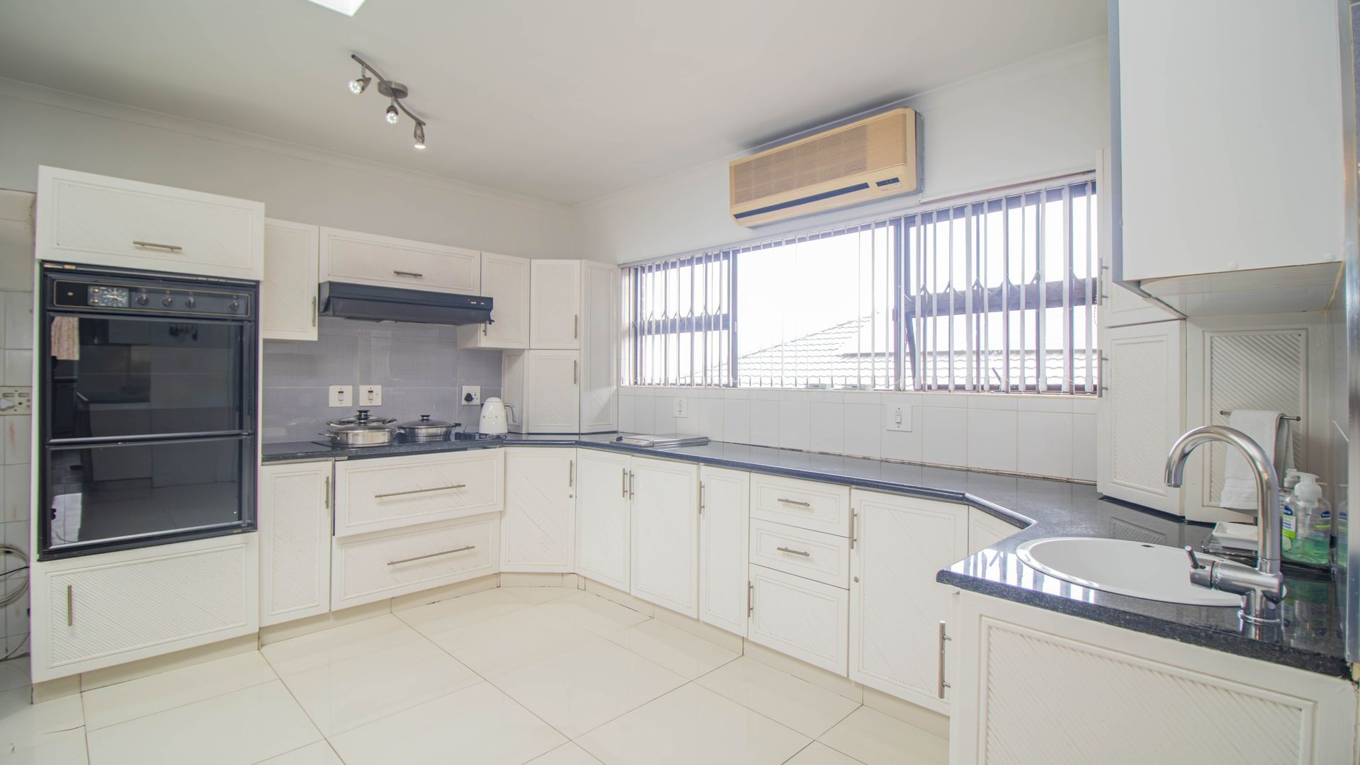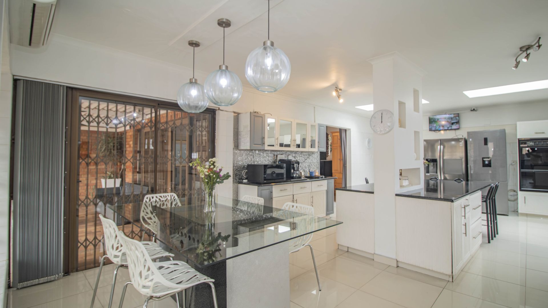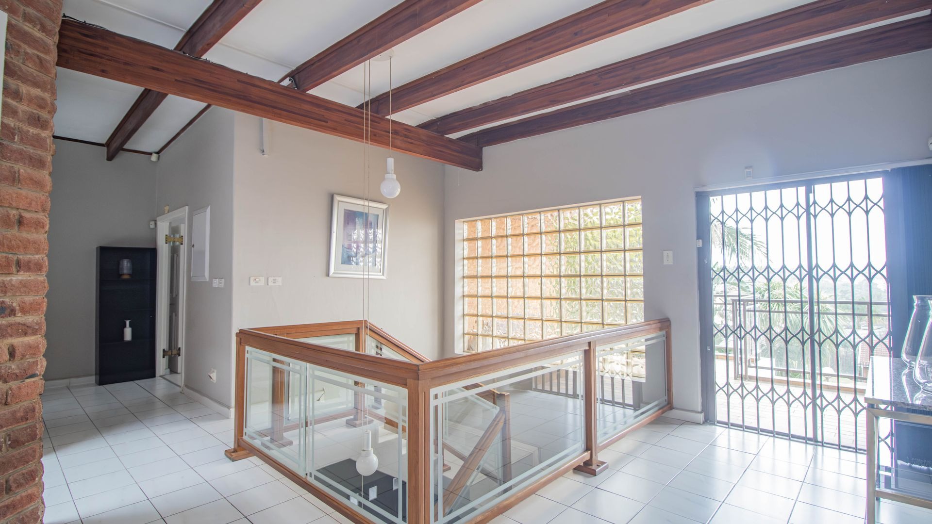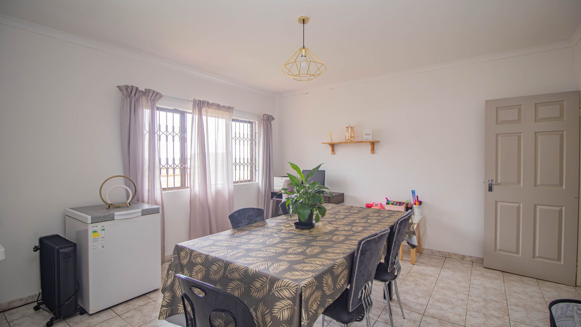 The double-storey facebrick Main Front House features a wrap-around Balcony, Double Garage, Double Carport, and space for 20 vehicles. Inside, there's a large basement room with an en-suite, luxurious living spaces, Indoor Zen Garden, TV Lounge with fireplace, and a gourmet Kitchen with granite tops. The Main House boasts 5 bedrooms (3 en-suite) and a guest loo.
