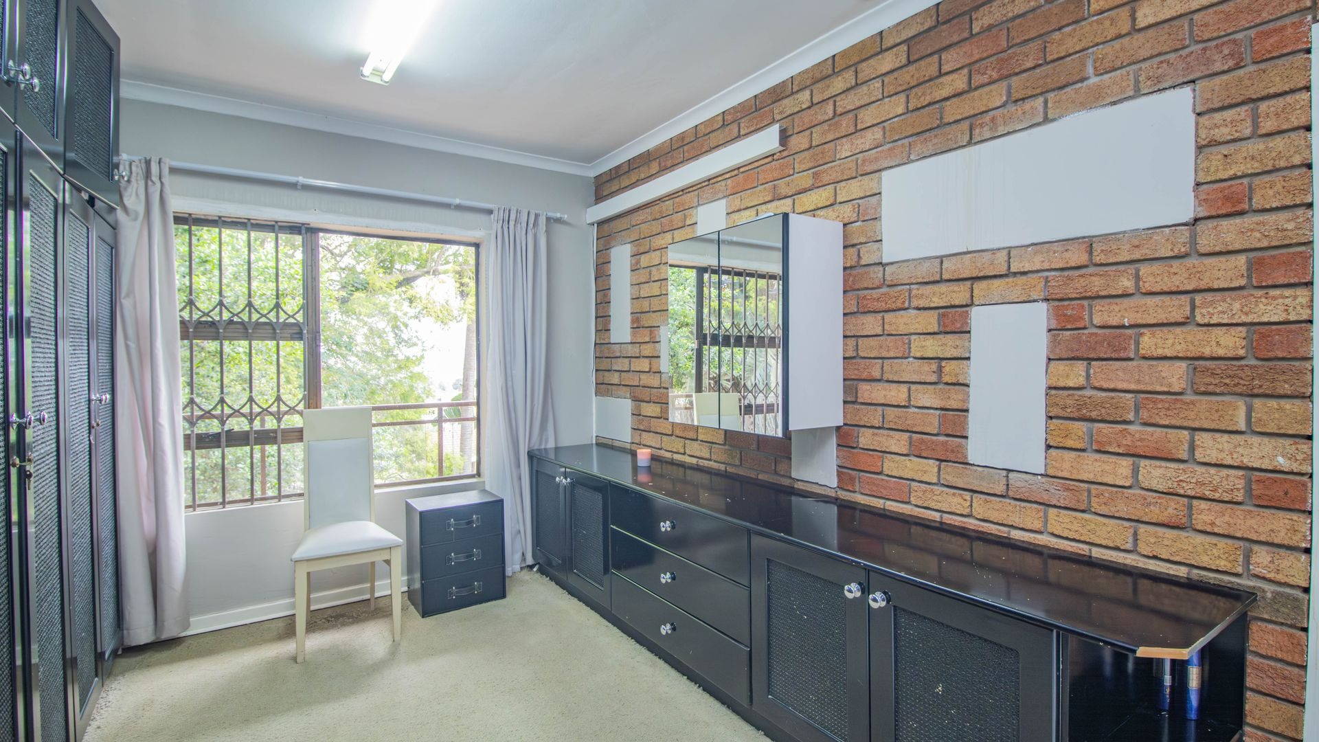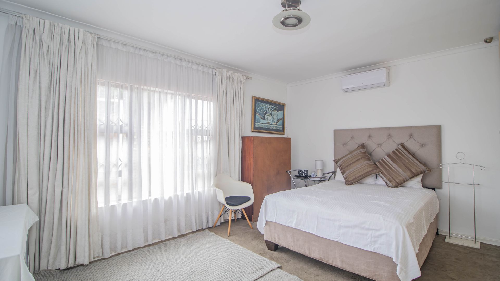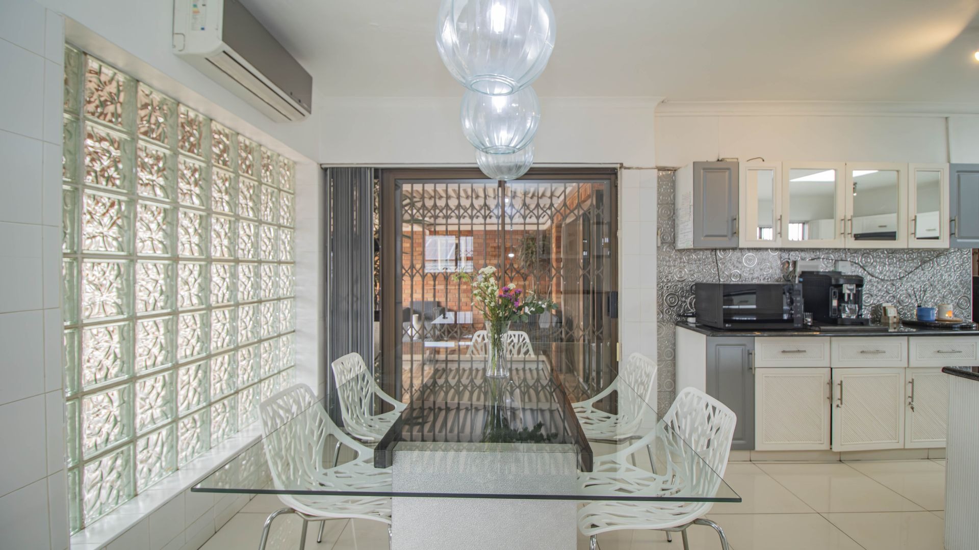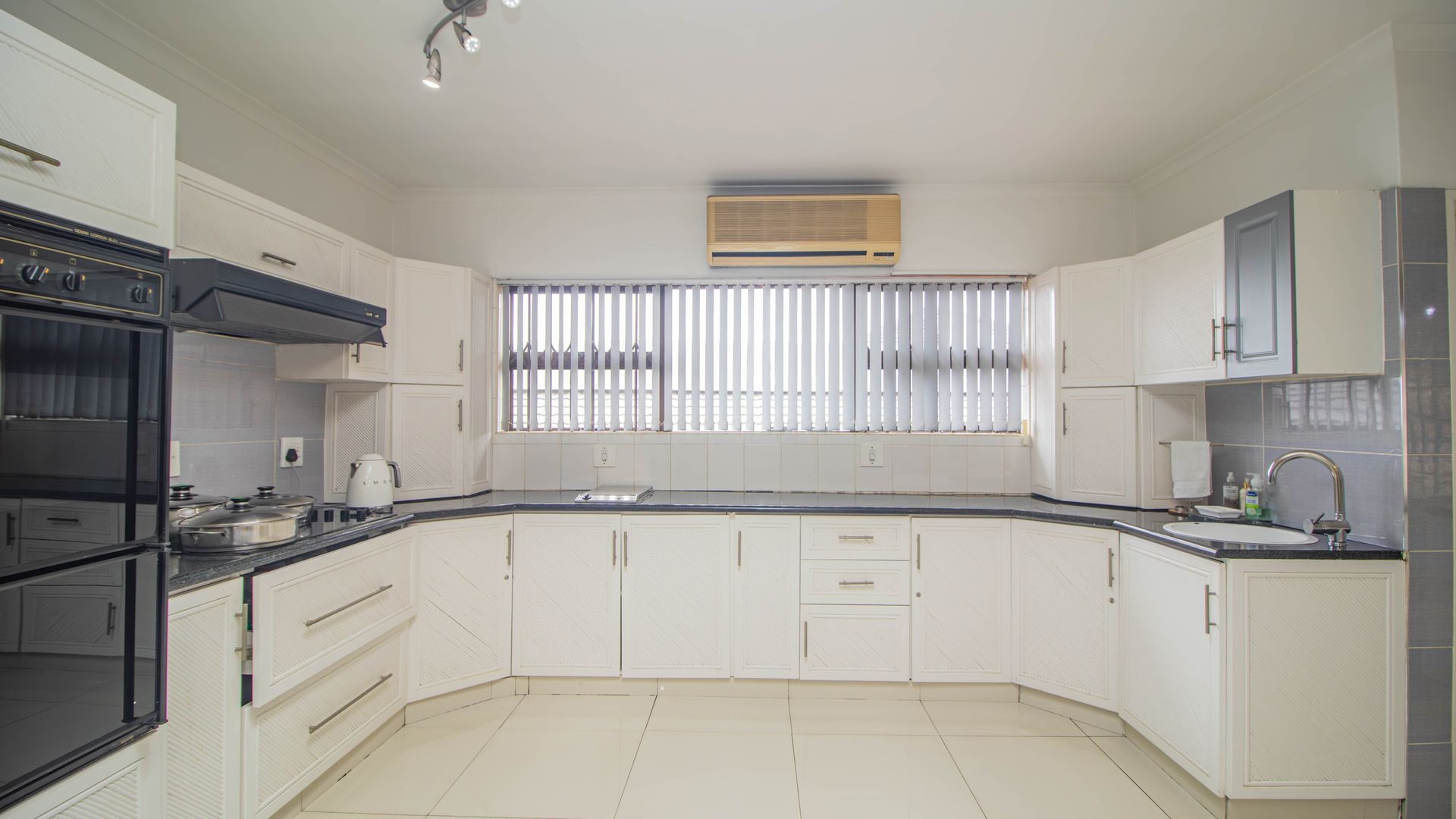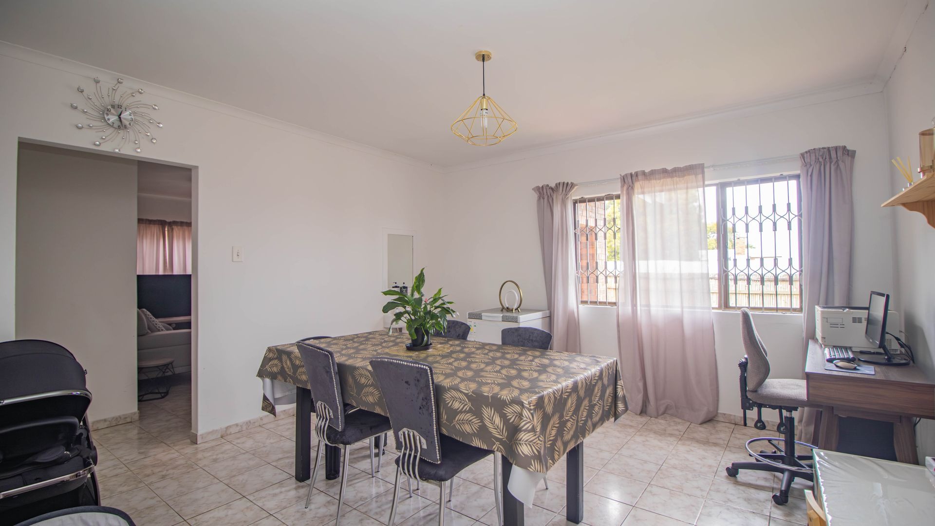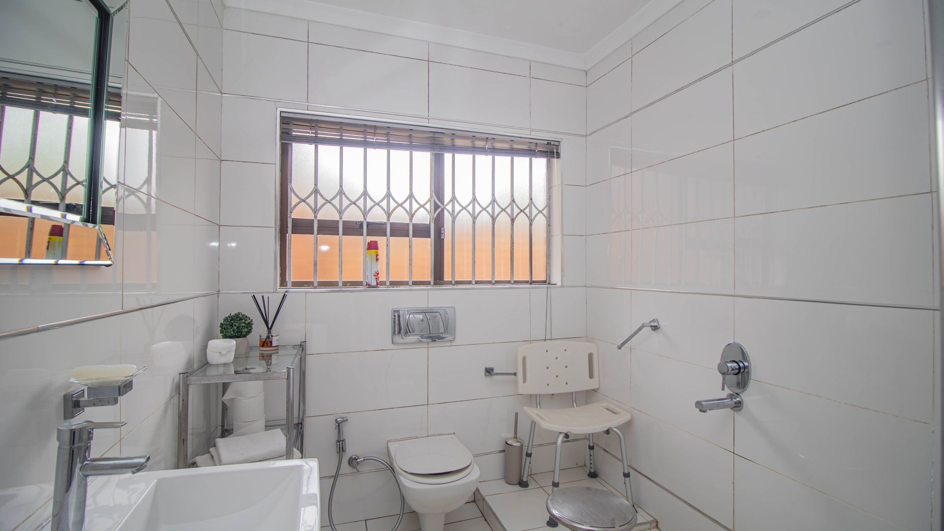 The double-storey facebrick Main Front House features a wrap-around Balcony, Double Garage, Double Carport, and space for 20 vehicles. Inside, there's a large basement room with an en-suite, luxurious living spaces, Indoor Zen Garden, TV Lounge with fireplace, and a gourmet Kitchen with granite tops. The Main House boasts 5 bedrooms (3 en-suite) and a guest loo.