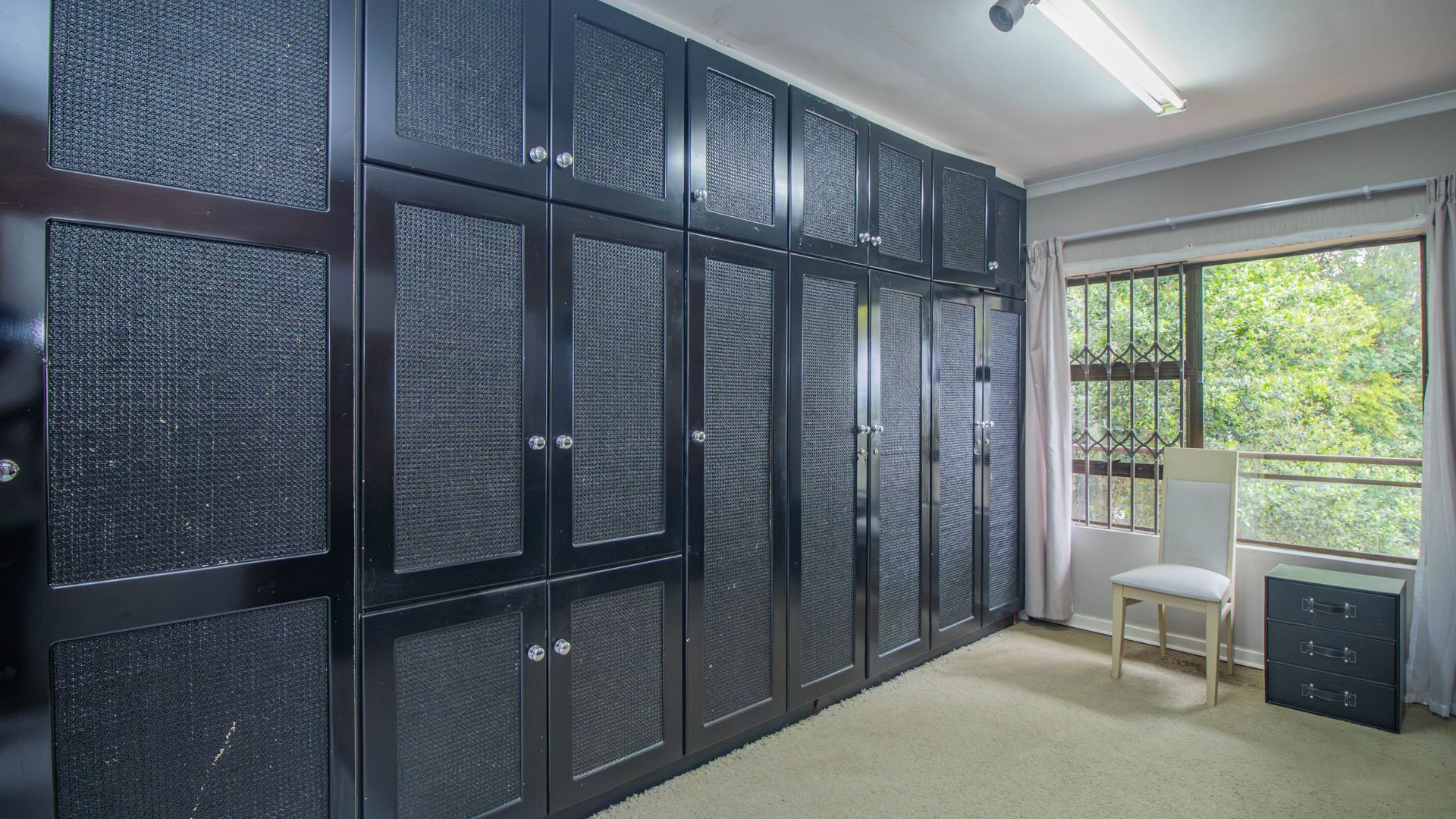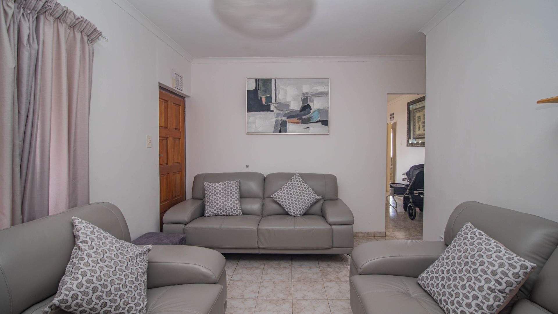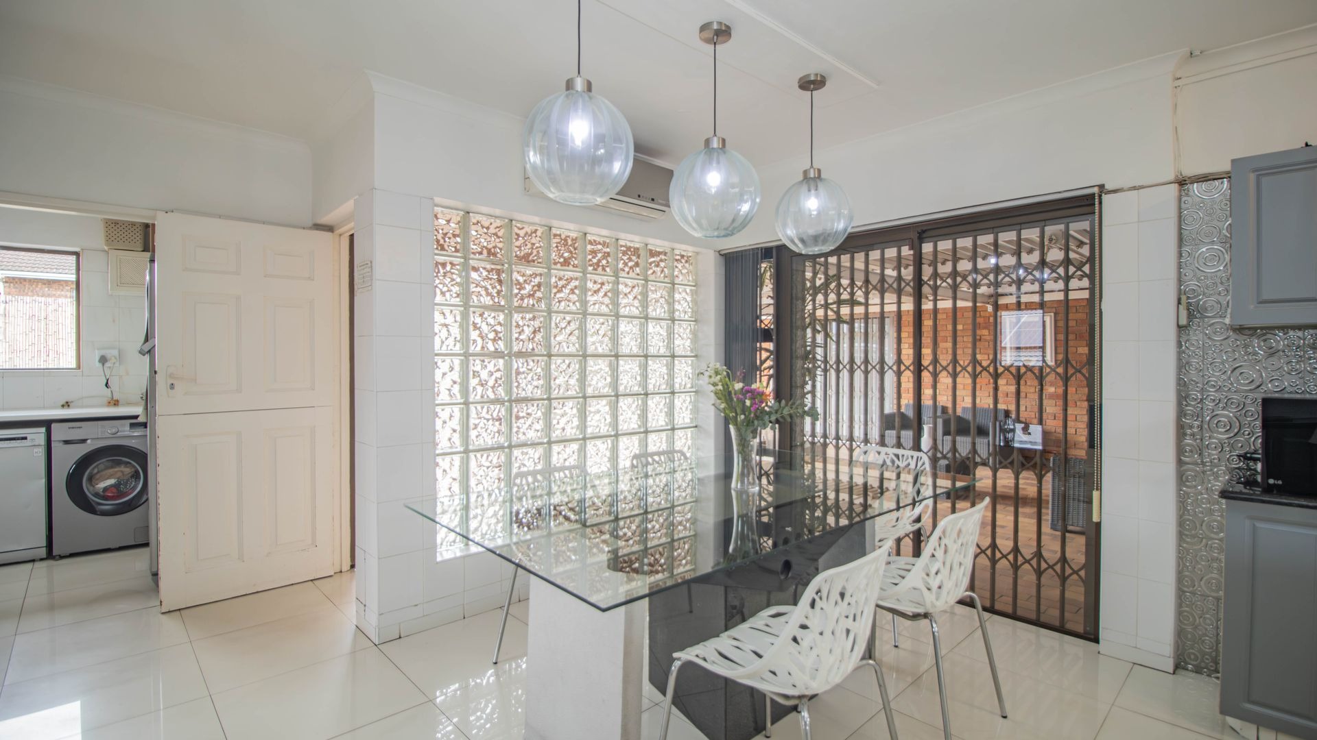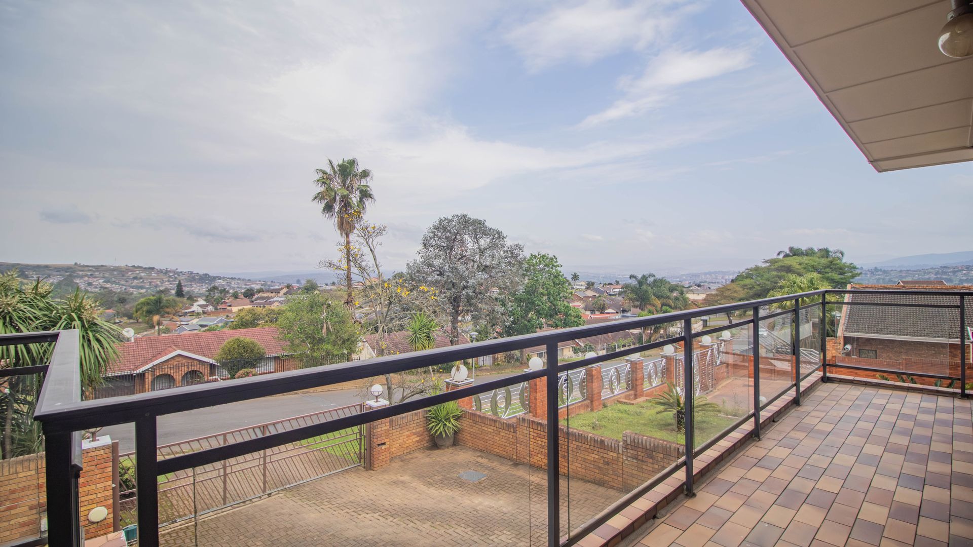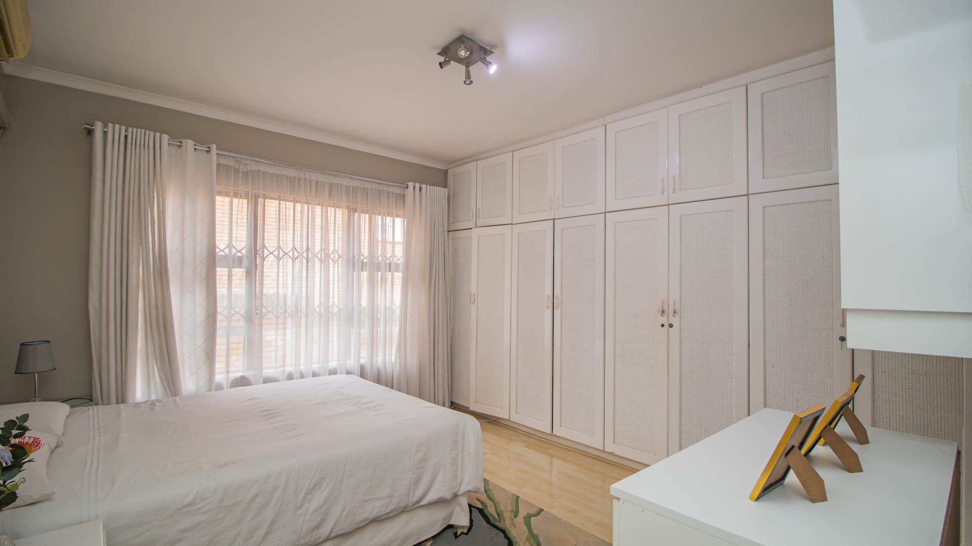 The double-storey facebrick Main Front House features a wrap-around Balcony, Double Garage, Double Carport, and space for 20 vehicles. Inside, there's a large basement room with an en-suite, luxurious living spaces, Indoor Zen Garden, TV Lounge with fireplace, and a gourmet Kitchen with granite tops. The Main House boasts 5 bedrooms (3 en-suite) and a guest loo.