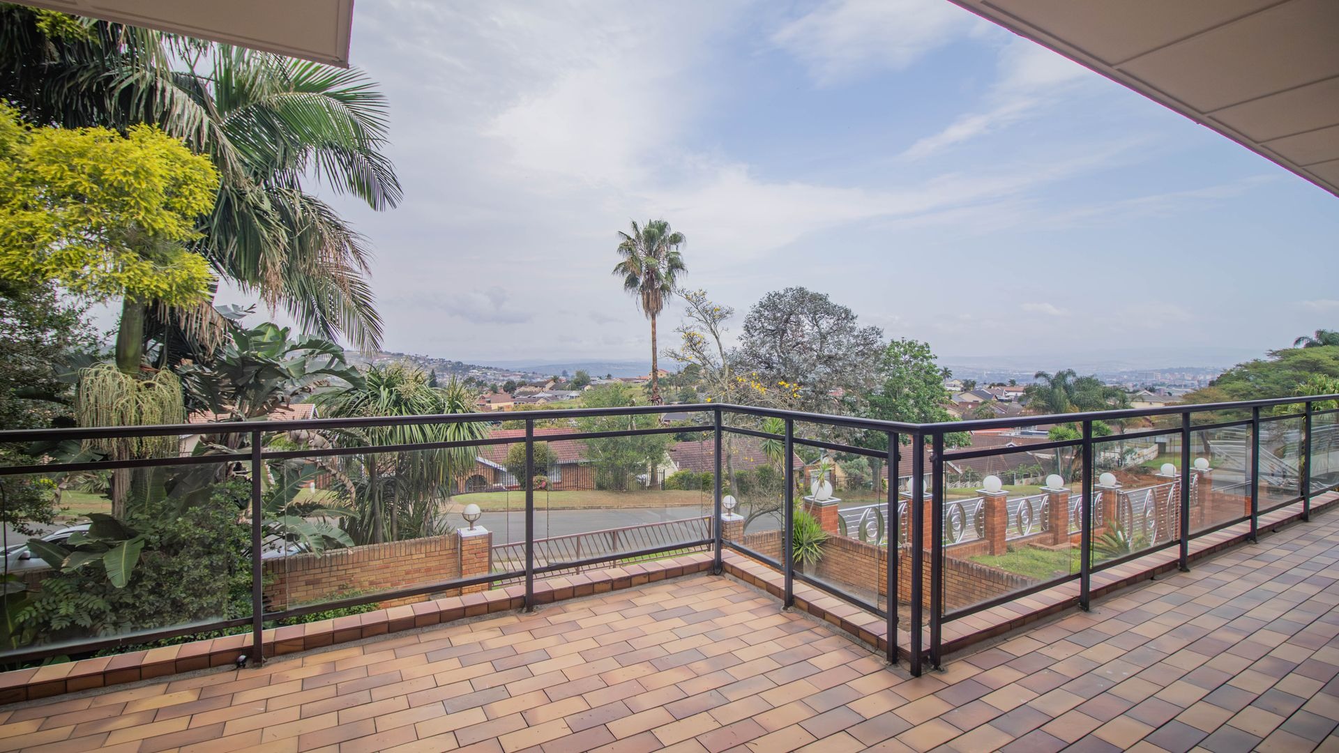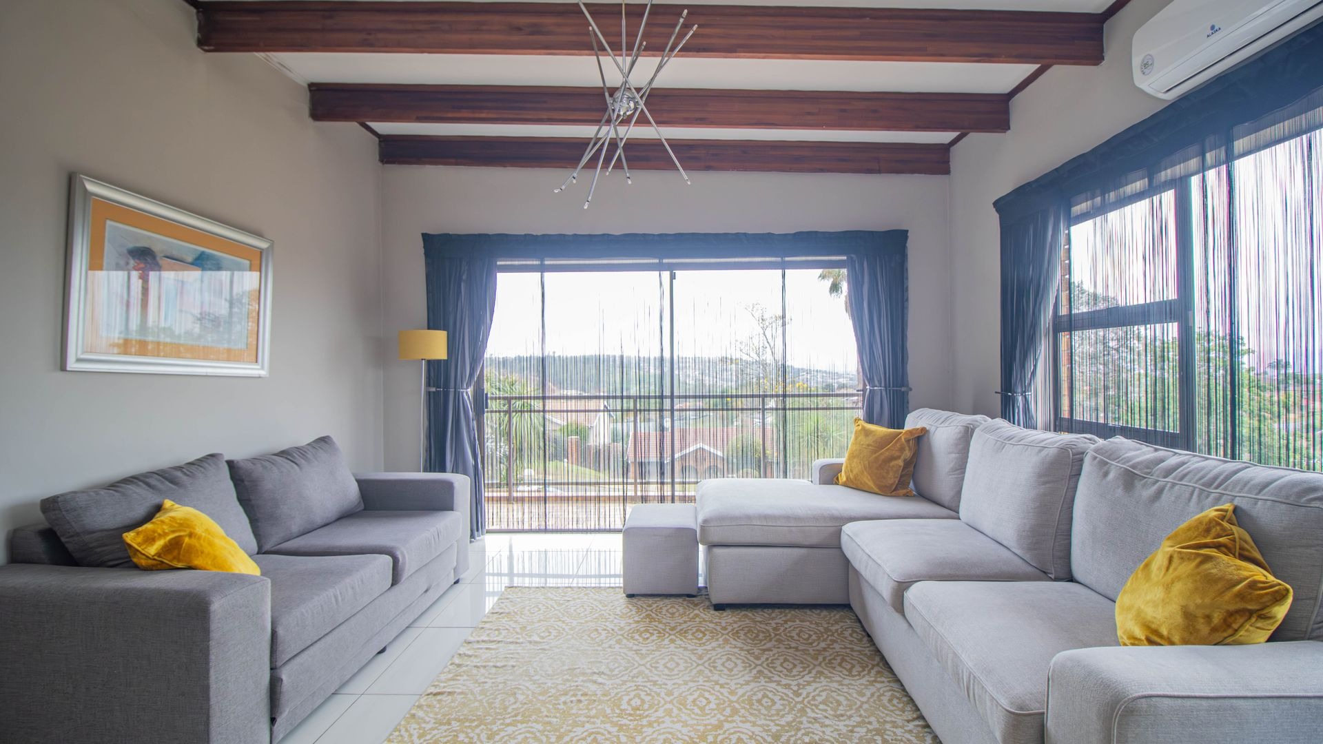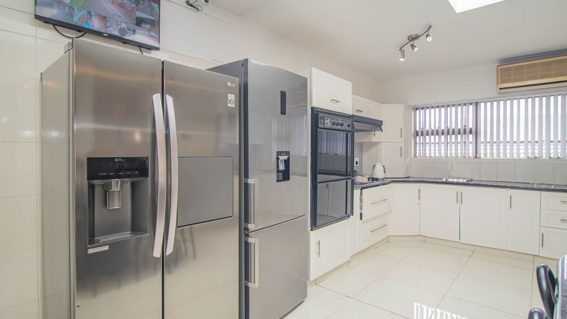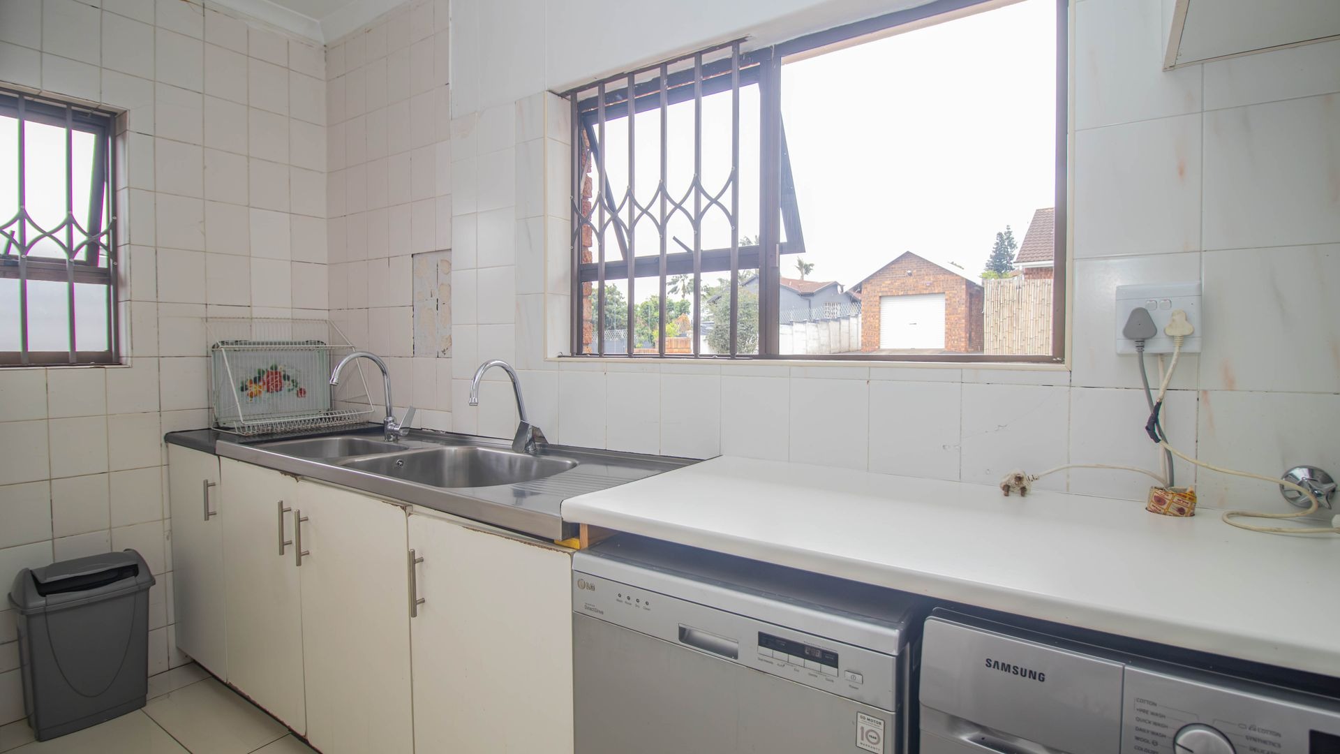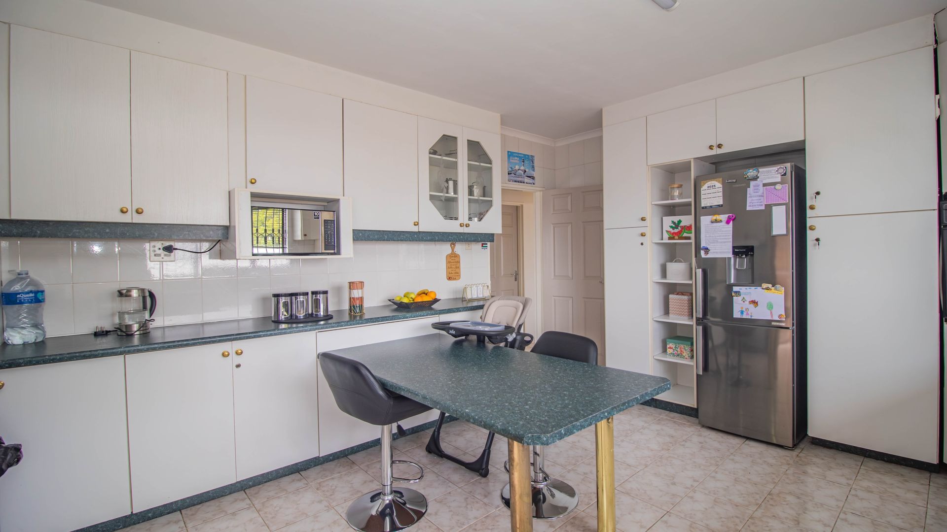 The double-storey facebrick Main Front House features a wrap-around Balcony, Double Garage, Double Carport, and space for 20 vehicles. Inside, there's a large basement room with an en-suite, luxurious living spaces, Indoor Zen Garden, TV Lounge with fireplace, and a gourmet Kitchen with granite tops. The Main House boasts 5 bedrooms (3 en-suite) and a guest loo.