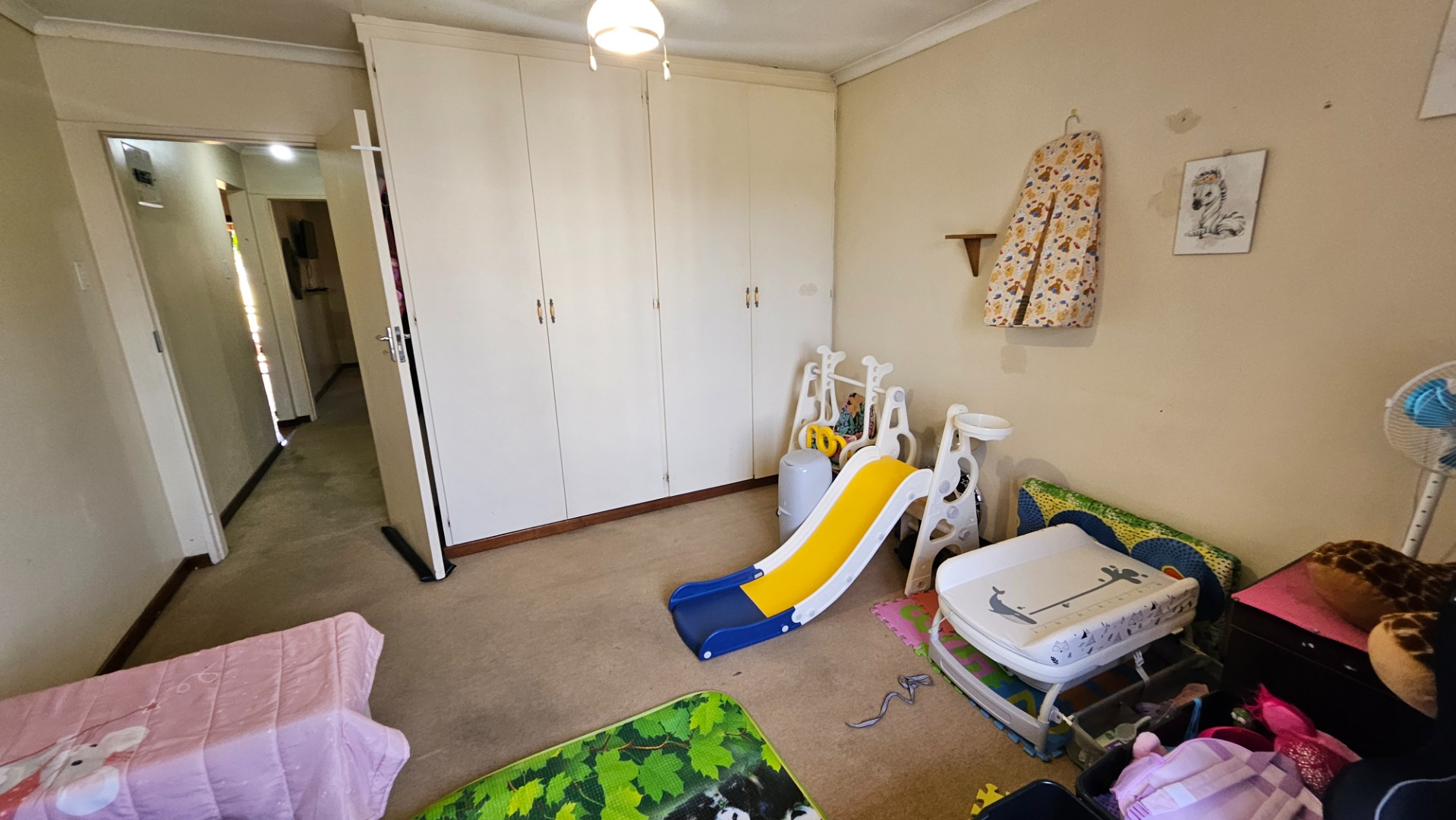 Both bedrooms are fitted with built-in cupboards, and the apartment includes a bathroom with a separate toilet for added convenience.