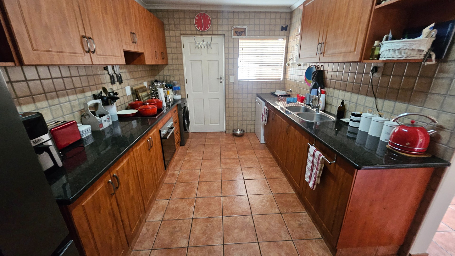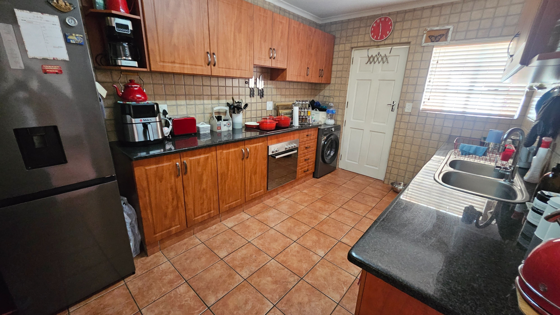 The kitchen is well equipped with granite tops, ample cupboards, a breakfast nook, and appliance plumbing . Complete with a lock-up garage, open parking bay, and secure courtyard . Ideally located close to schools, shops, the CBD, and amenities .