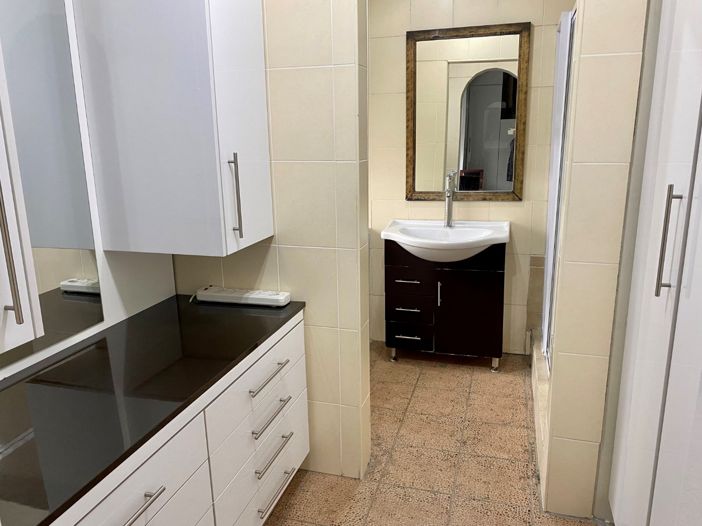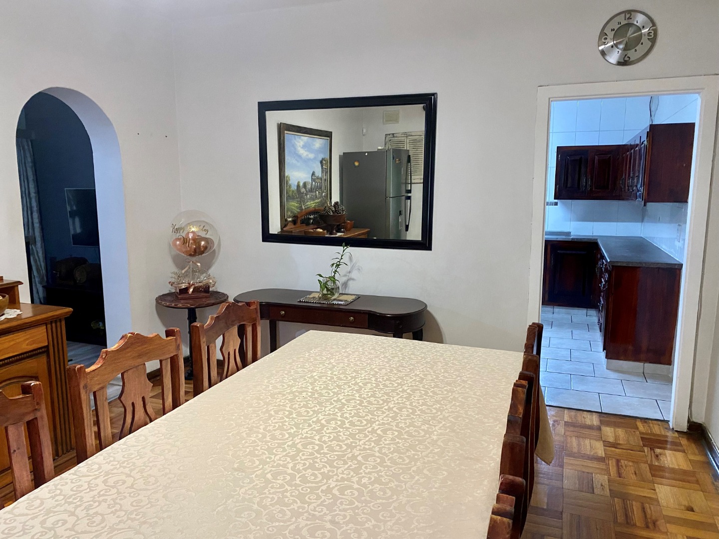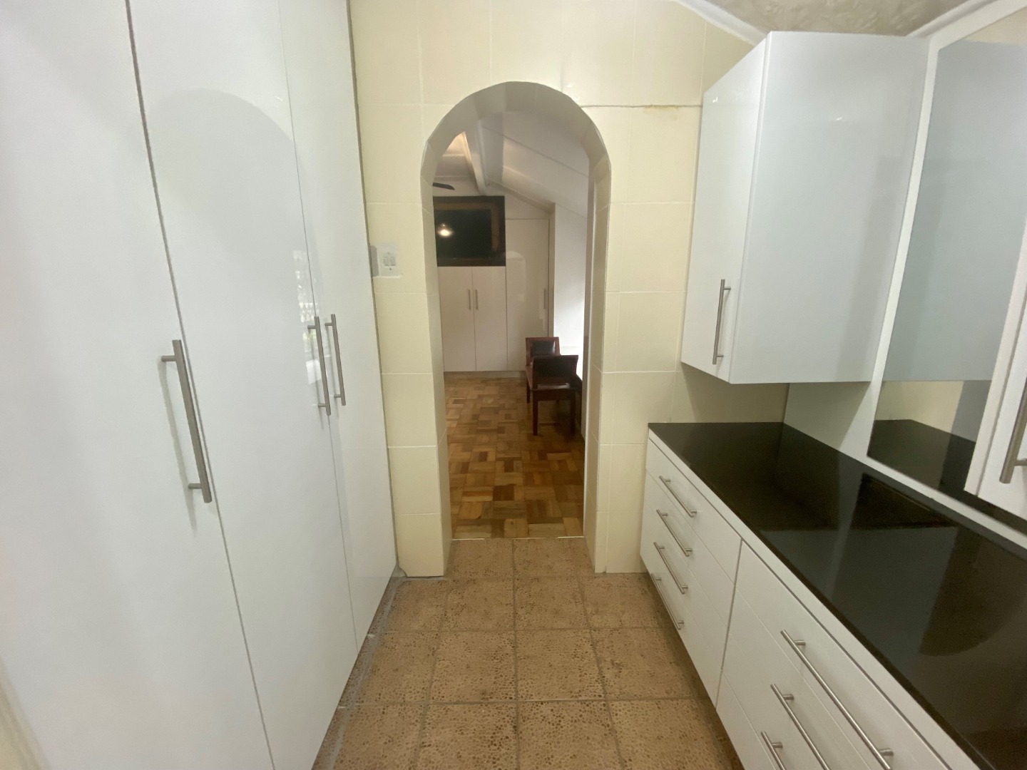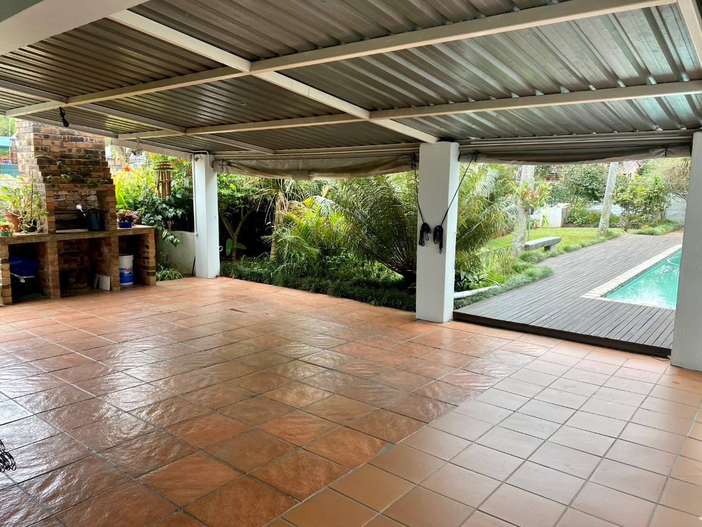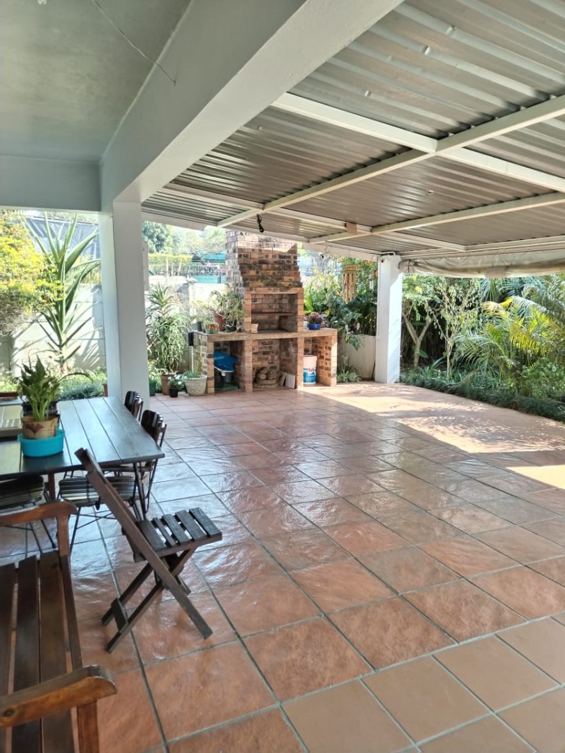 The kitchen is well-appointed with fitted cupboards, a double sink and space for a double door fridge, adjacent to a practical separate dining and living zone that leads to an inviting covered verandah by the pool.