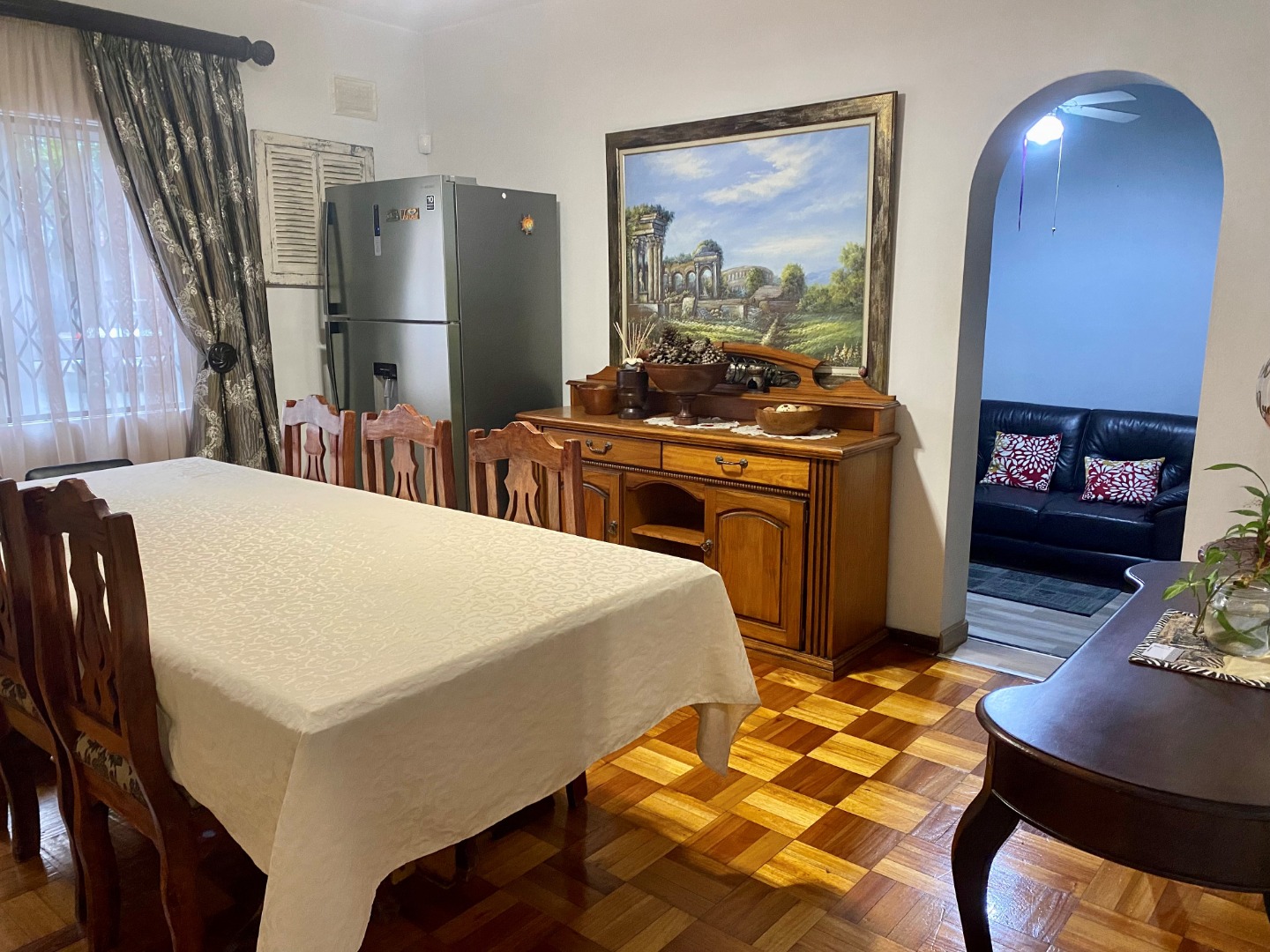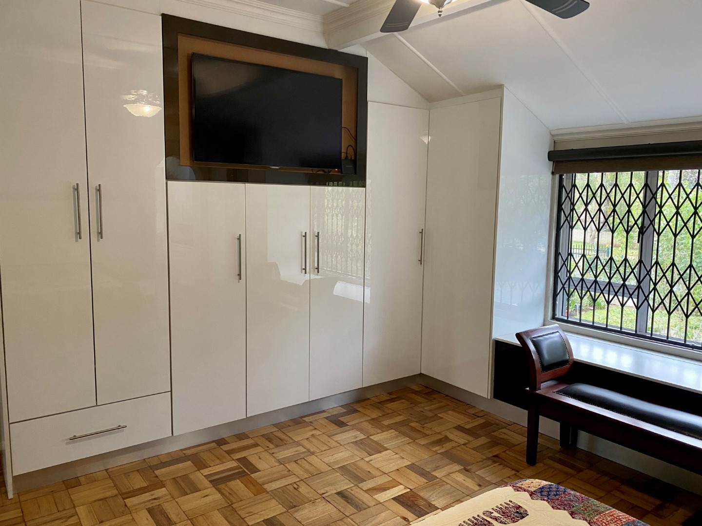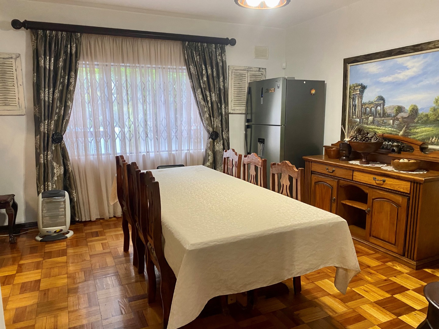 The generous dining room welcomes an 8-seater with ease, flowing into a warm lounge area anchored by a fireplace. Upstairs, four bedrooms boast built-in cupboards and air conditioning for comfort year-round, while the main en suite offers convenience with its own shower and basin.