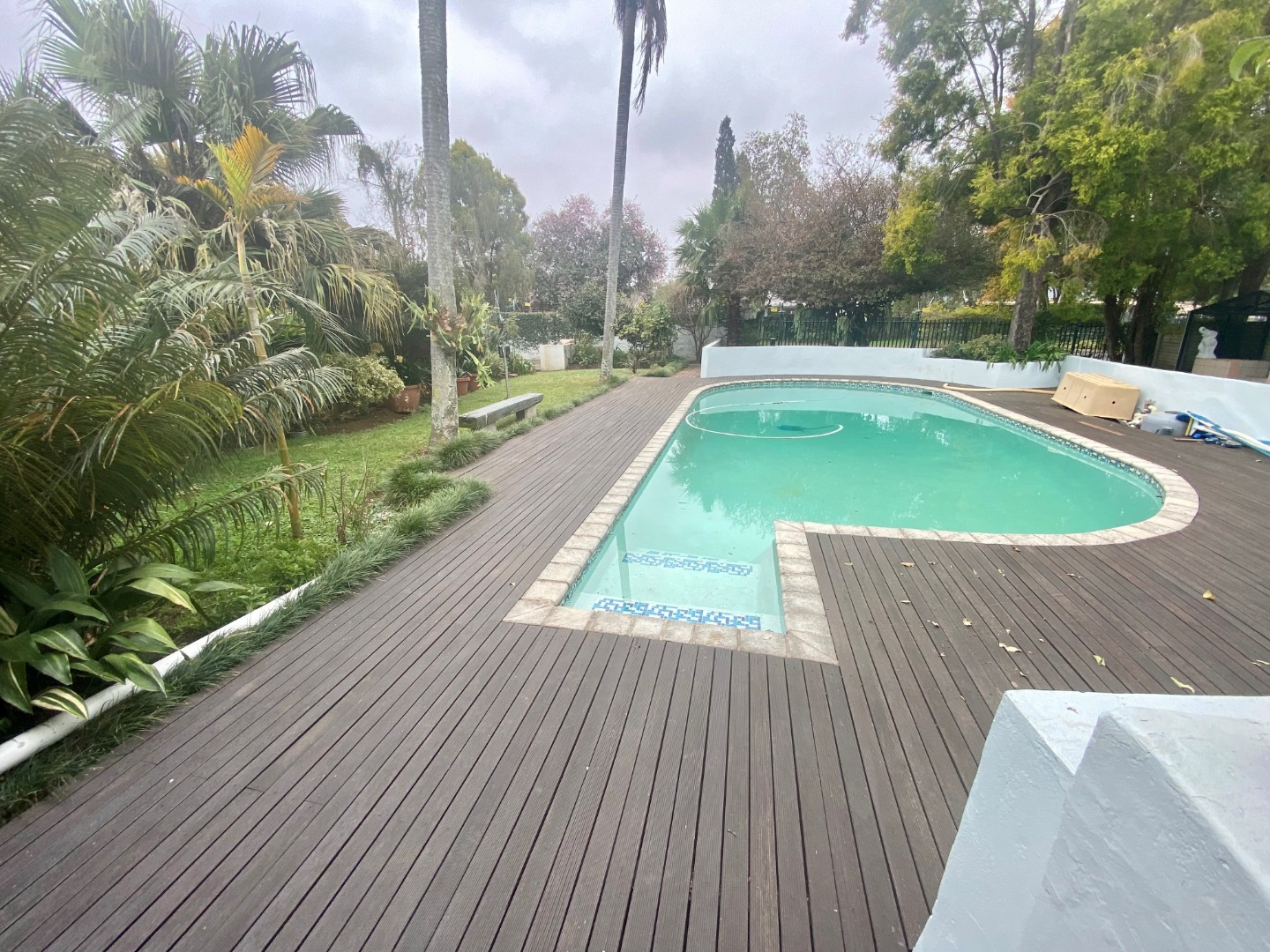 Enjoy outdoor entertaining on the large deck surrounding a private pool, with a well-maintained front lawn and a dismantled tennis court at the rear offering potential for further landscaping or sports activities.