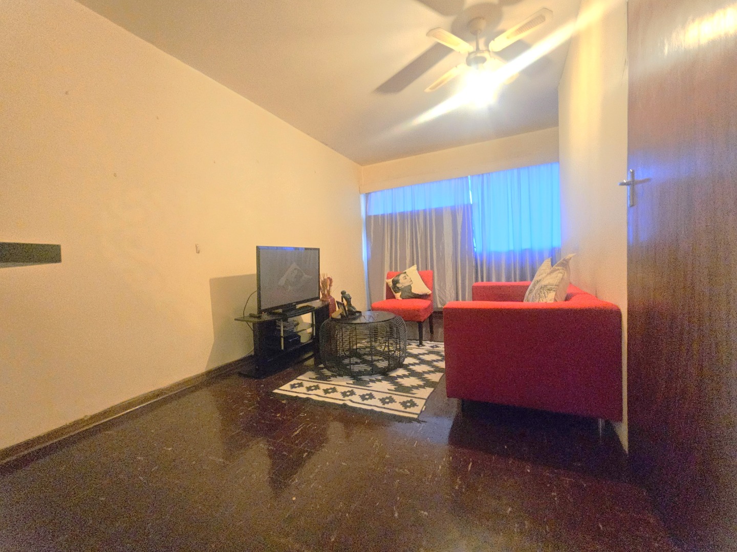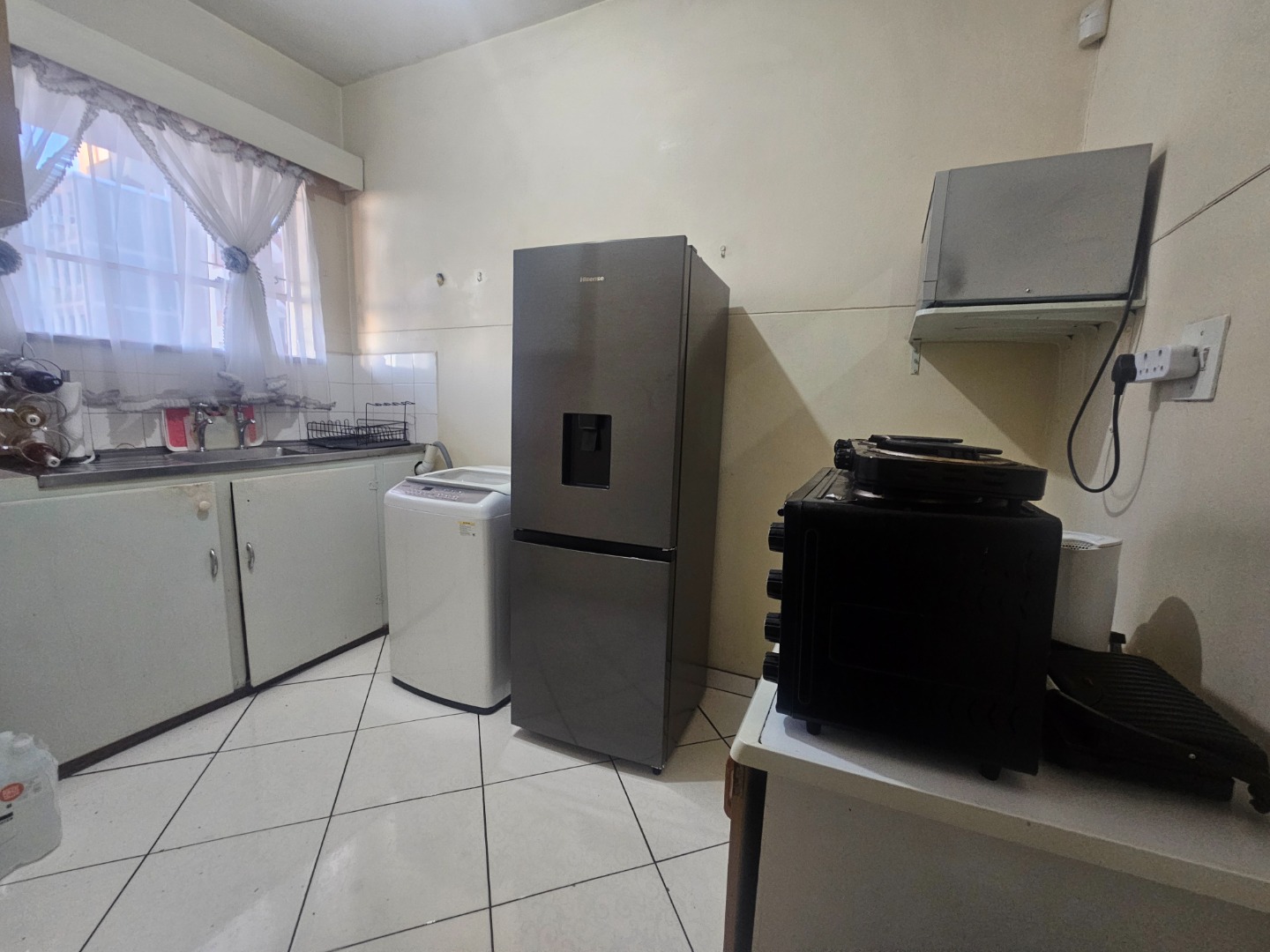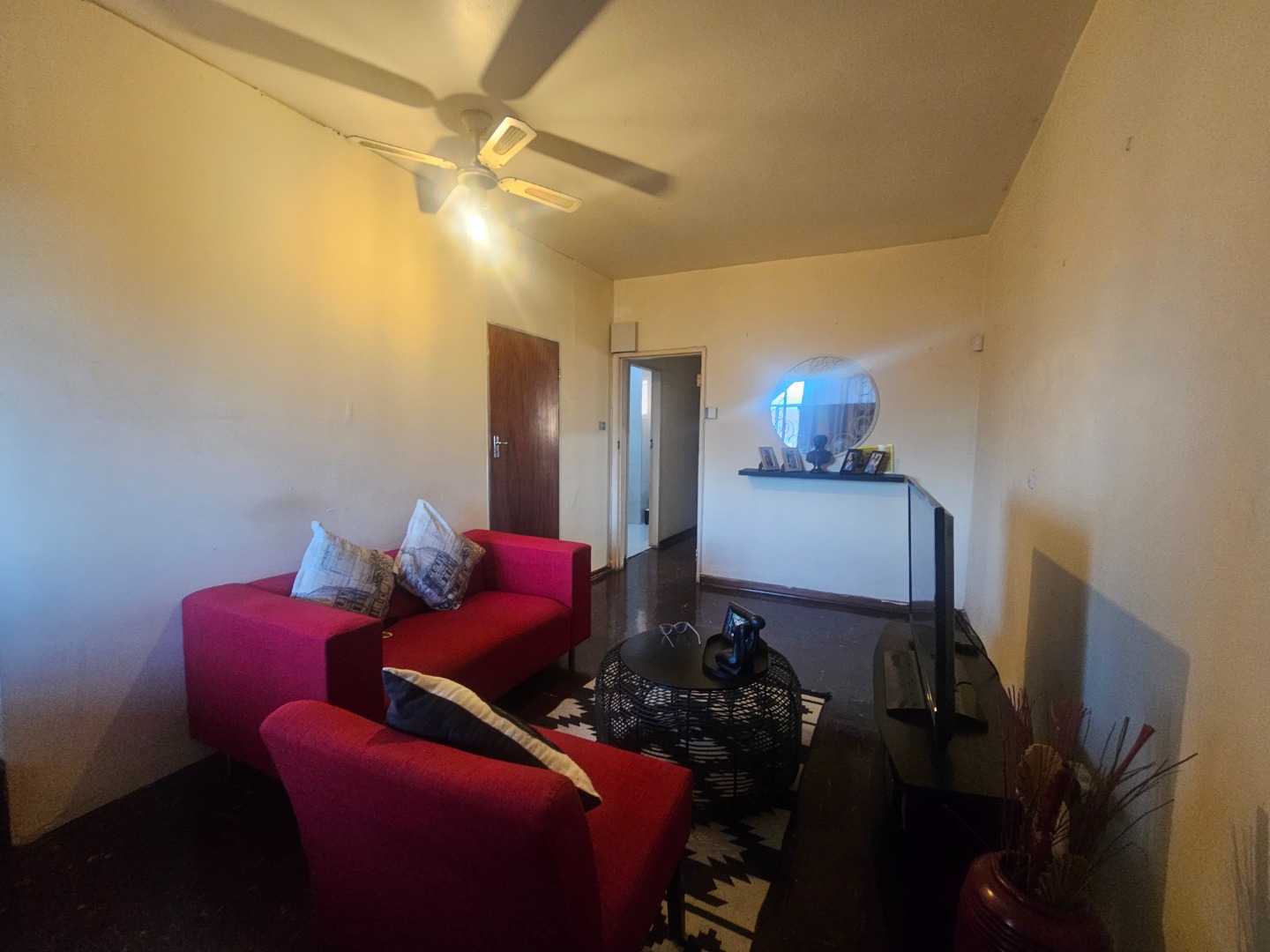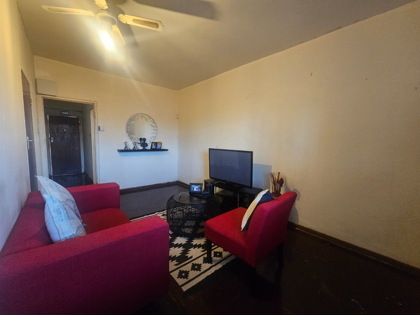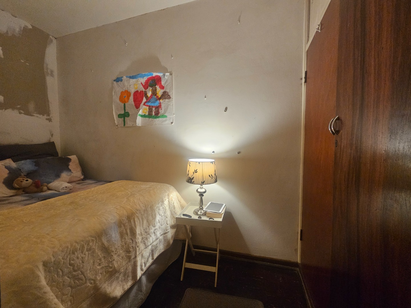 The sellers have dry-walled an area in the large lounge serving as a bedroom with built-in cupboards, just adding to your privacy.