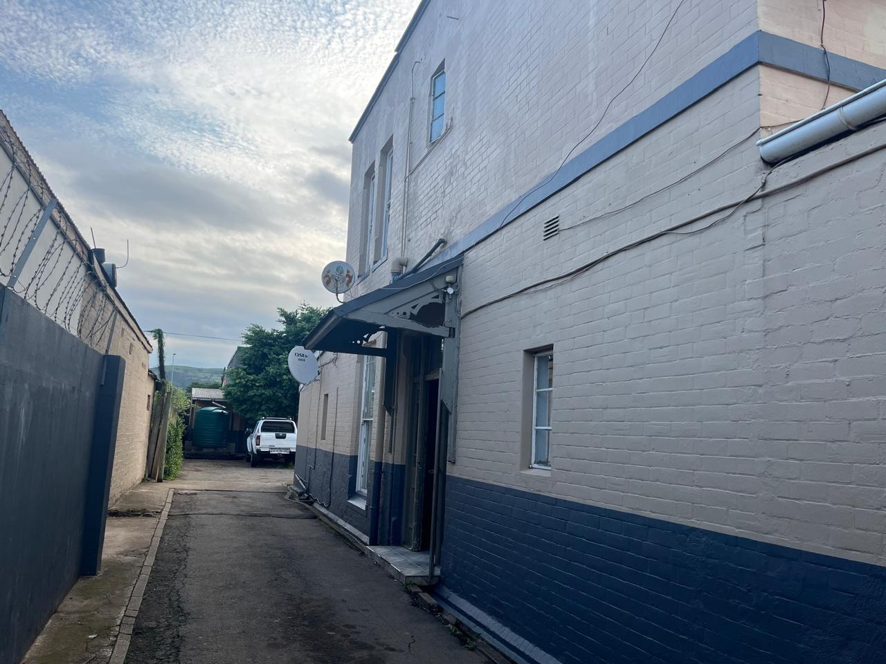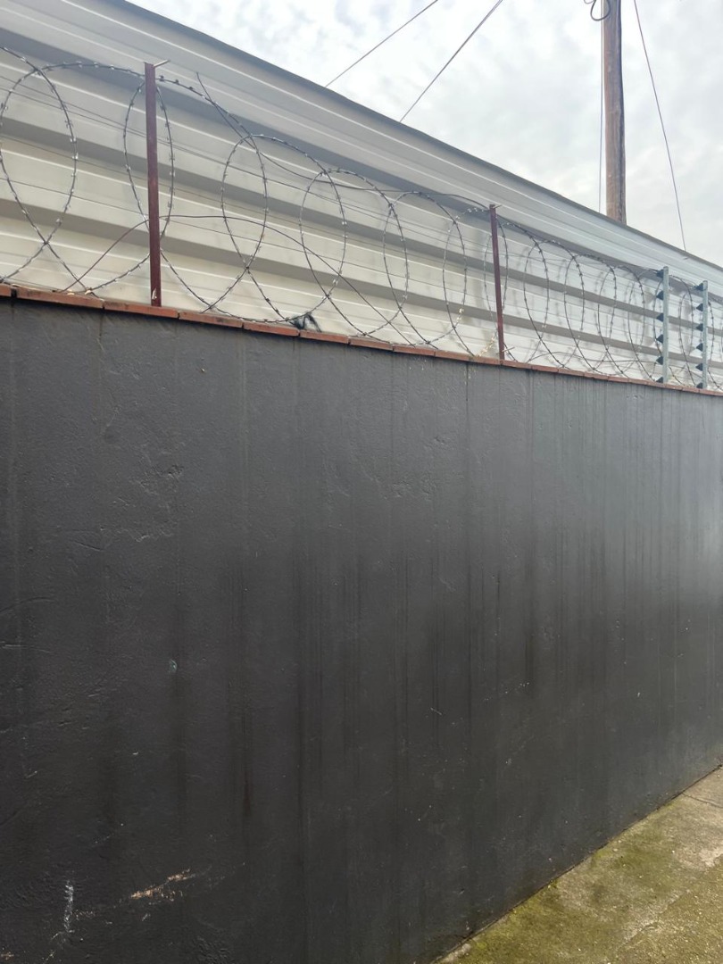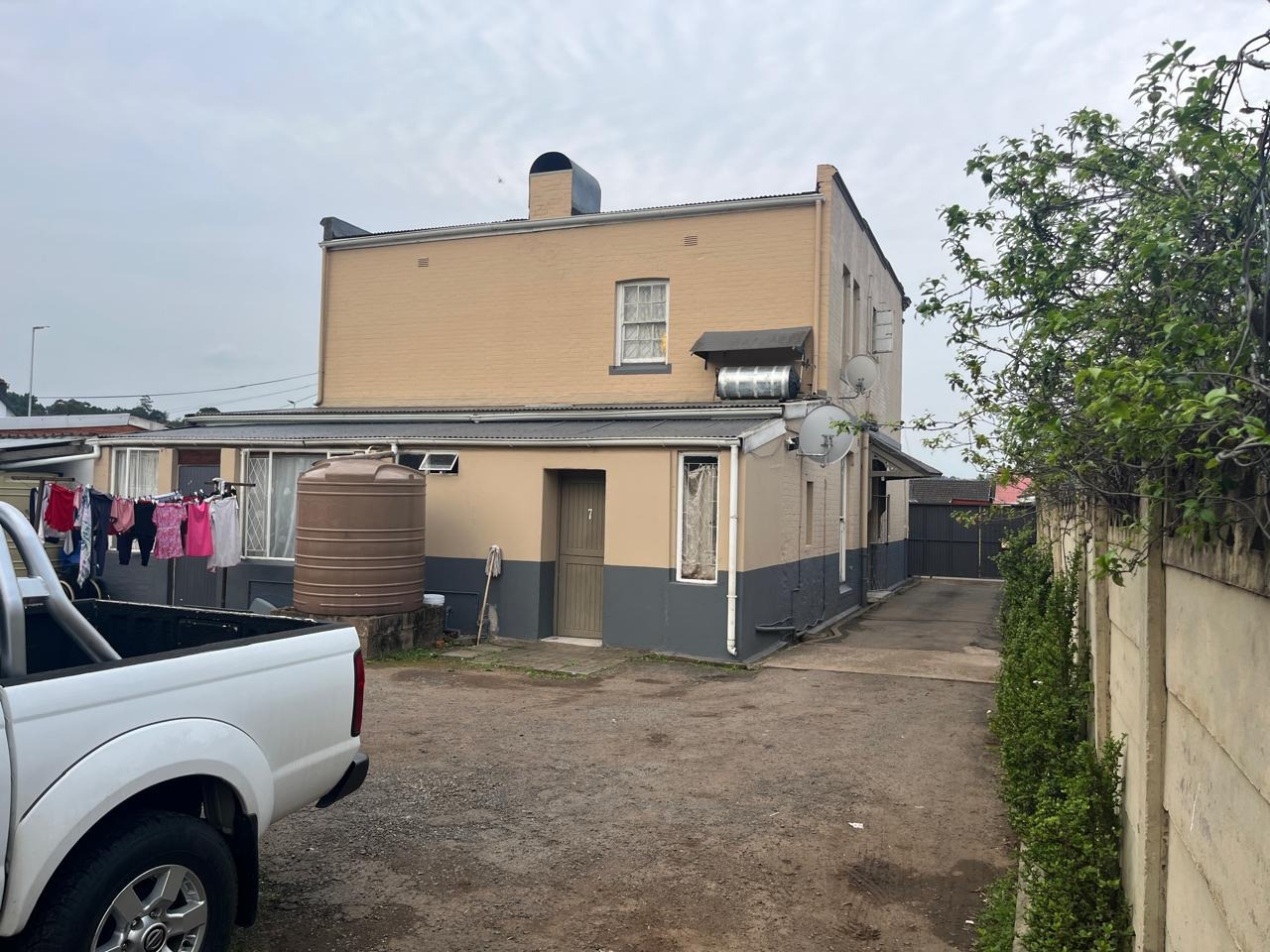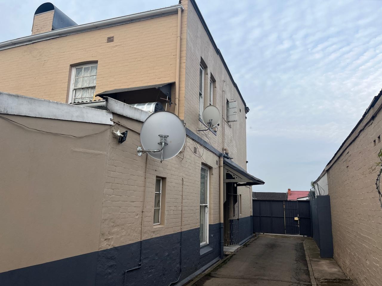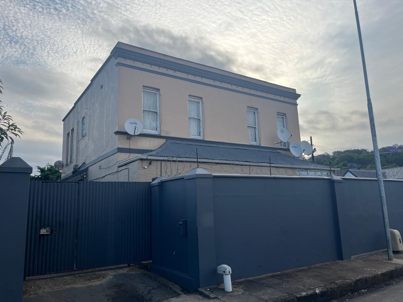 Street frontage offering privacy with high walls and gates.