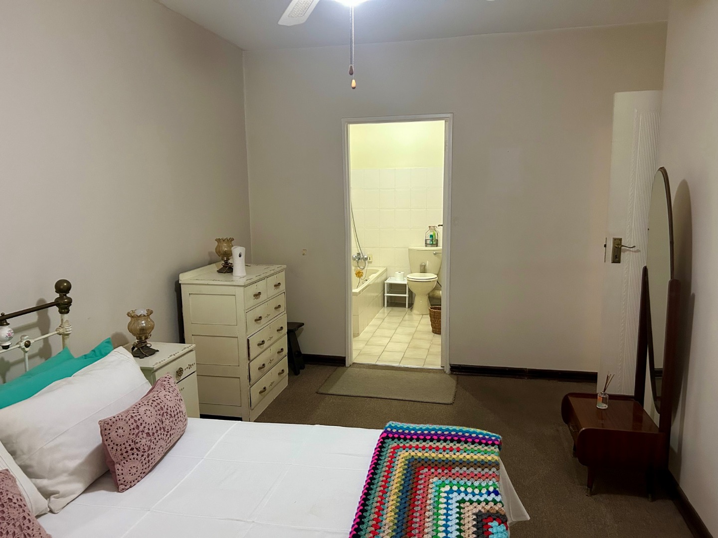 The spacious main bedroom has plenty of cupboards and an ensuite, and there is a second bathroom with a shower and toilet that serves the 2nd bedroom and your visitors.