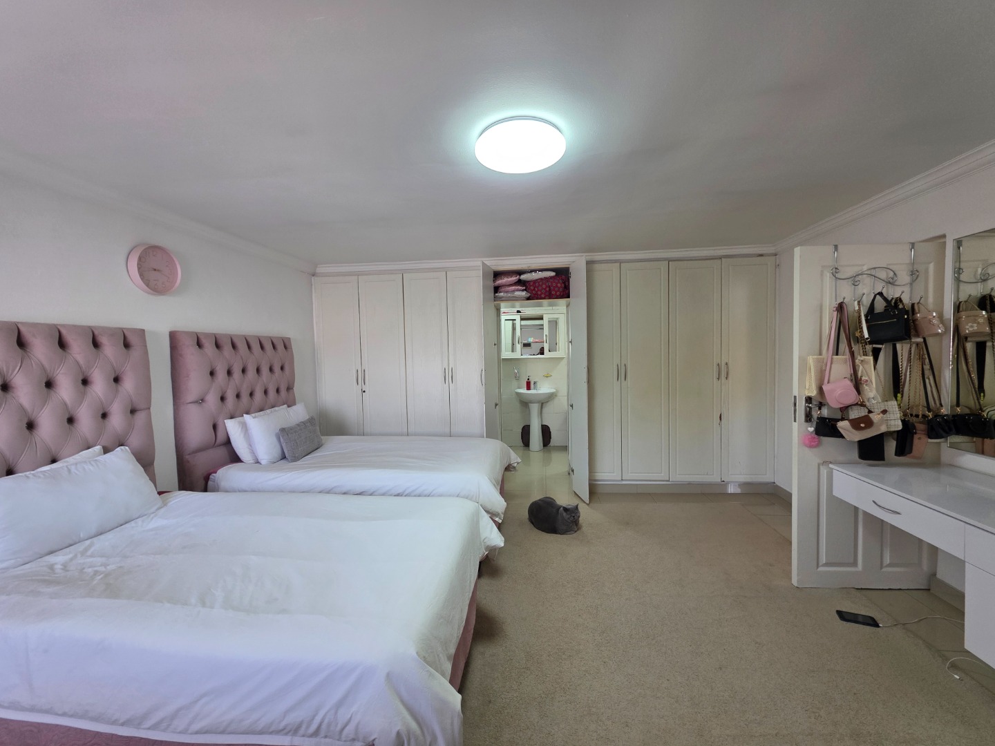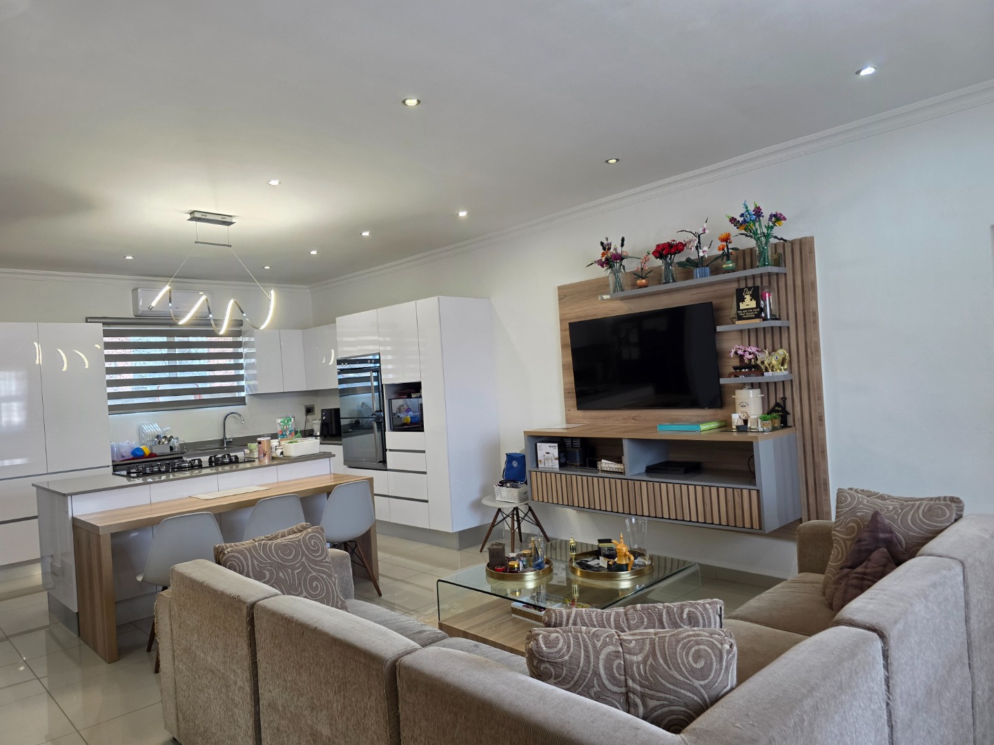 An added bonus is the exceptional modern and spacious 2-bedroom, 2-bathroom flatlet at the back, featuring a modern fitted kitchen, high-end finishes, bespoke cupboards, and stylish light fittings. It’s rare to find a second dwelling finished to such an exceptional standard.