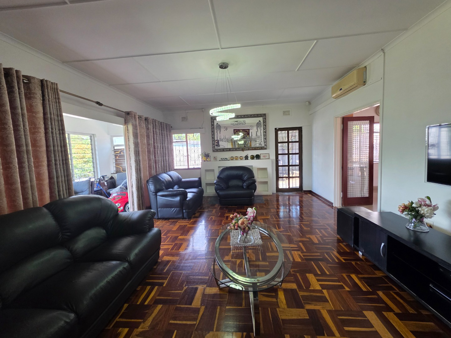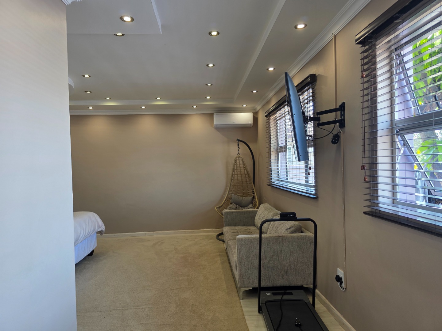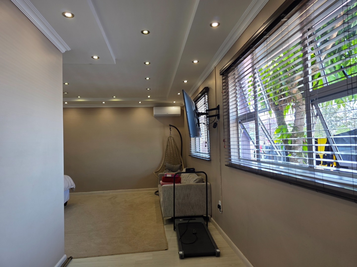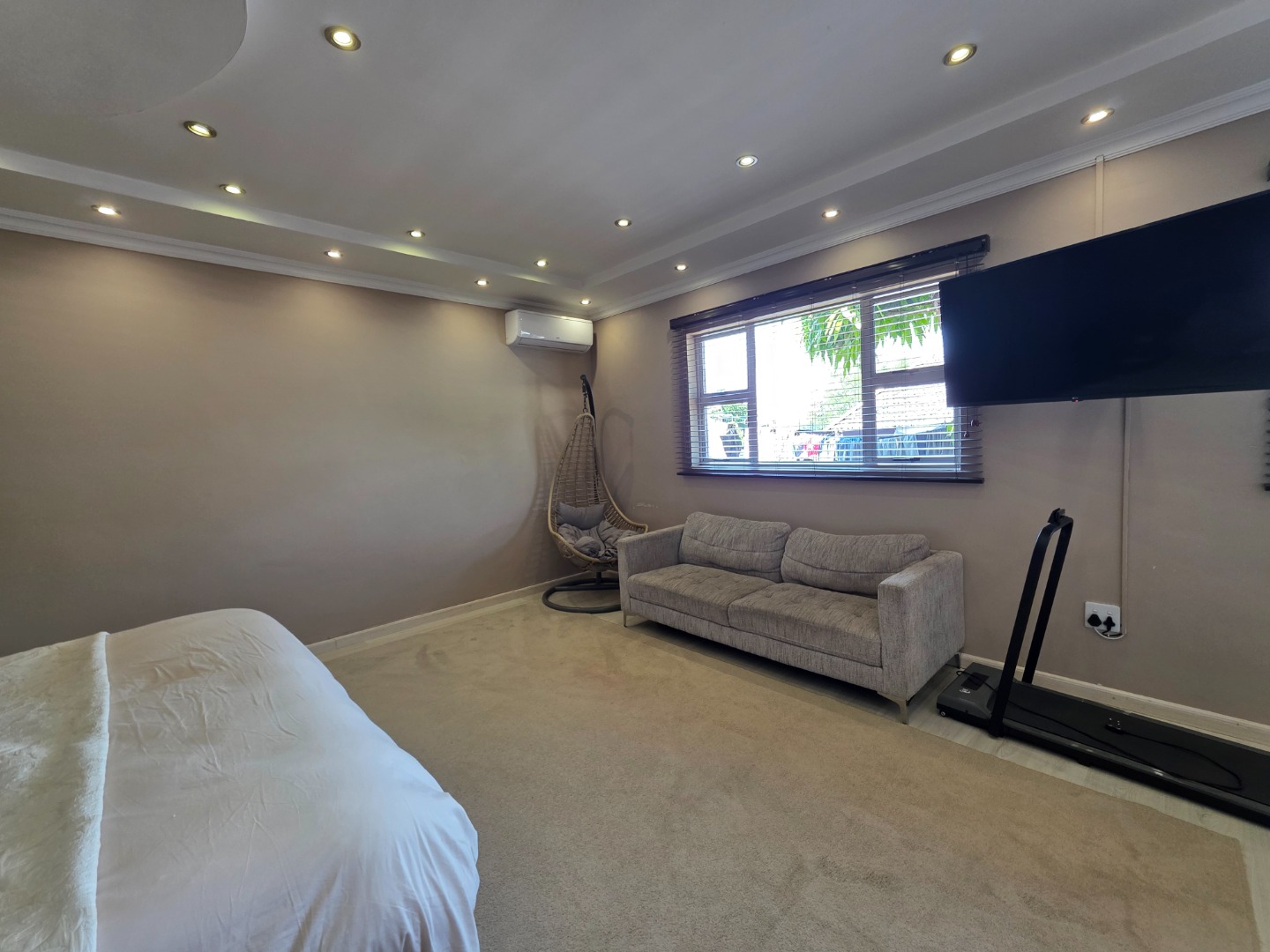The family-friendly lounge/TV room opens to a secure outdoor area with a jungle gym - perfect for kids.