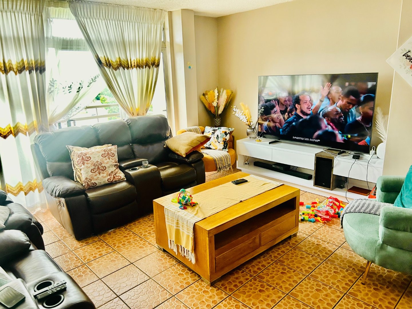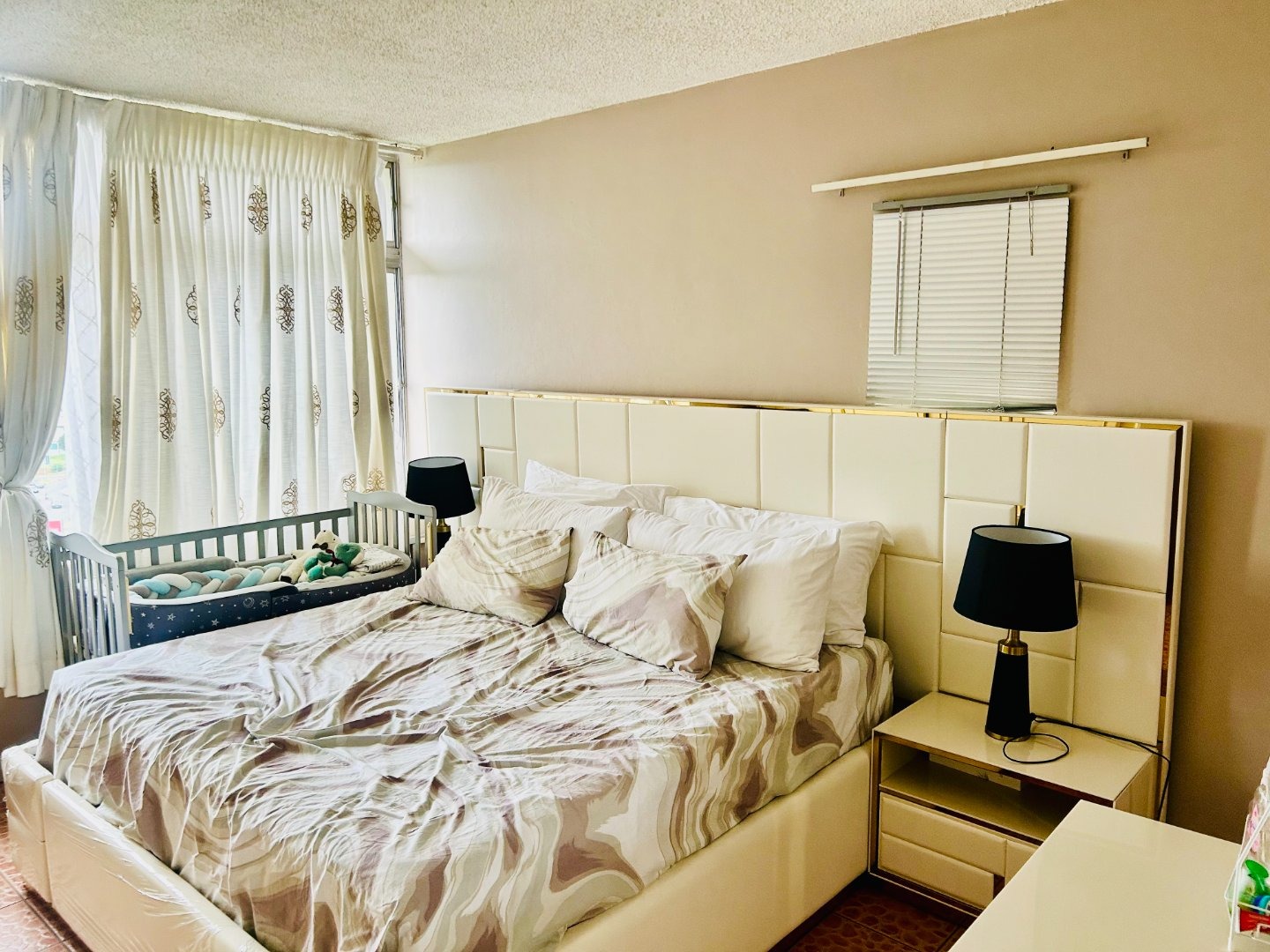 Spacious three-bedroom, two-bathroom family unit in a desirable neighborhood with excellent security features.