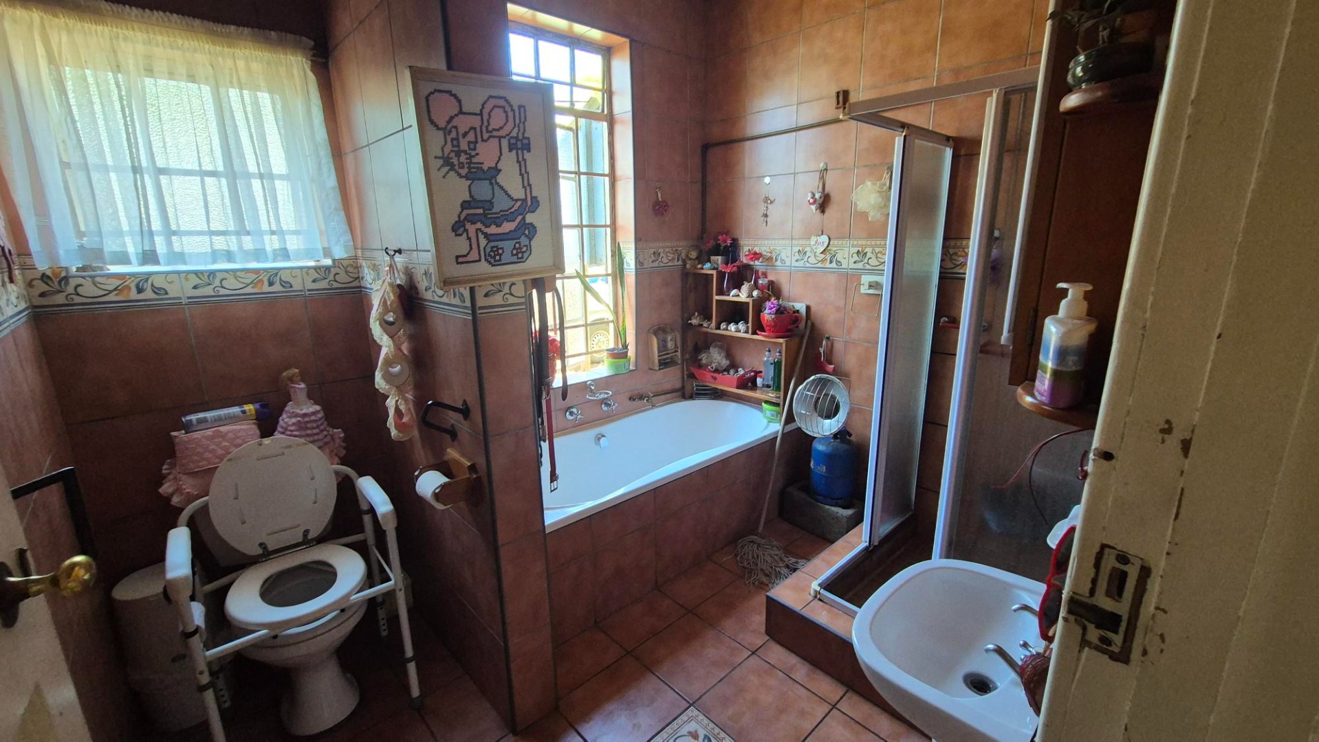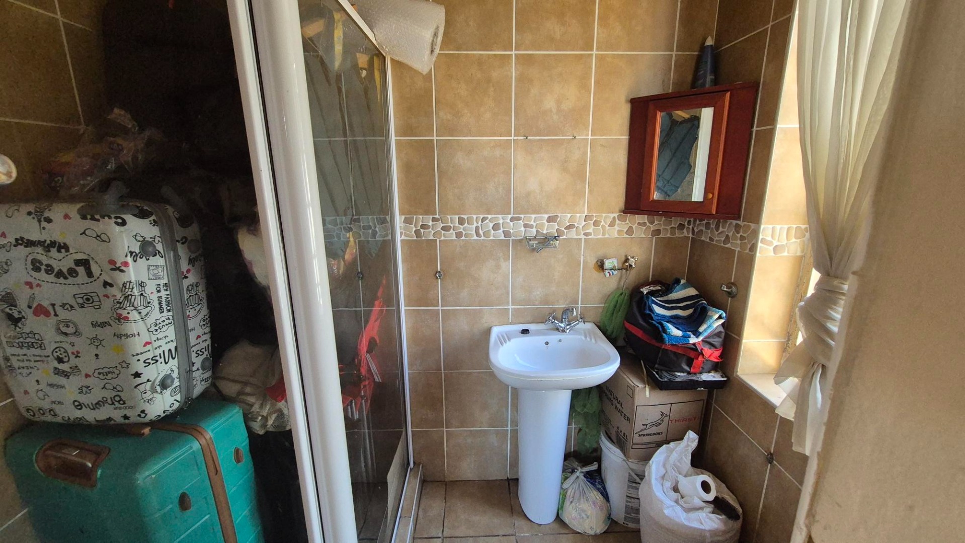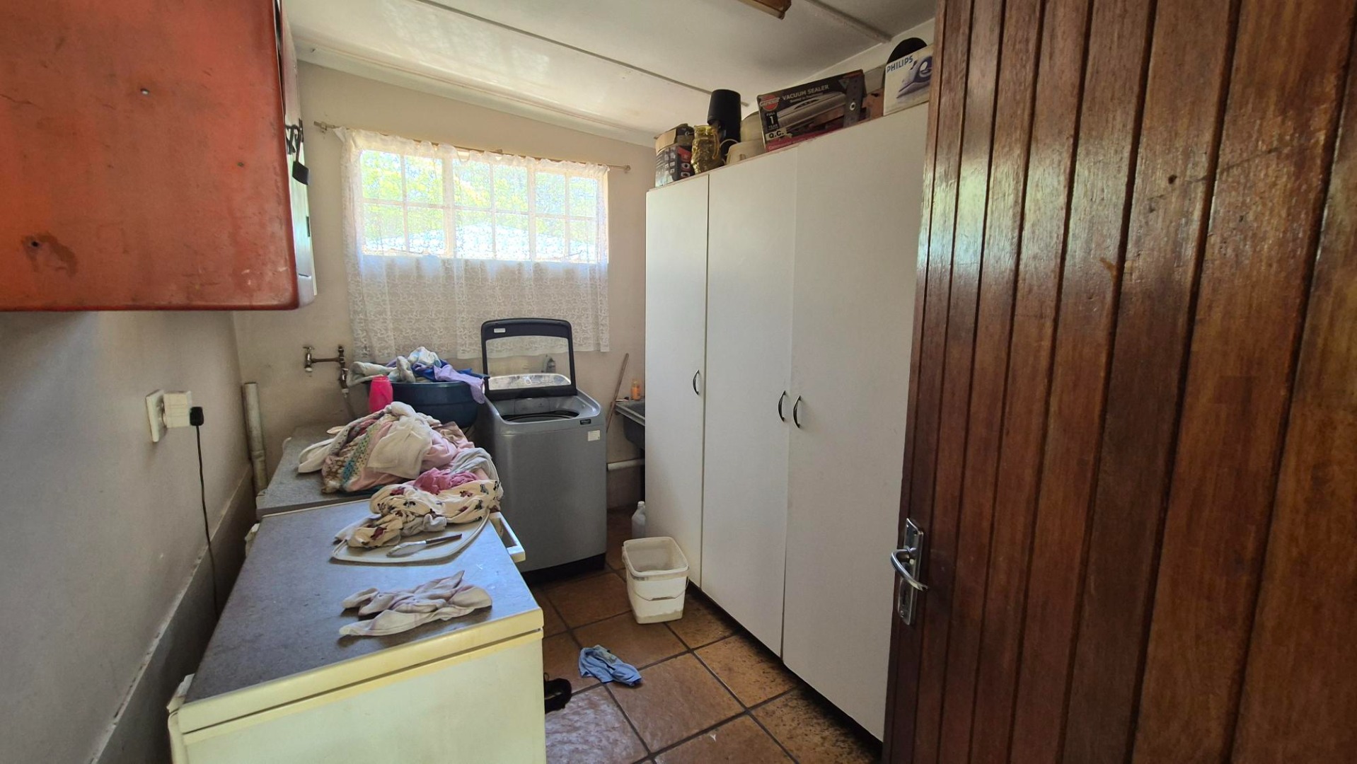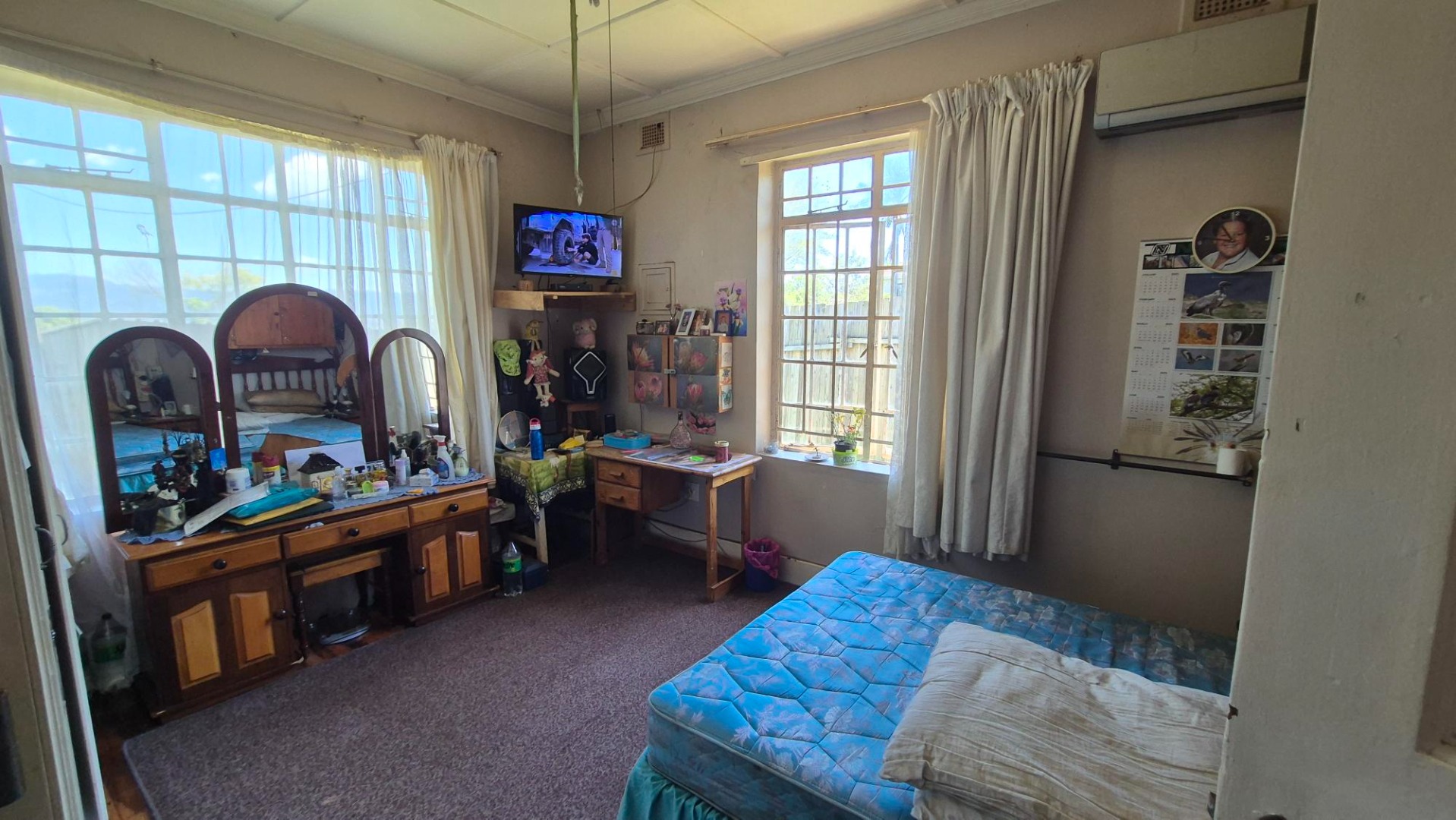 The main house features four bedrooms and two bathrooms, with one bedroom en suite. A spacious combined lounge and dining area provides comfortable communal living, complemented by a fitted kitchen with ample built-in cupboards. While the home does require some maintenance, it presents an excellent opportunity to add value.