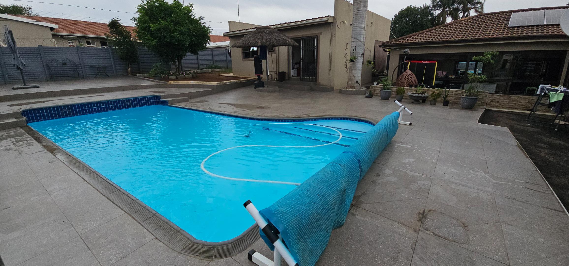The exterior of the property features stainless steel gates and fencing and an added bonus is a state of the art camera security system. The driveway is tarred and all window frames are aluminium, making this easy to maintain. There is a carport capable of housing at least 3 cars and there is plenty additional parking space.