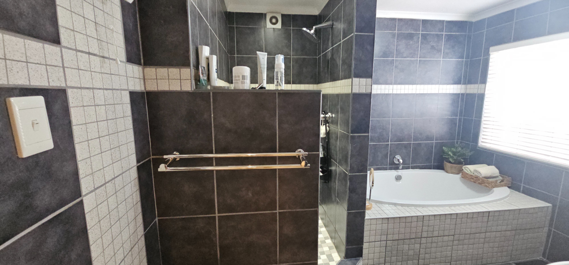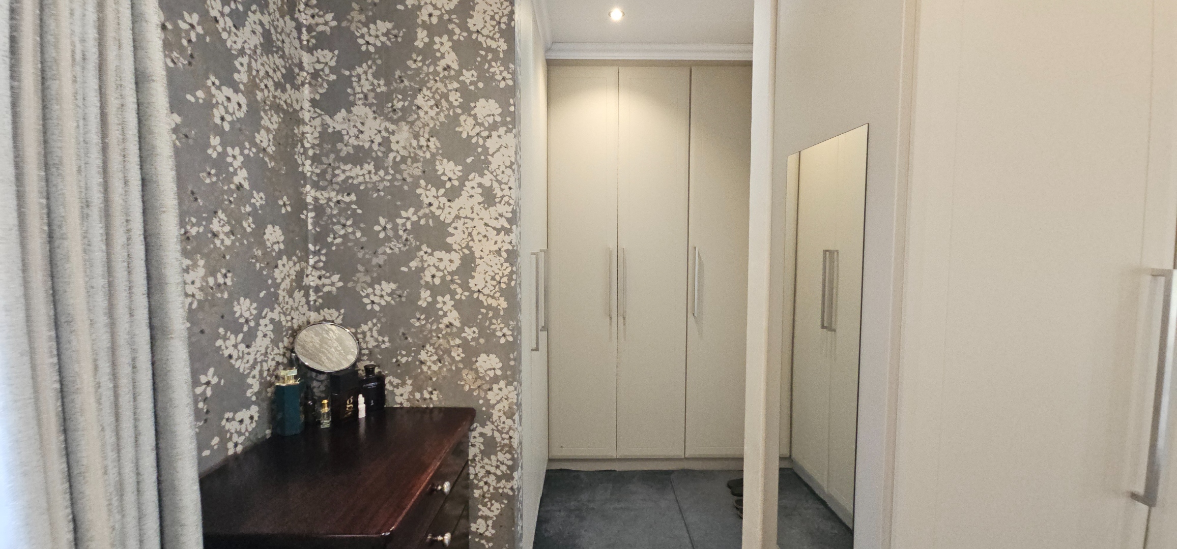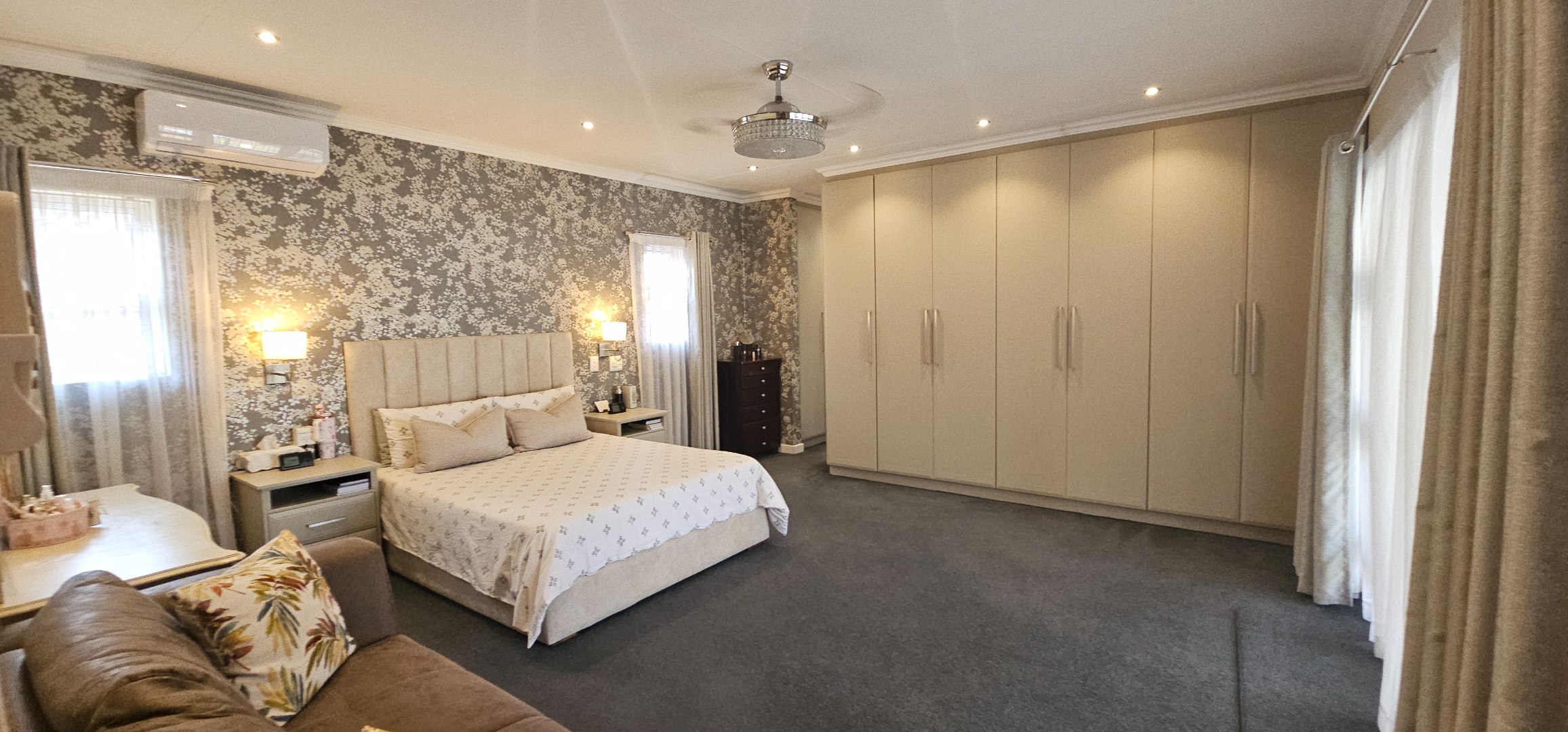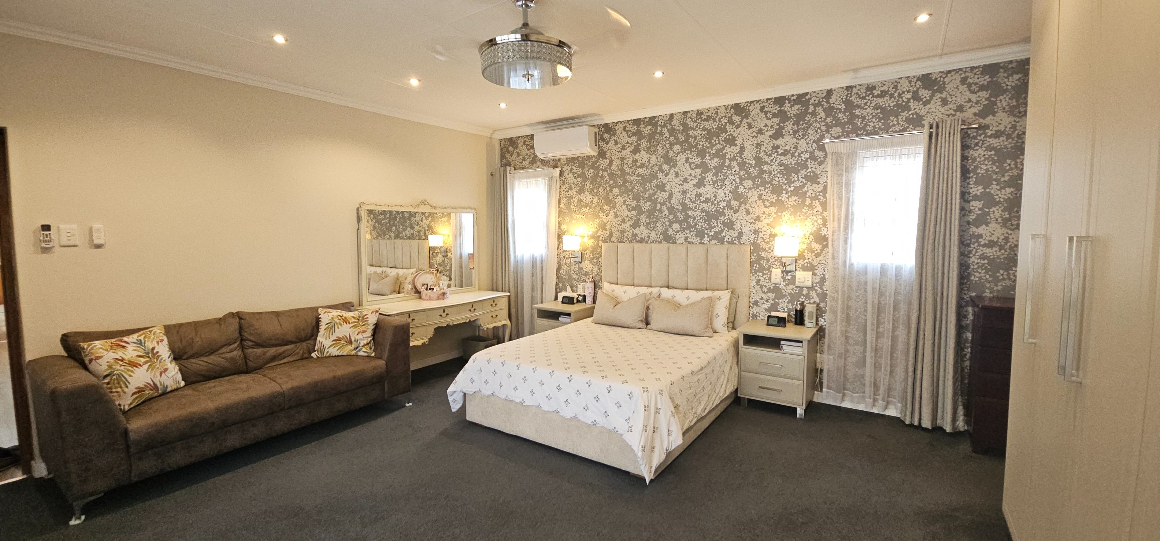 There is a stunning guest loo and an additional toilet with a separate shower/bathroom that services the house. There are 3 bedrooms in the main house-2 of which are ensuite. All bathrooms are modern and have trendy finishings. The rooms are equipped with built -in cupboards and there is air conditioning. The interior design of this home reflects sophisticated class and elegant taste. The home is neat, well maintained and is a pleasure to showcase .