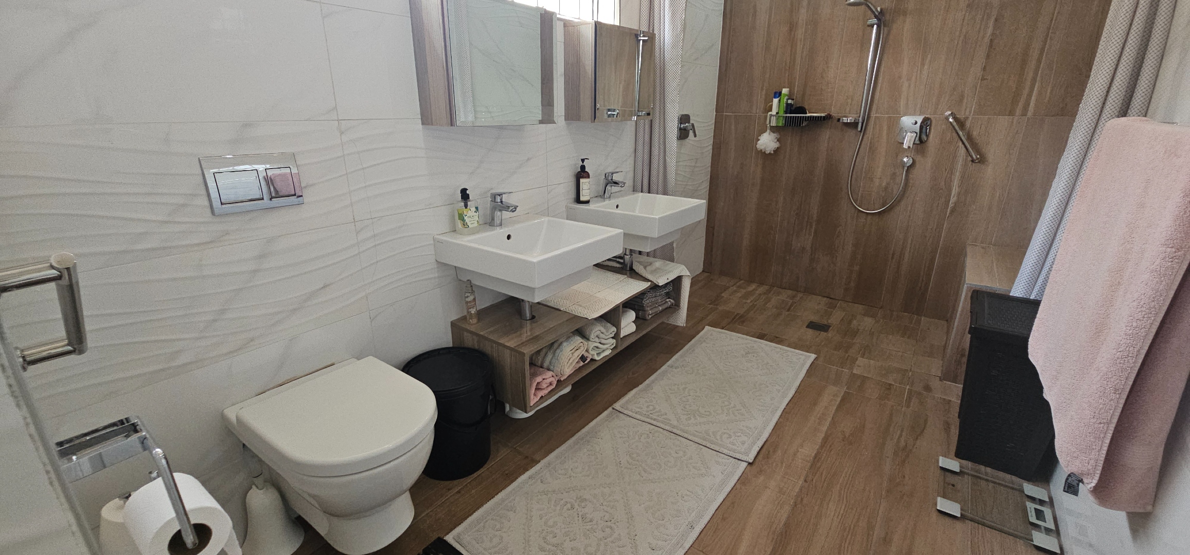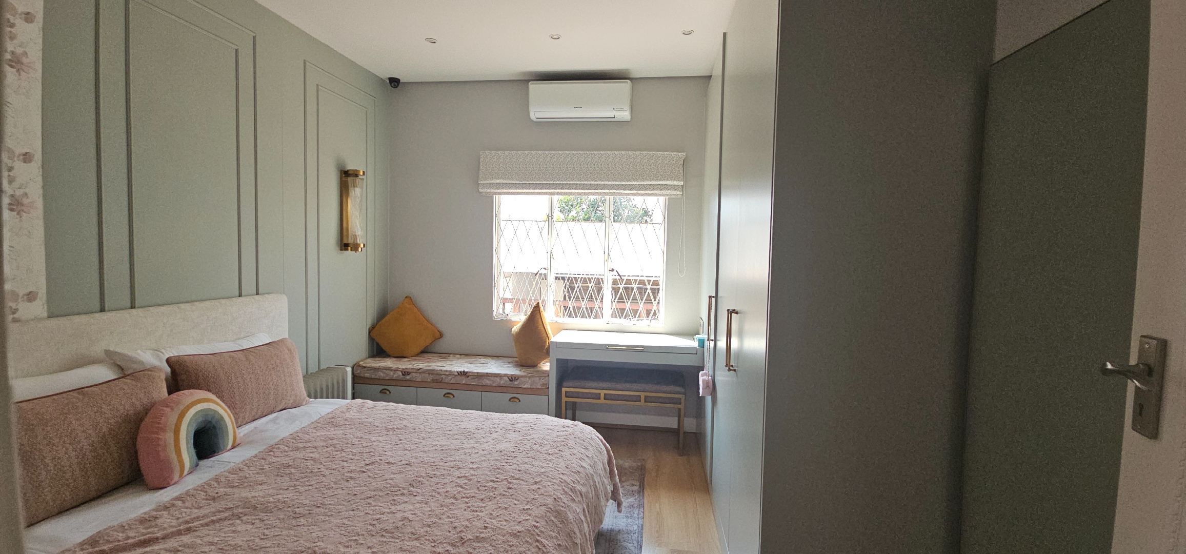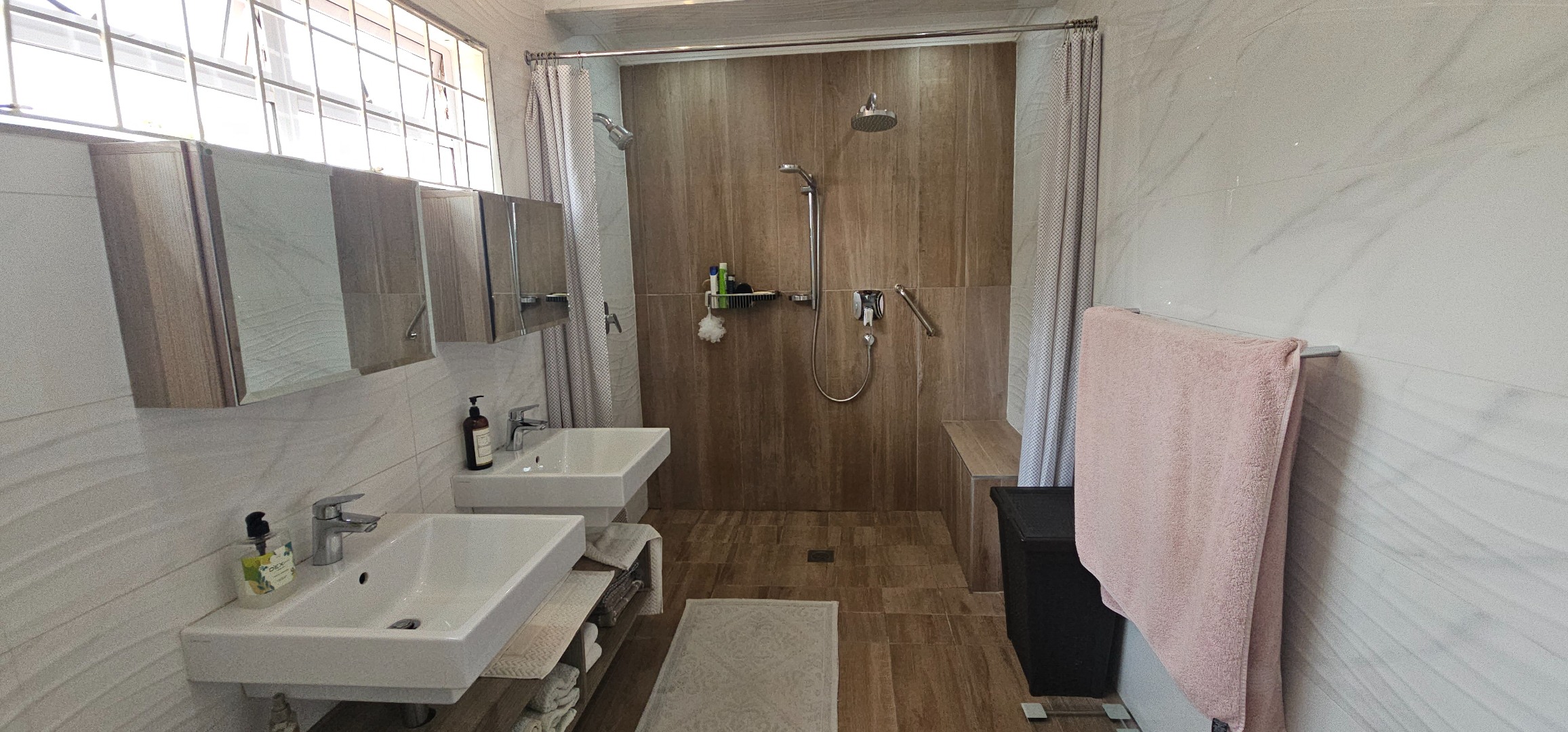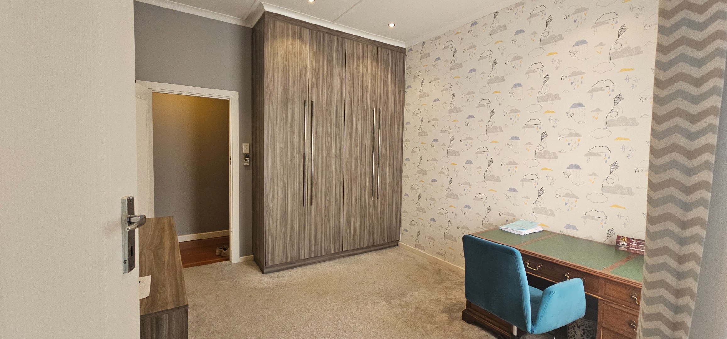 There is a stunning guest loo and an additional toilet with a separate shower/bathroom that services the house. There are 3 bedrooms in the main house-2 of which are ensuite. All bathrooms are modern and have trendy finishings. The rooms are equipped with built -in cupboards and there is air conditioning. The interior design of this home reflects sophisticated class and elegant taste. The home is neat, well maintained and is a pleasure to showcase .