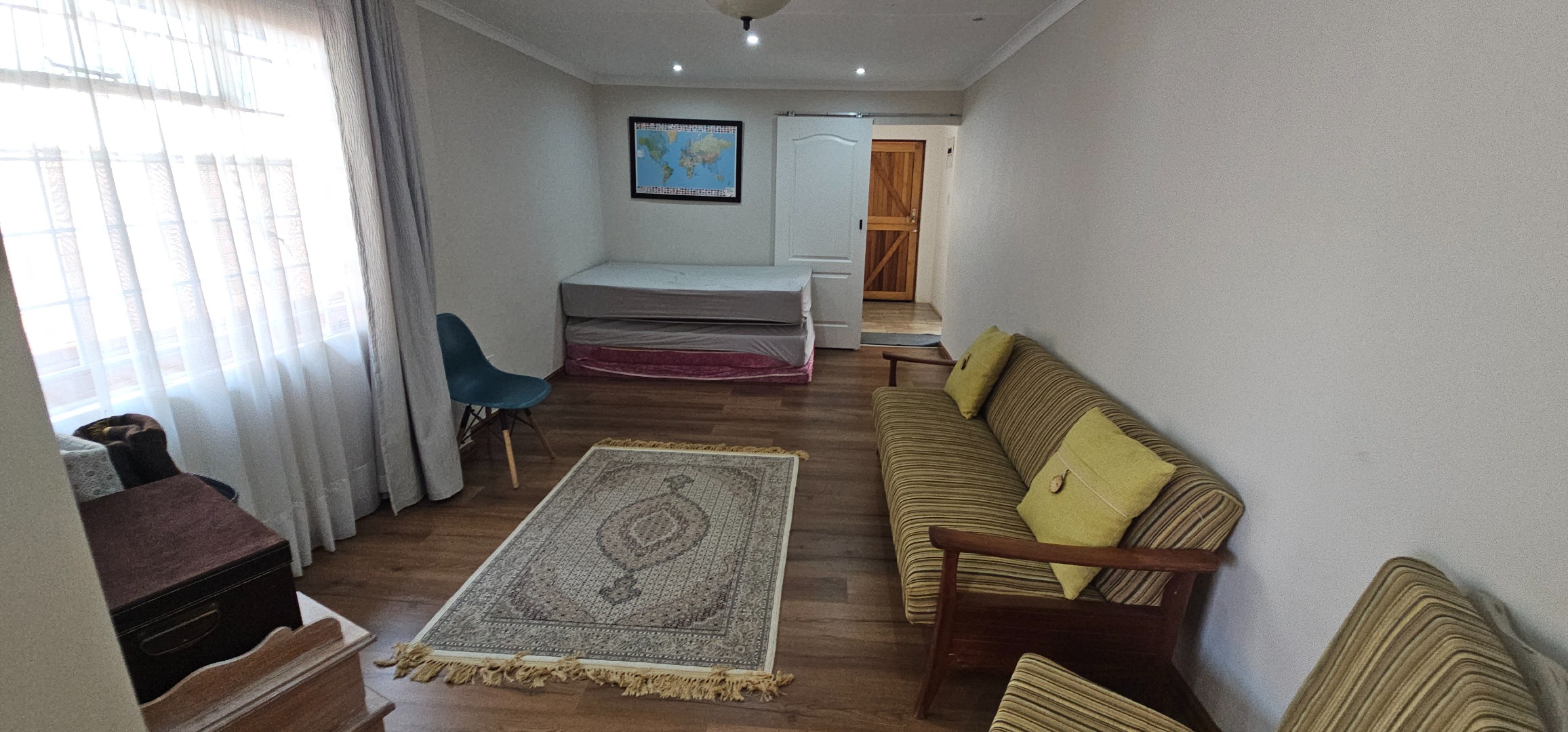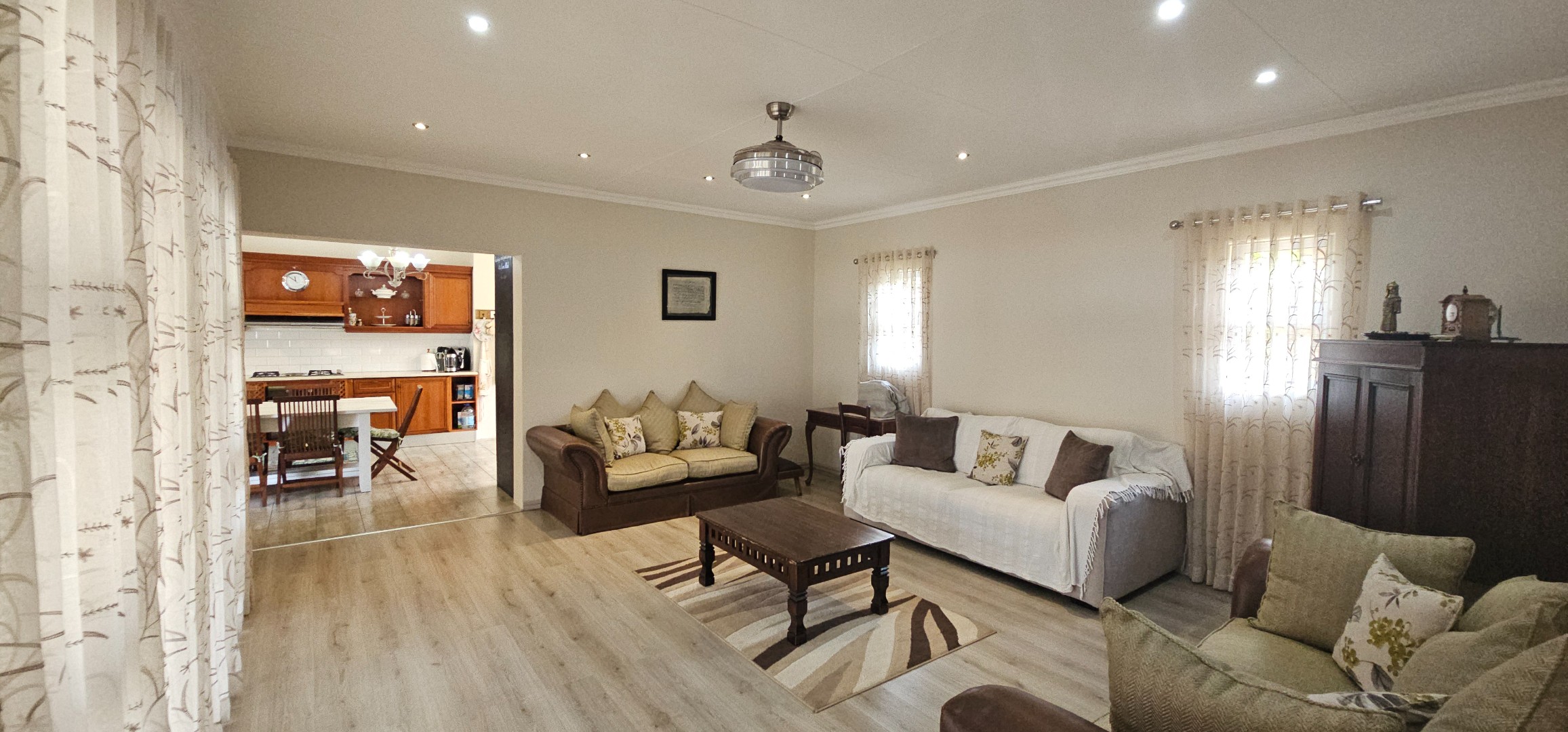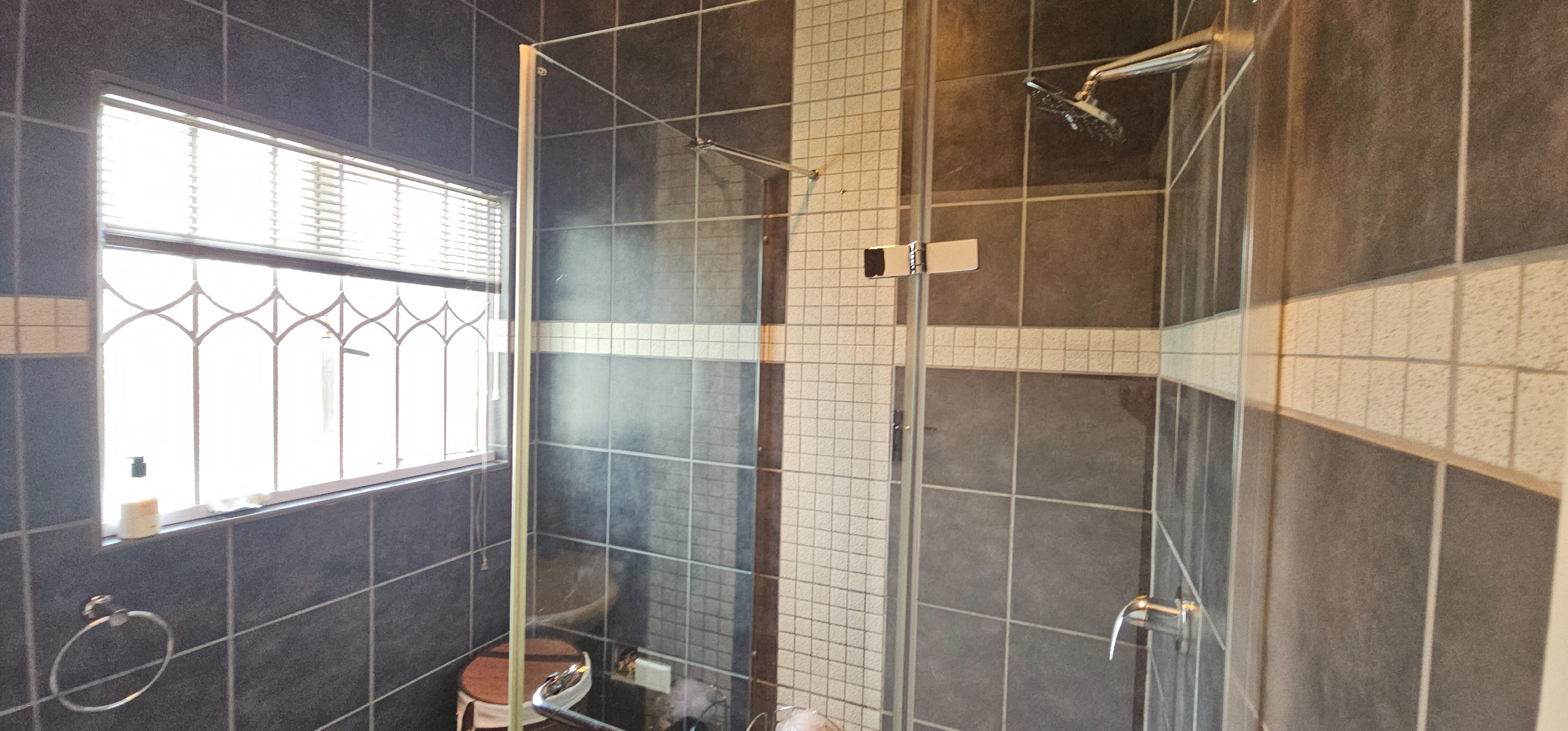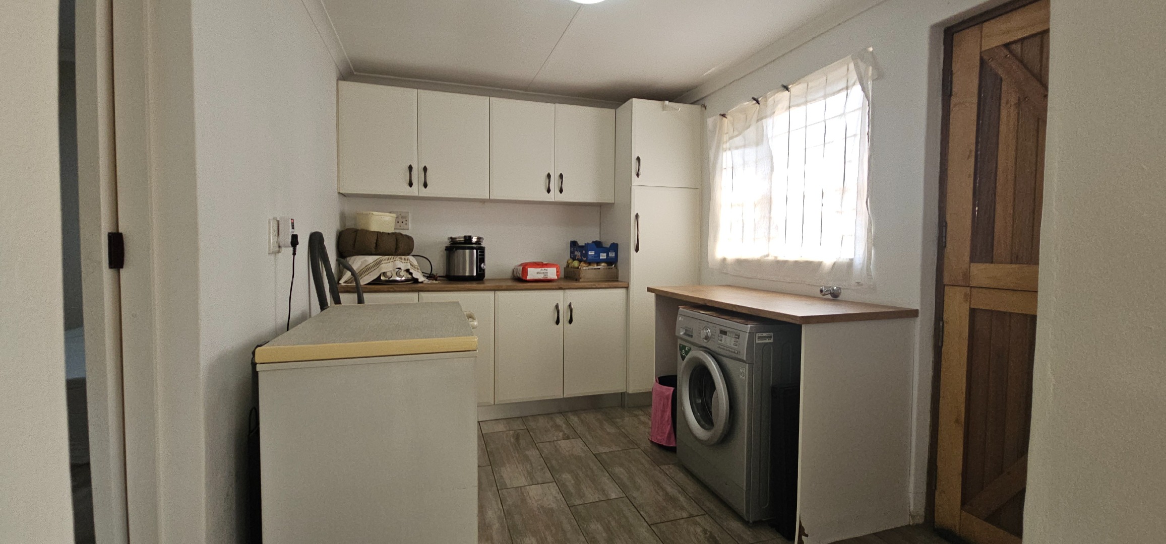 The main house has a long, tarred driveway, a spacious yard with beautiful well-established trees creating a park-like setting, complete with a solid kiddies’ swing set. There is ample parking for about 3 cars under a carport as well as an additional garage.
