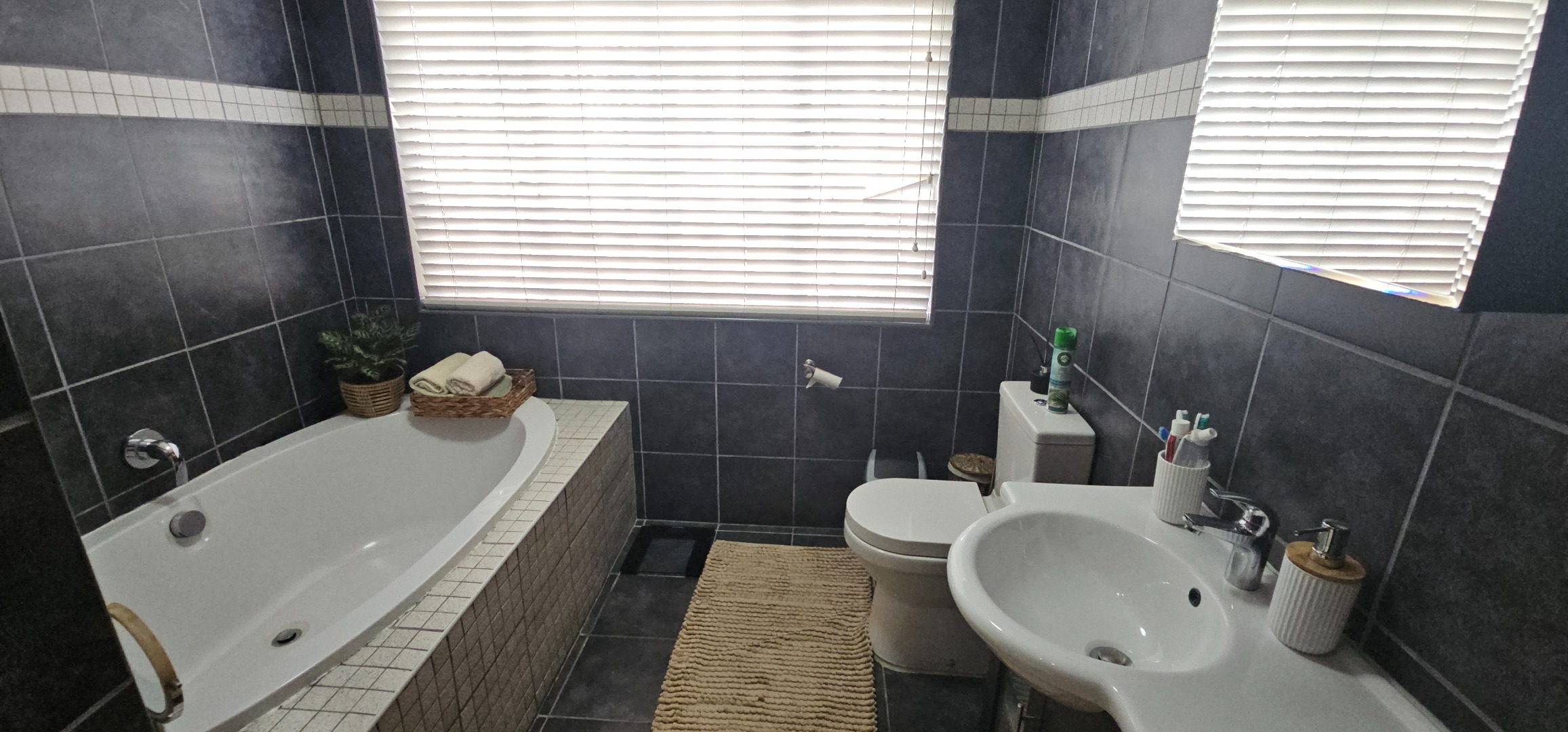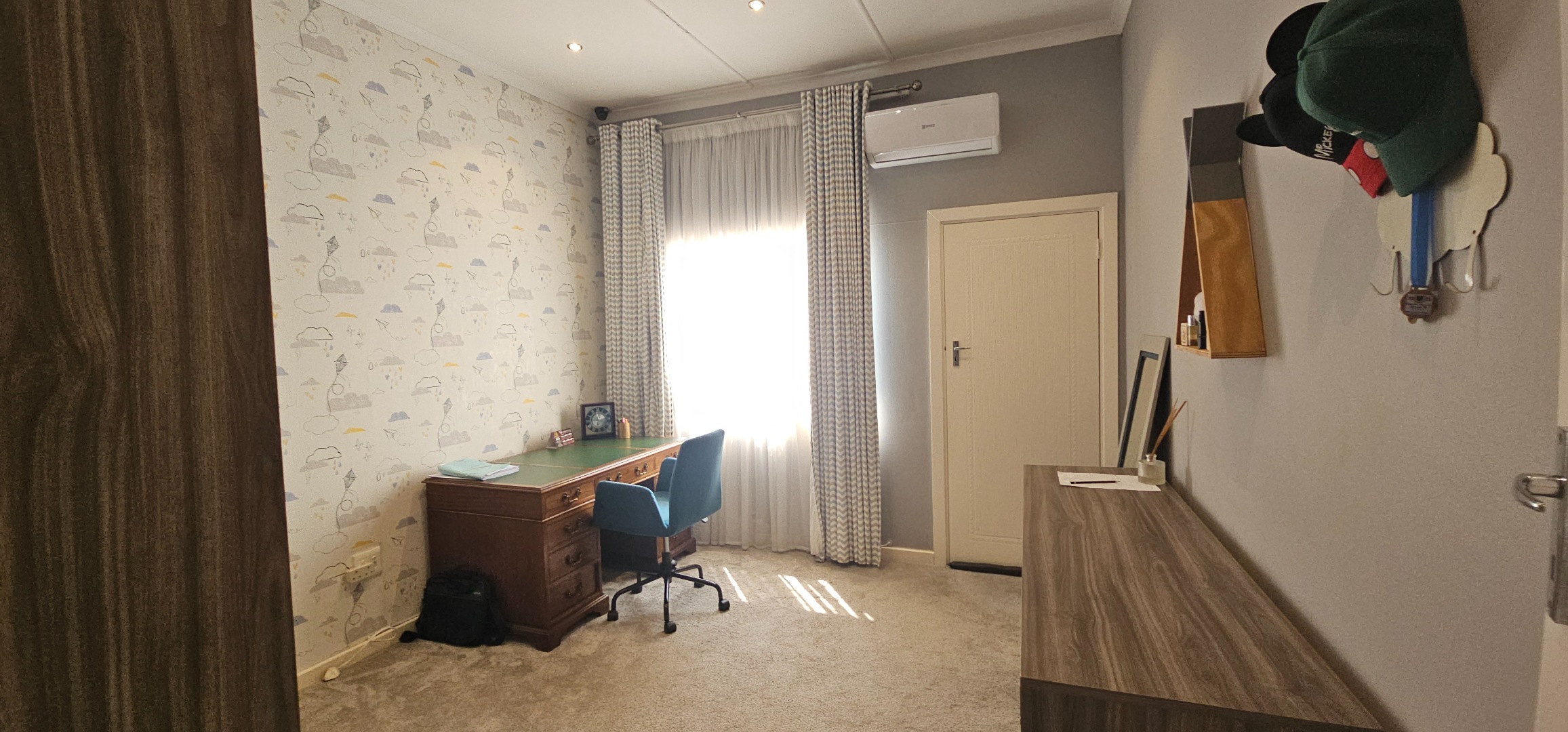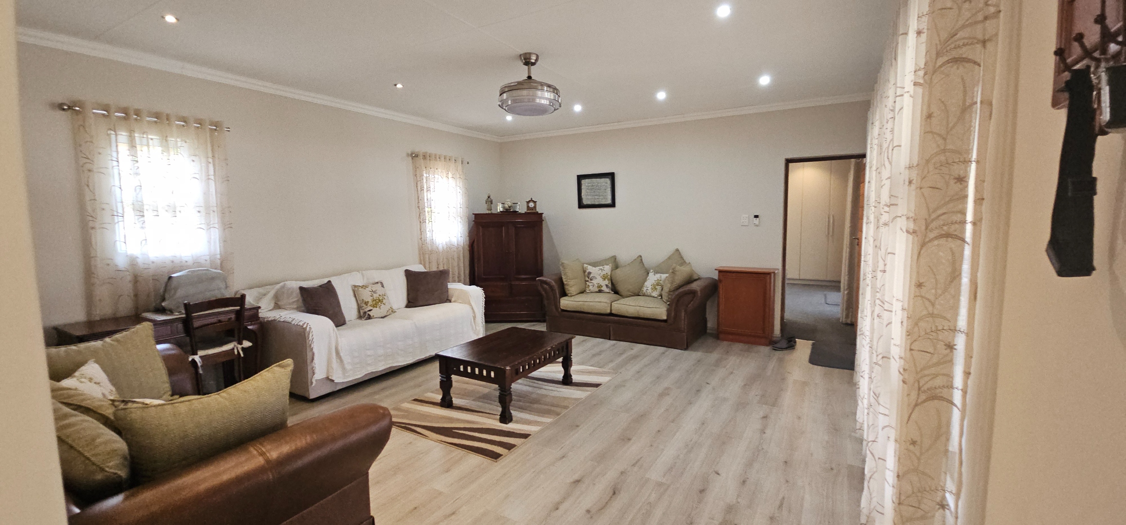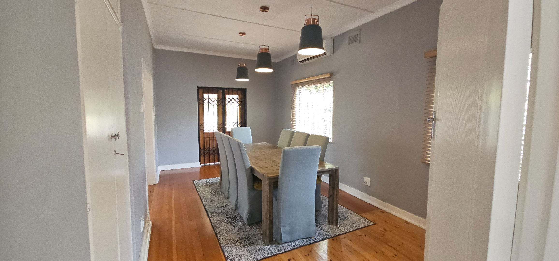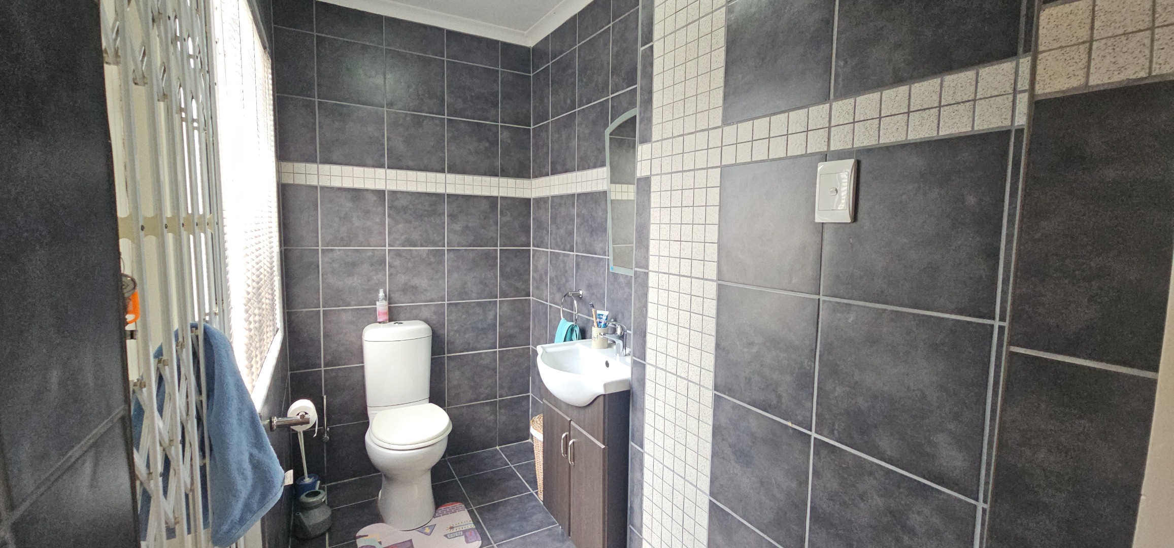 The main house has a long, tarred driveway, a spacious yard with beautiful well-established trees creating a park-like setting, complete with a solid kiddies’ swing set. There is ample parking for about 3 cars under a carport as well as an additional garage.