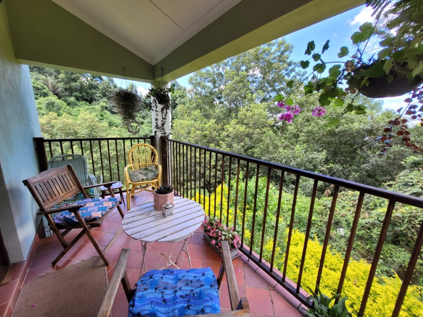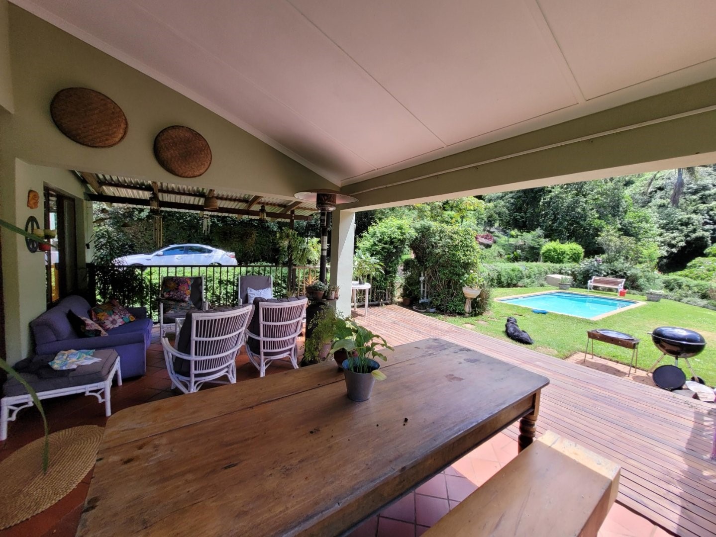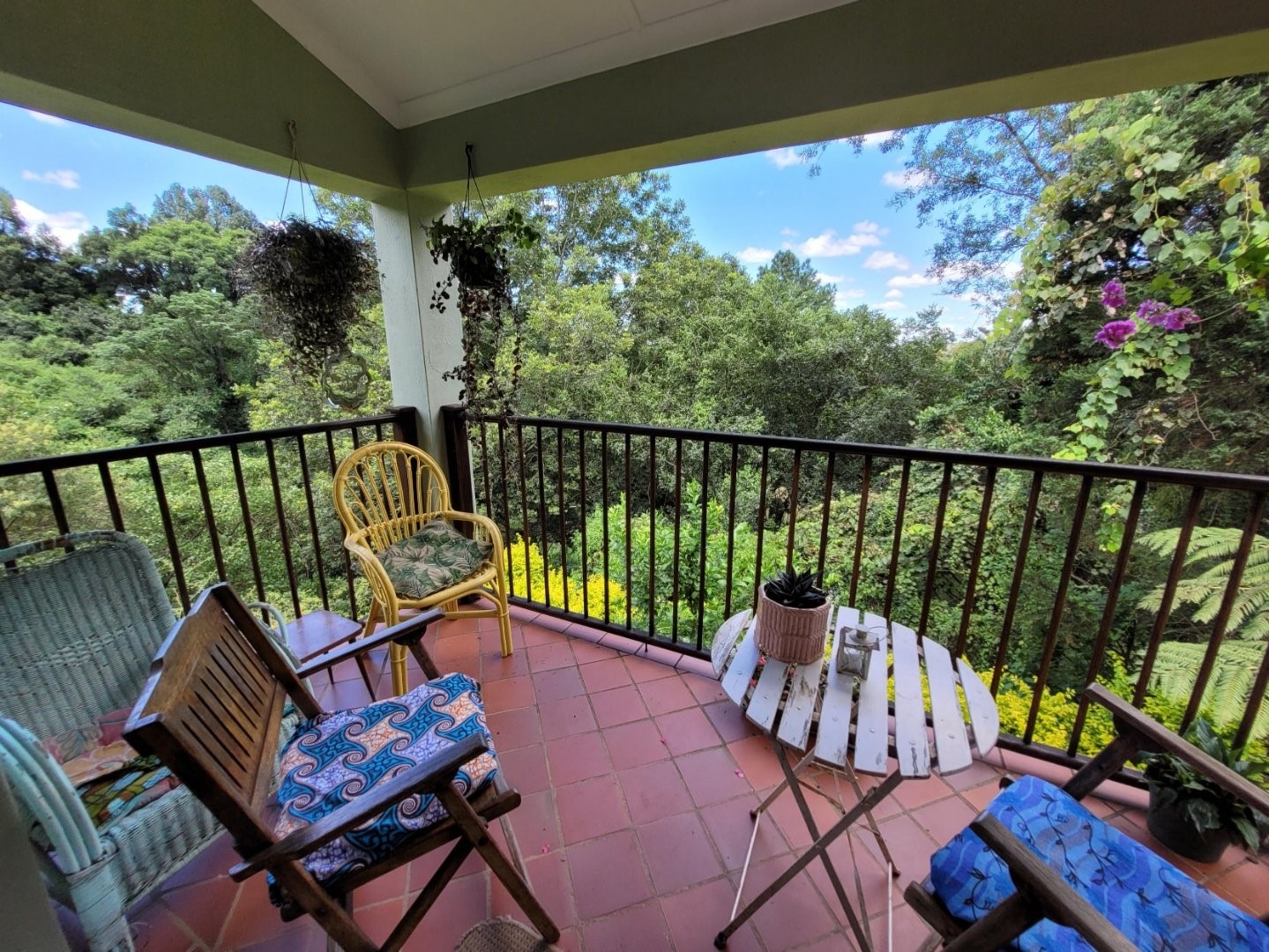 Outdoor living is a highlight, with multiple balconies, an expansive covered patio, and a spacious wooden deck perfect for entertaining or quiet enjoyment. These areas seamlessly connect to the private backyard, which features a refreshing swimming pool amidst the verdant garden. Enjoy scenic views and the tranquility of your surroundings.